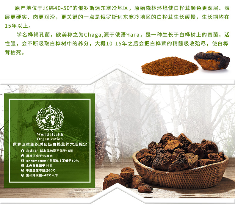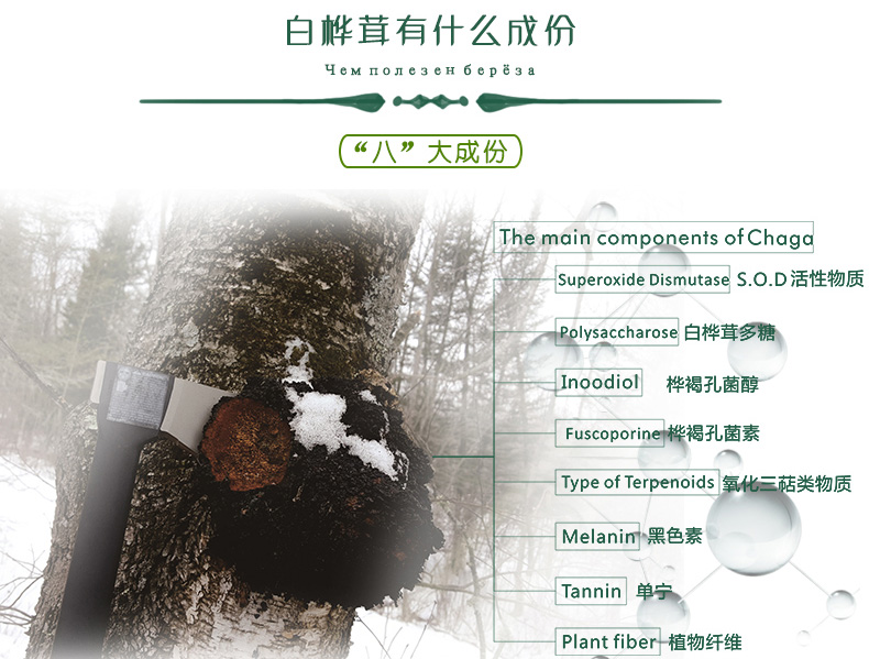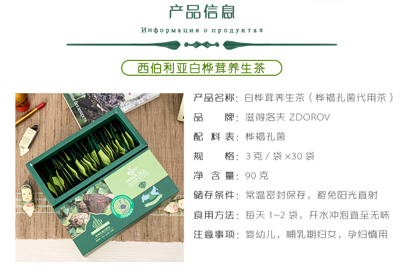 俄罗斯进口 西伯利亚 野生白桦茸 桦褐孔菌茶包 黑金颗粒 无糖食品 3g*30袋