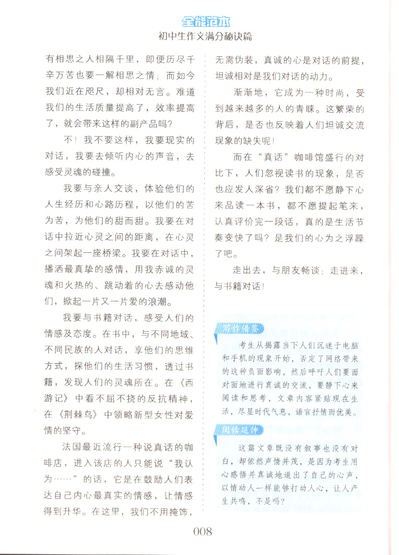 钟书作文榜样 初中生作文满分秘诀篇 全能范本 名家名篇 佳作典范 提升写作能力 初中生作文辅导书