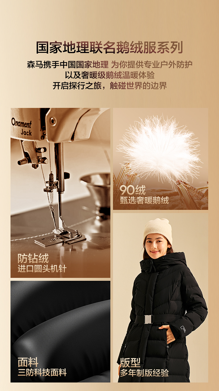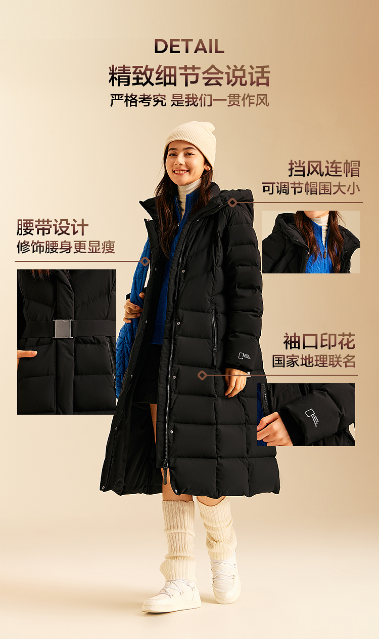 森马中国国家地理系列羽绒服女冬季长款三防加厚90绒子时尚鹅绒服