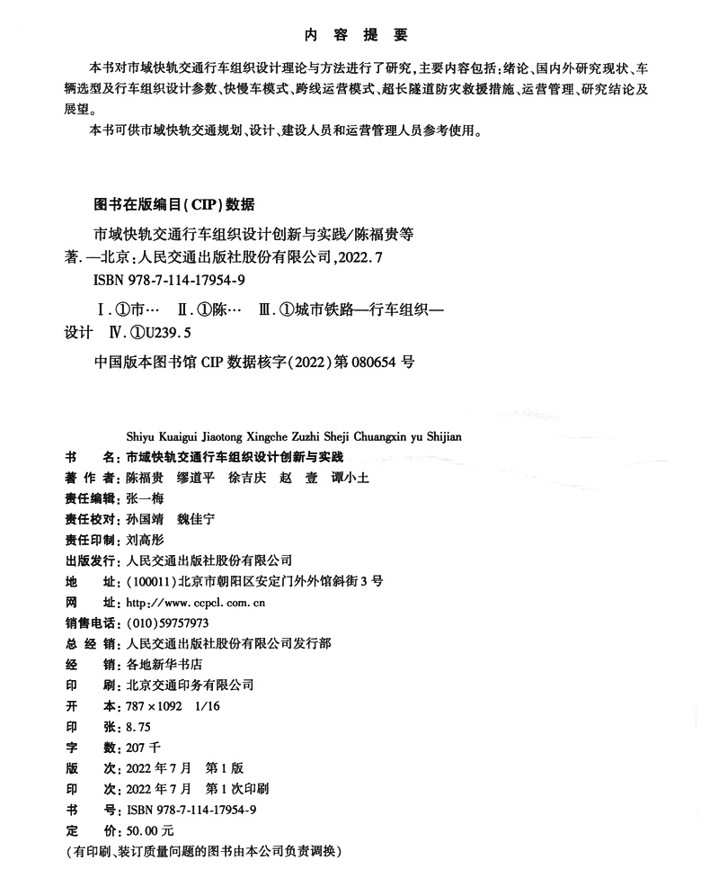 书名:市域快轨交通行车组织设计创新与实践