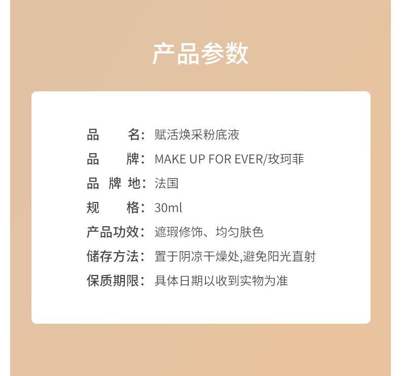 MAKE UP FOR EVER/玫珂菲 赋活焕采粉底液 30ML Y218 瓷白色