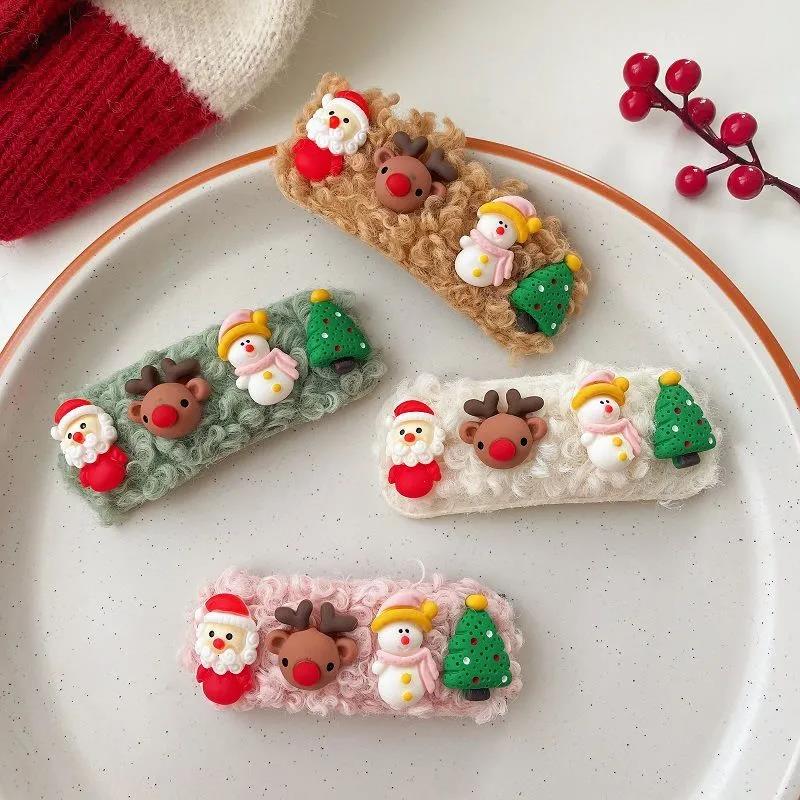 【9.9限时秒杀】秋冬新款圣诞节羊羔毛发夹bb夹可爱少女夹子毛绒边夹发卡头饰