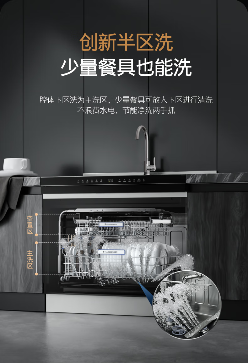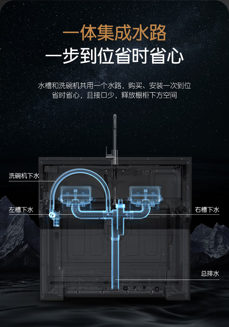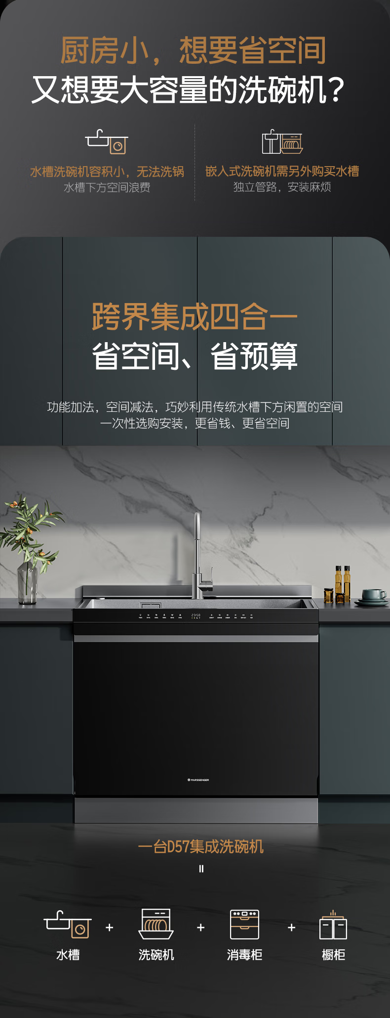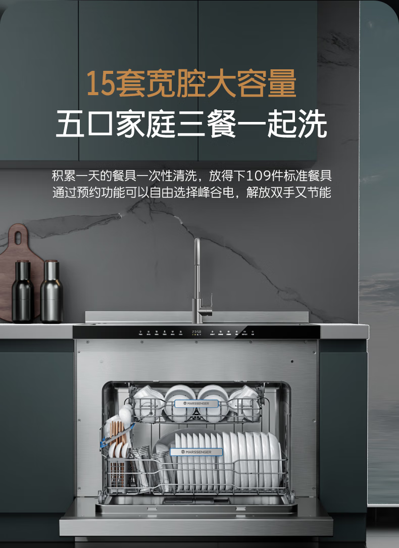 火星人D57集成水槽洗碗机15套两锅同洗 洗消烘存四合一热风烘干一级水效