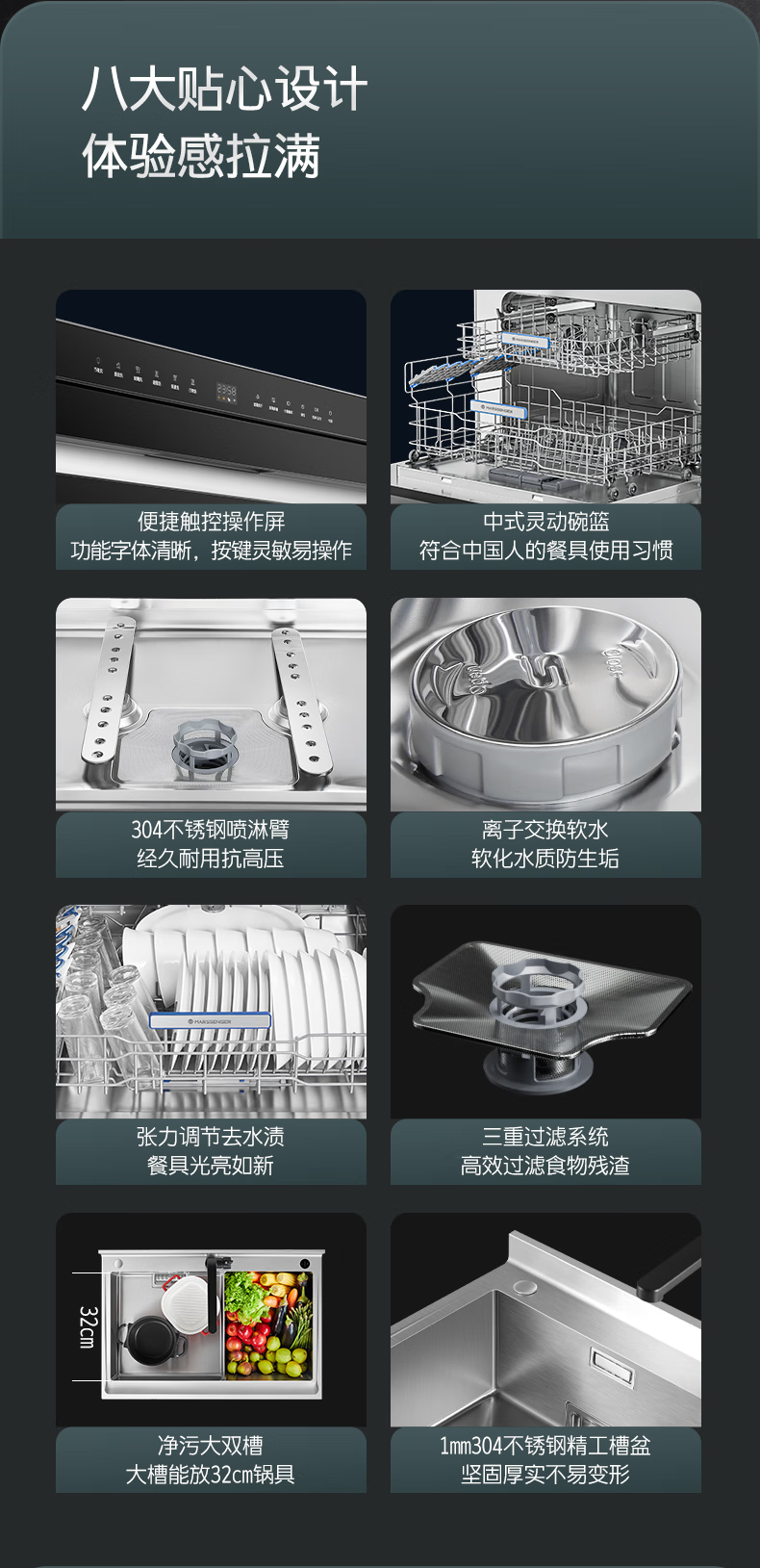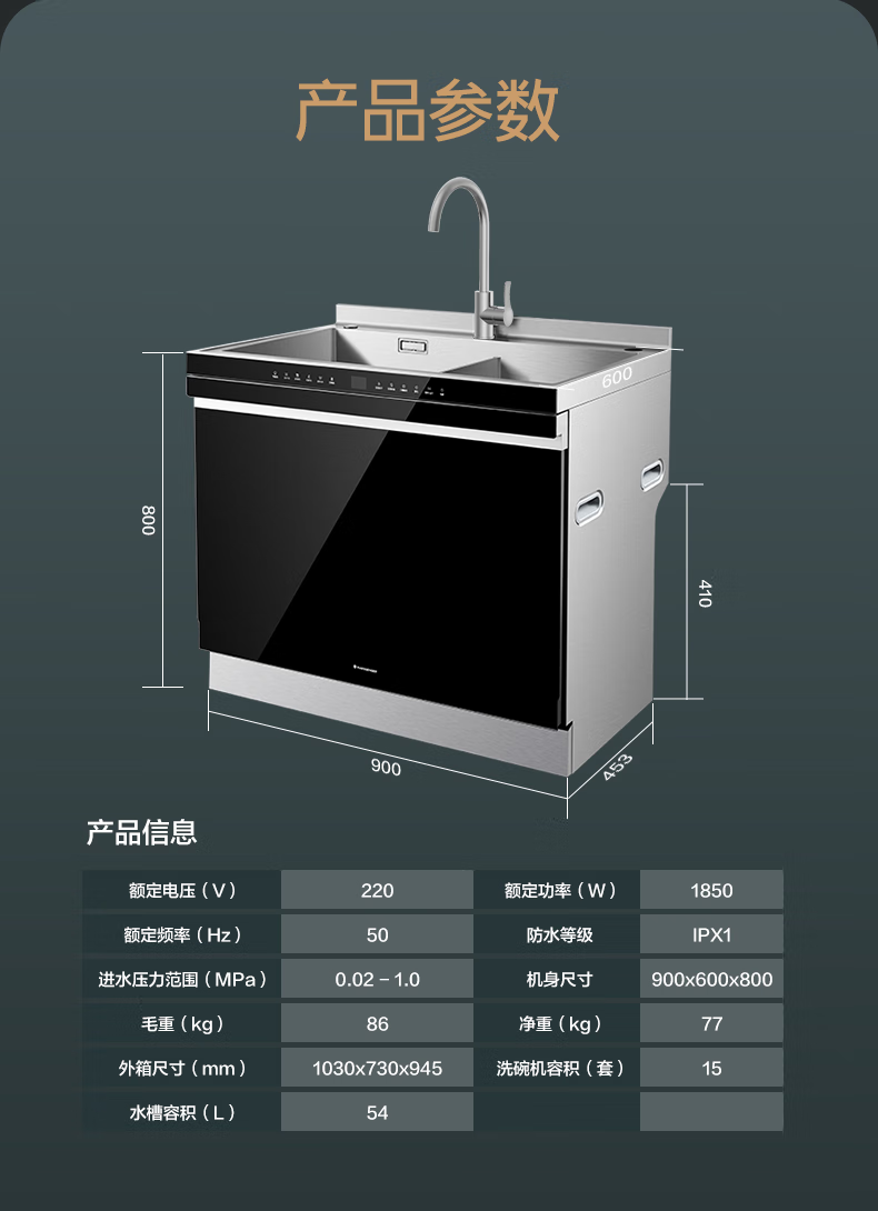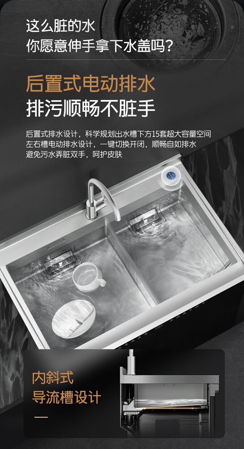 火星人D57集成水槽洗碗机15套两锅同洗 洗消烘存四合一热风烘干一级水效