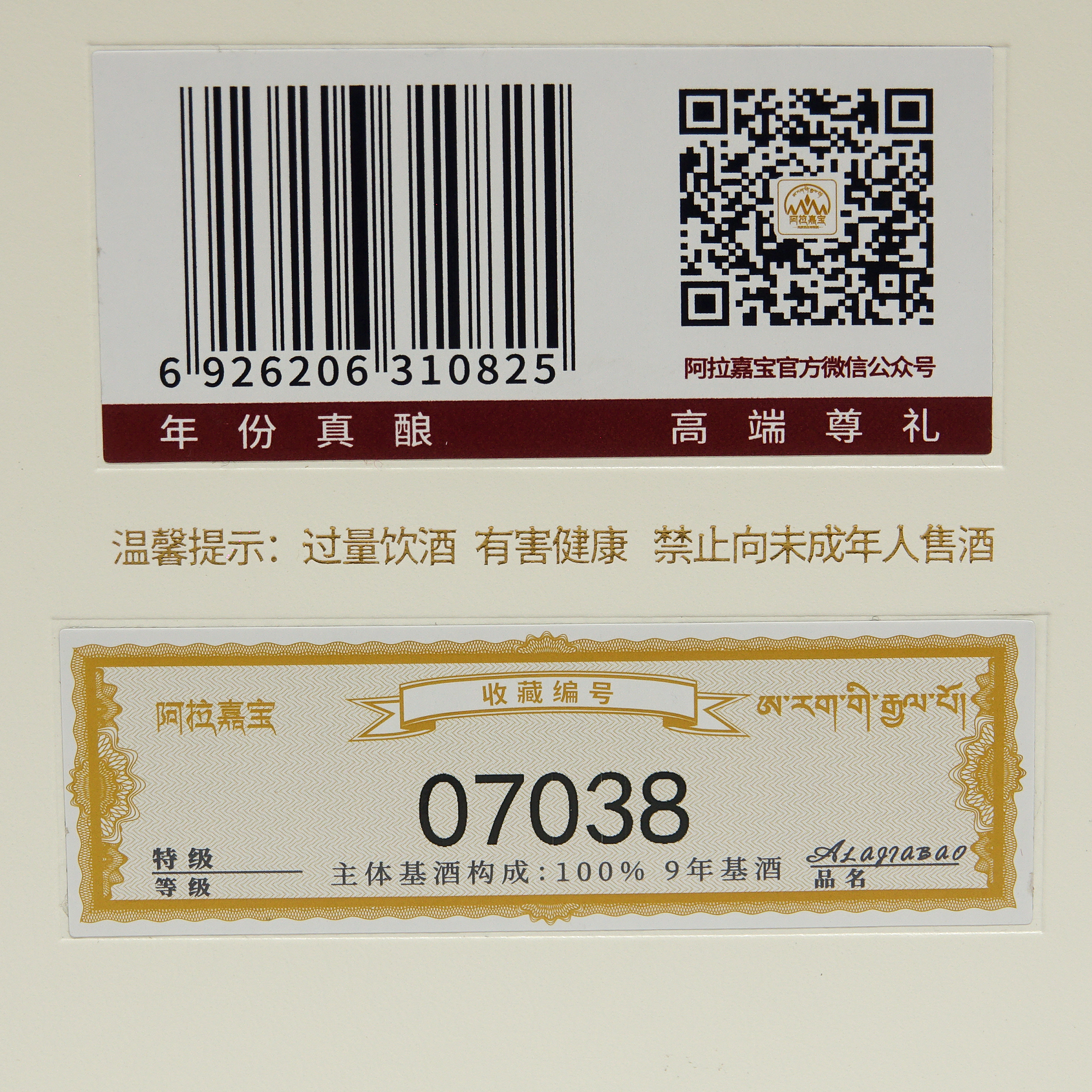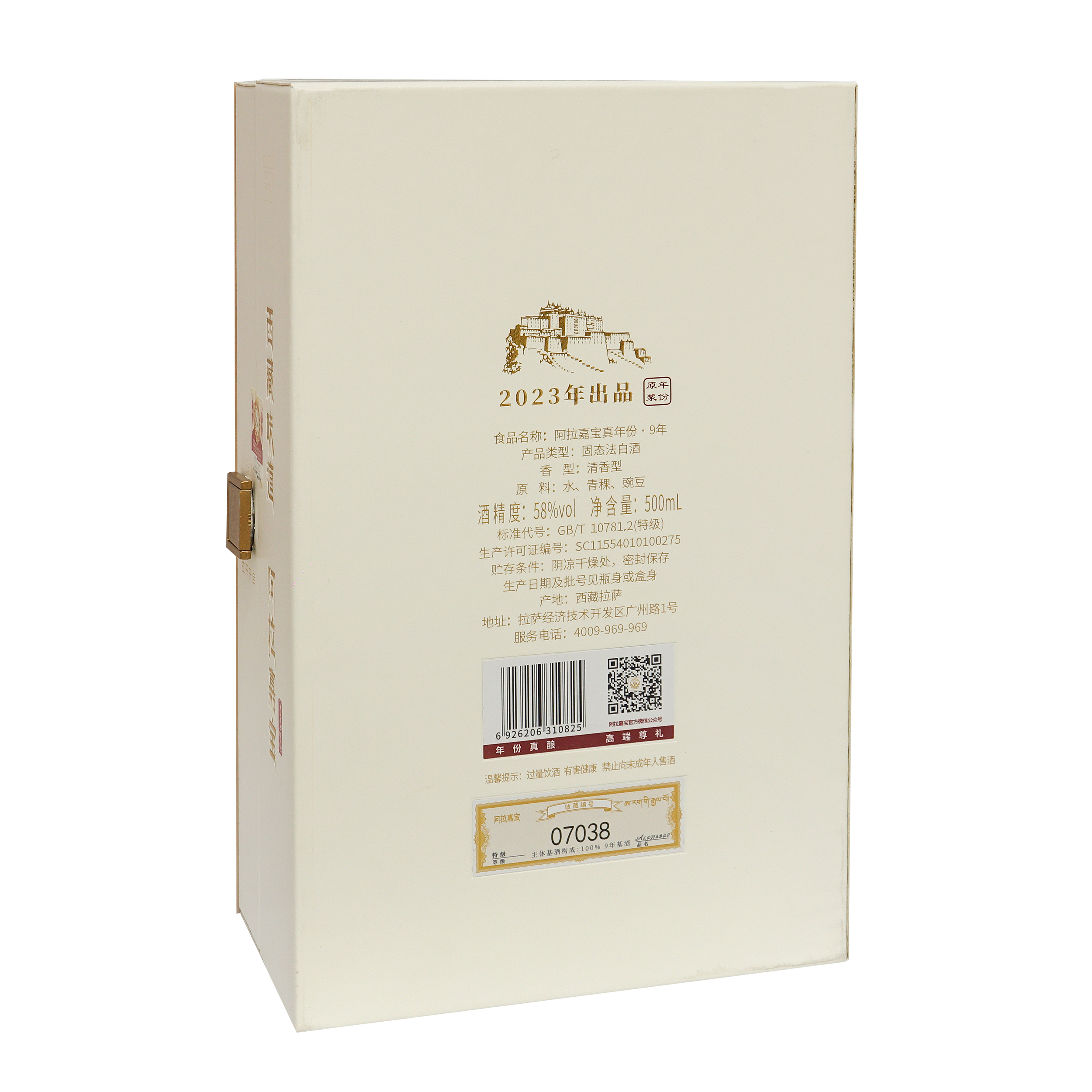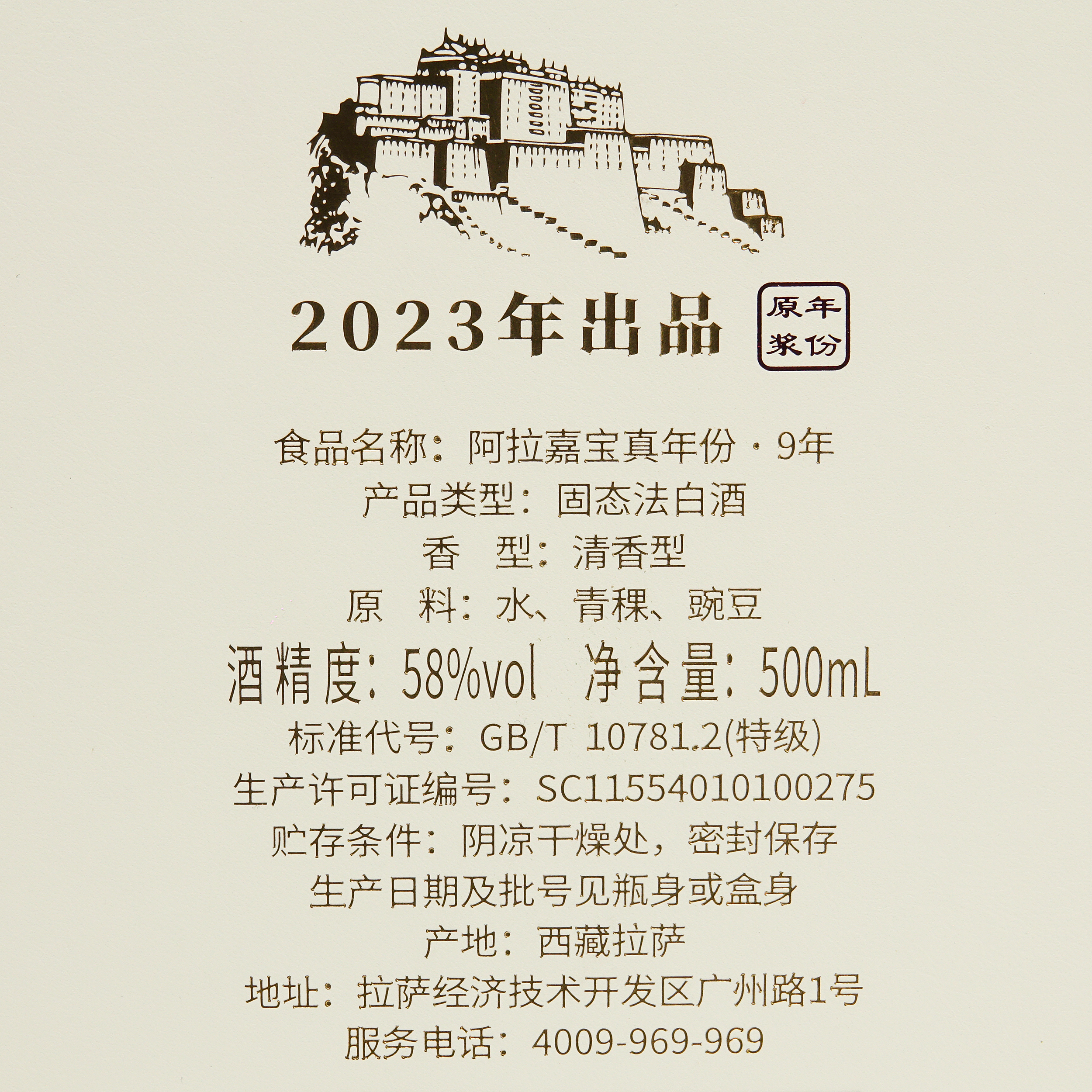 西藏拉萨 阿拉嘉宝真年份.9年 青稞清香型 58° 单瓶 500ml 买三送一