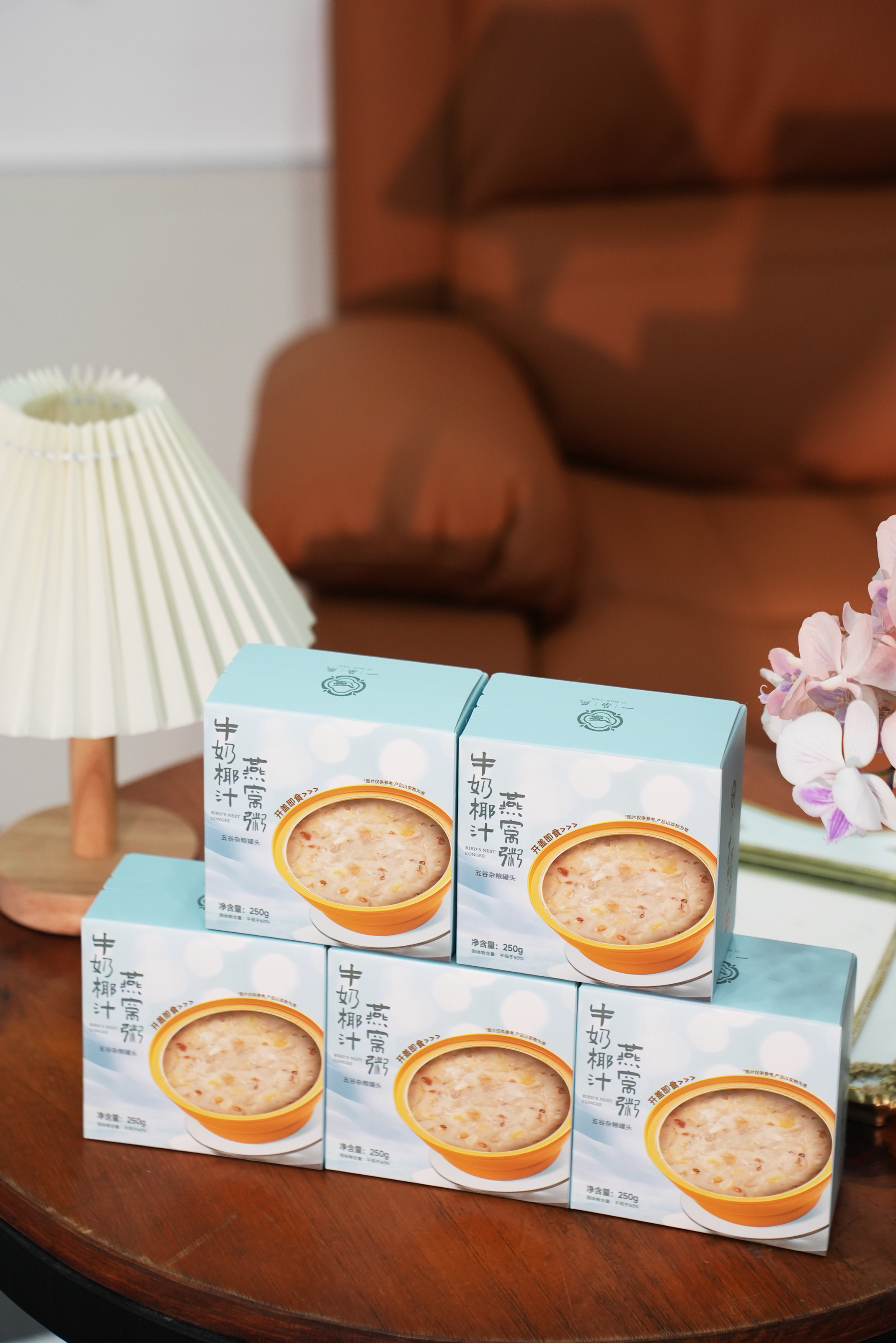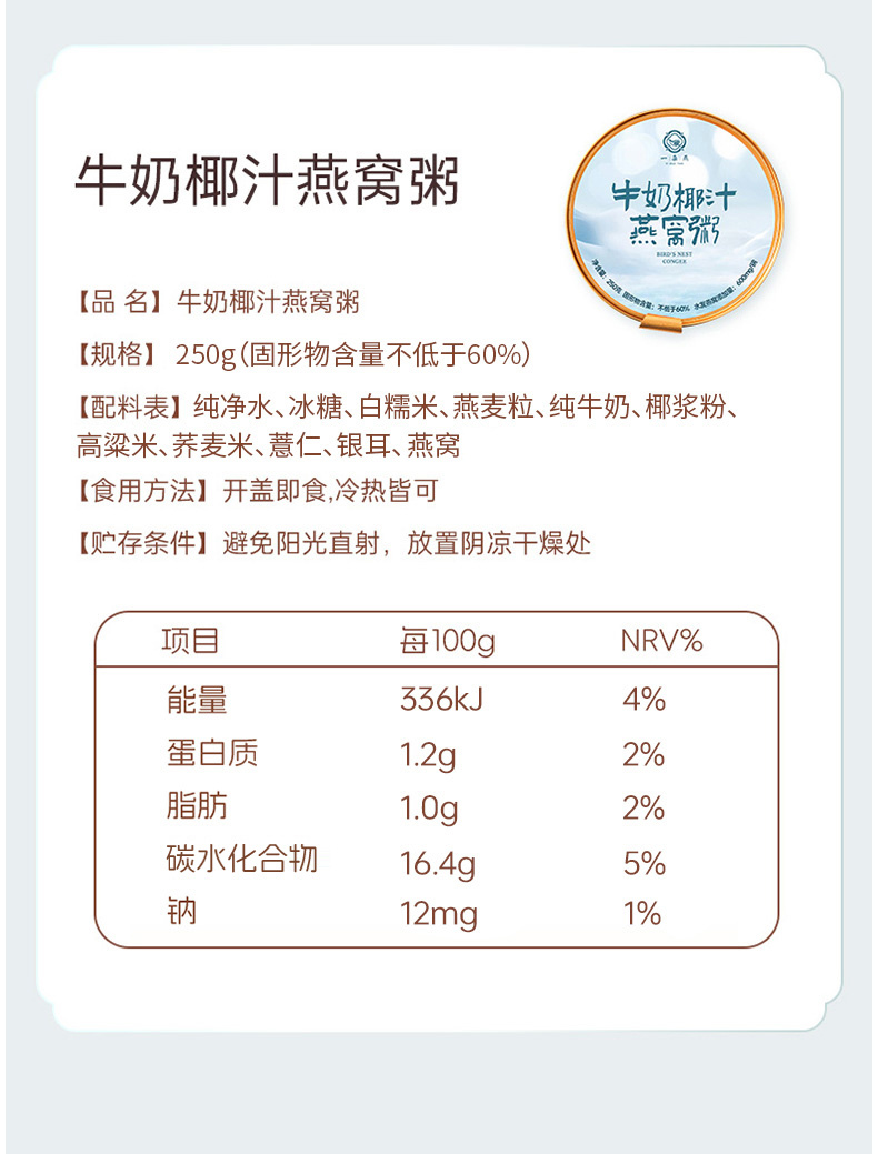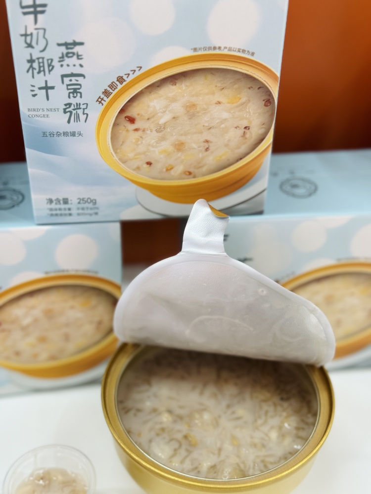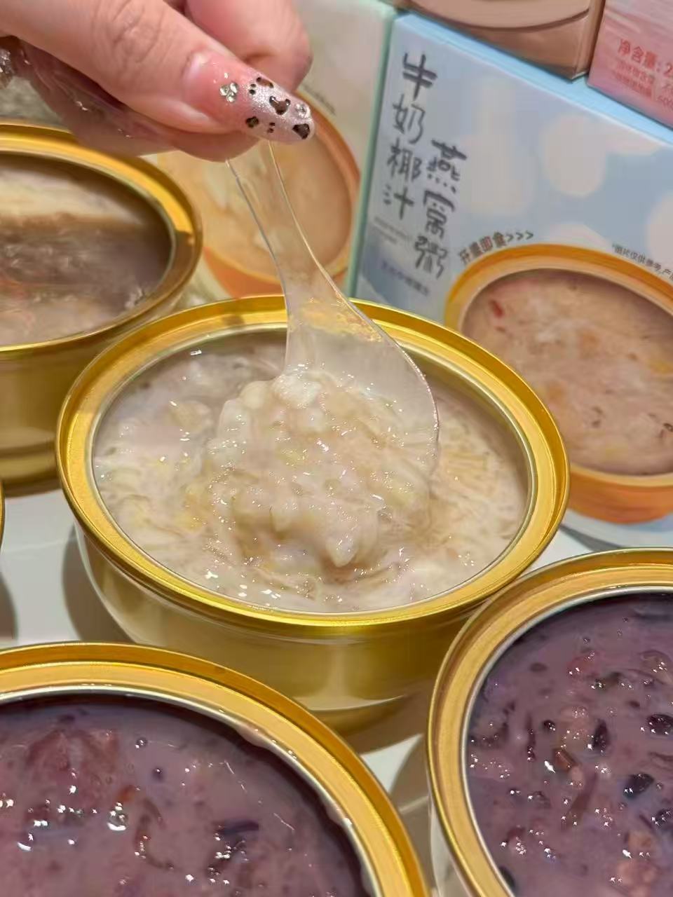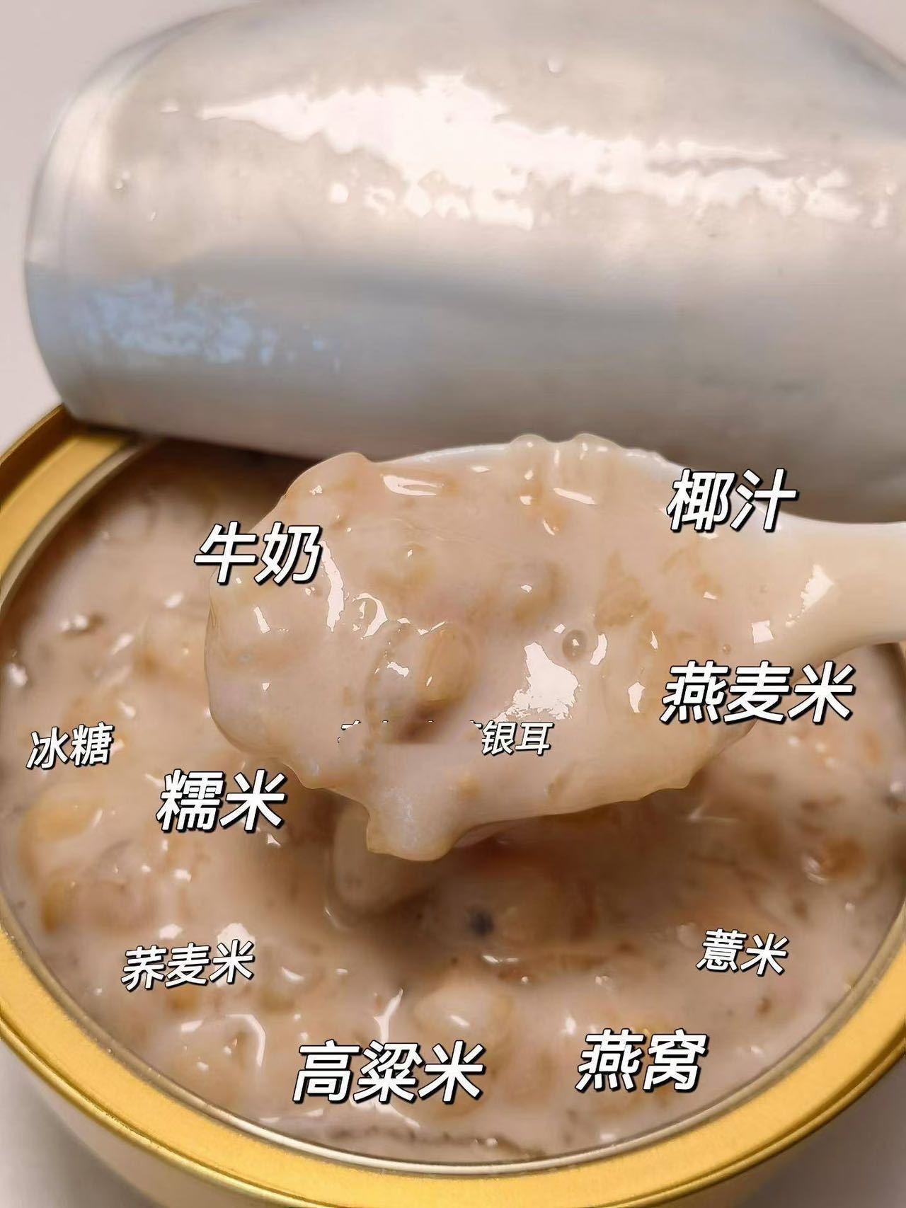 🌟牛奶椰汁燕窝粥🌟 打工人早八人没时间吃早饭是常事! 这个开盖就能吃的牛奶椰汁燕窝粥真的太方 便!燕窝一丝丝很分明~口感滑滑的~ 还有燕窝、牛奶、糯米、燕麦米、高梁米、 养麦米、薏米、本草银耳,配料好丰富