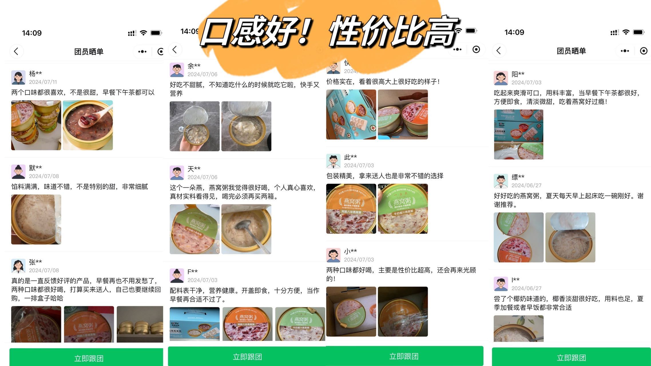 【强推理由】 ①天然原材料食材,真材实料,口感轻甜软糯,一碗可以当早餐/下午茶/宵夜 ②印尼进口燕窝原料,是正规海关进口的溯源燕窝,源头上带来品质保障 ③健脾养胃、轻脂饱腹,老少皆宜,对身体好处多多 ④0防腐剂、增稠剂、香精等等,没有科技与狠活,男女老少都能放心吃,大胆吃。