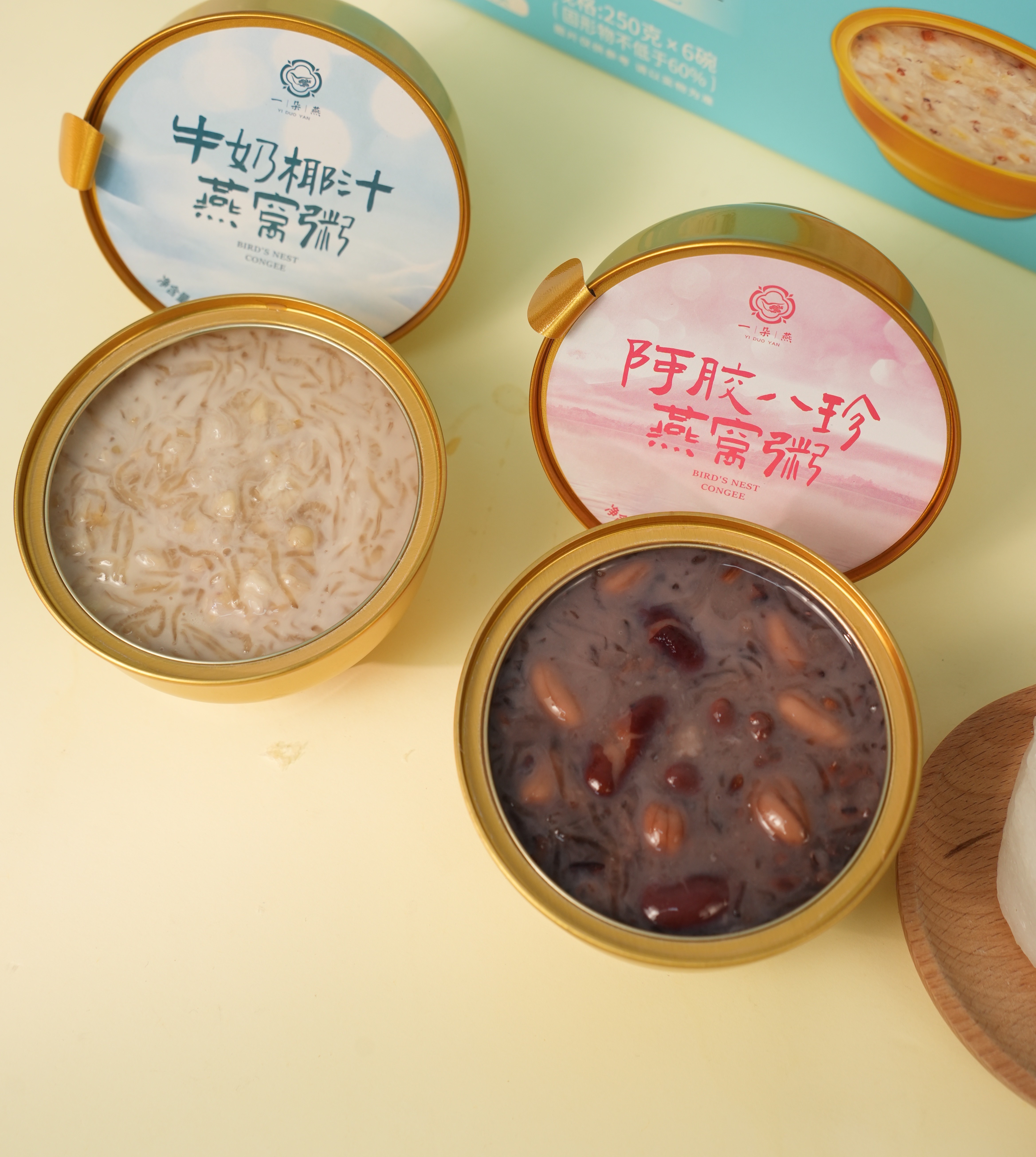 一朵燕燕窝粥全新升级,独立包装,1碗足足250g,不是小碗装165g,每碗添加600mg水发燕窝!加量不加价! ✅印尼进口燕窝,富含唾液酸 ✅0食用香精 0人工色素