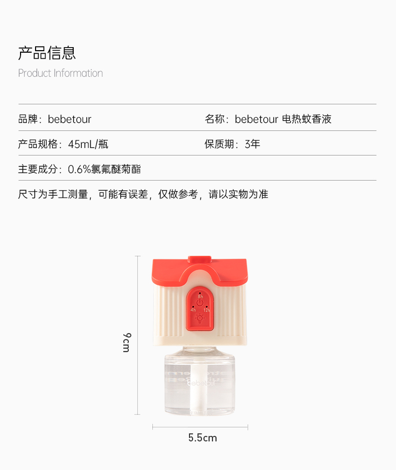 bebetour智能电蚊香液无味婴儿孕妇宝宝适用儿童驱蚊水防蚊液补充液器