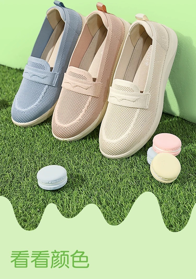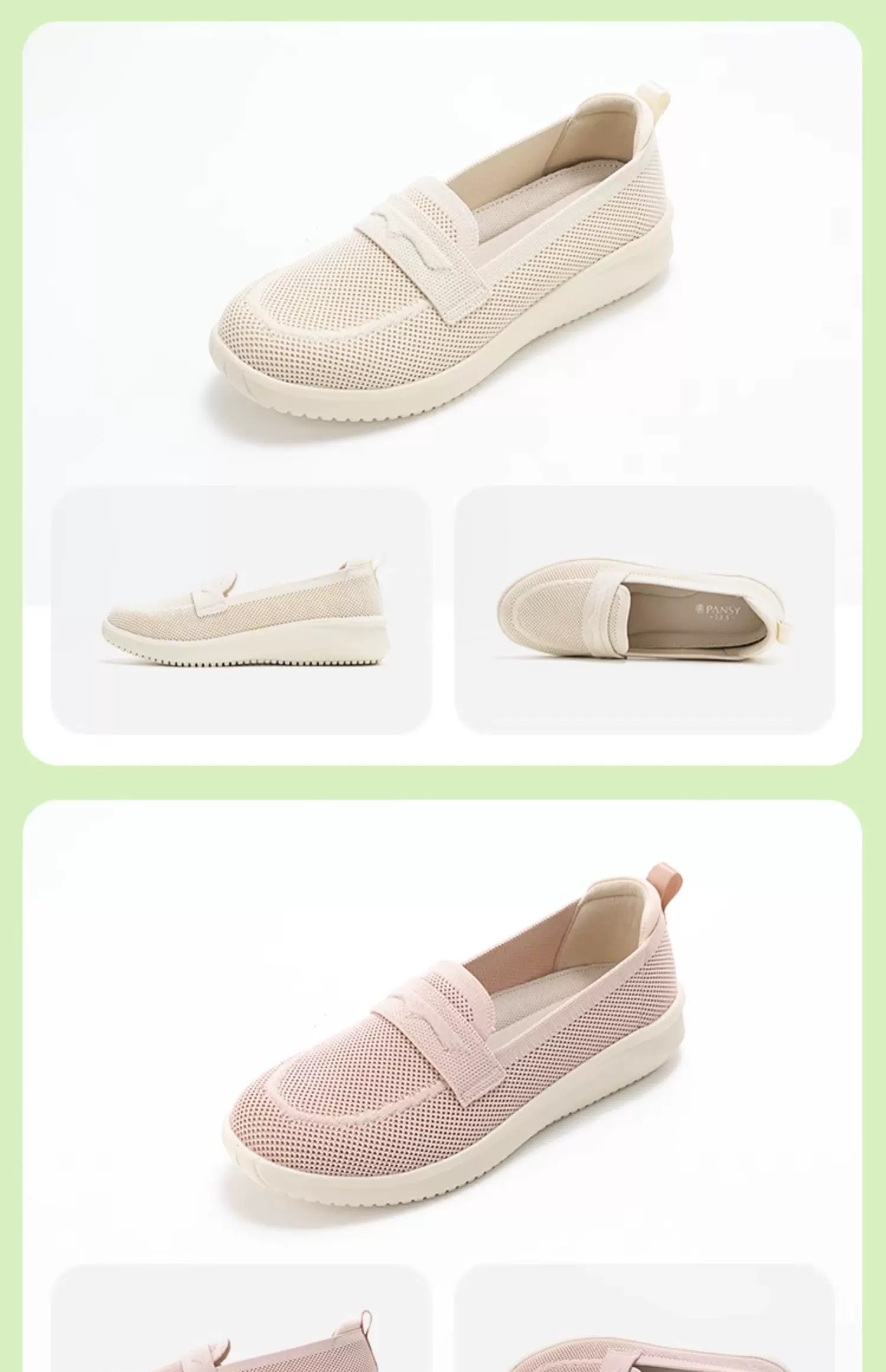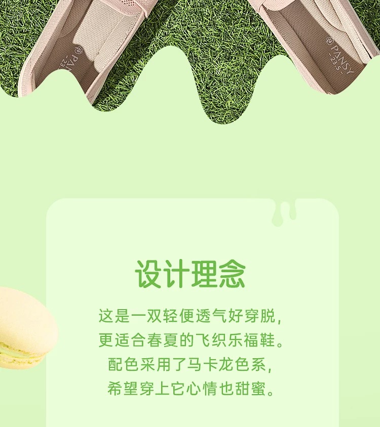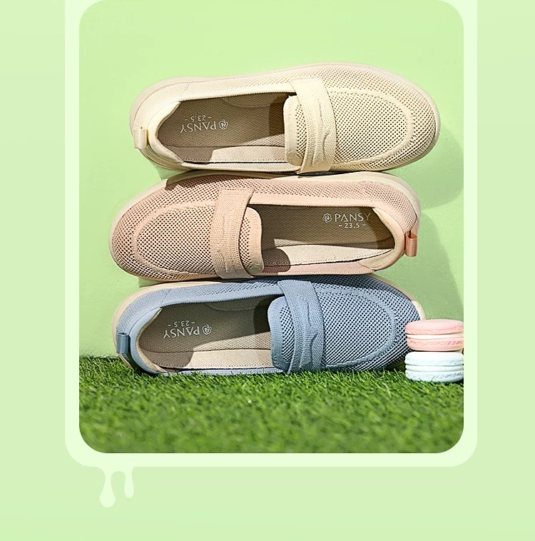 PANSY盼喜日本女鞋休闲轻便一脚蹬透气飞织乐福鞋4220