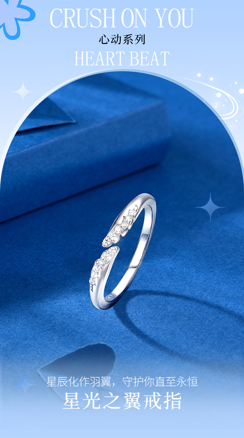 卡蒂罗/KADER 星光之翼闺蜜女戒 羽你相伴简约小众开口可调节单戒一只 守护之翼浪漫羽翼造型配饰 925银 女生朋友