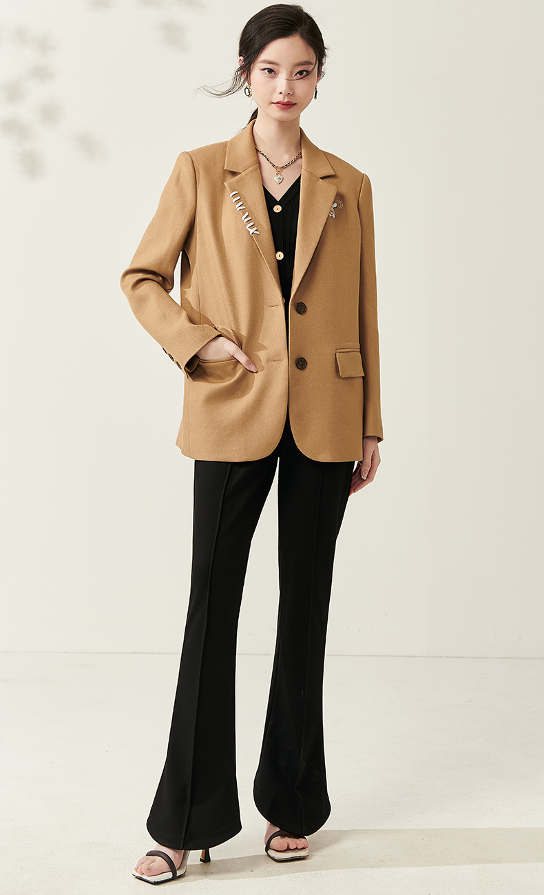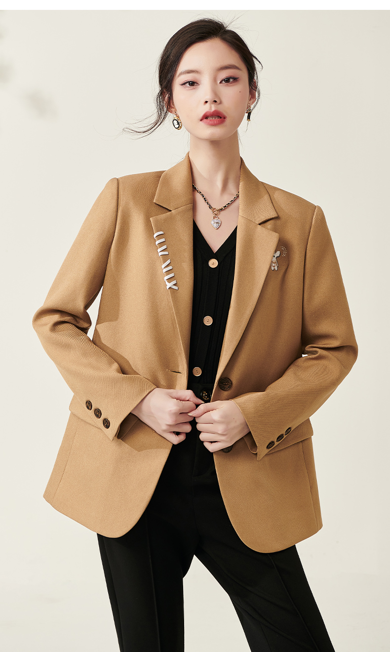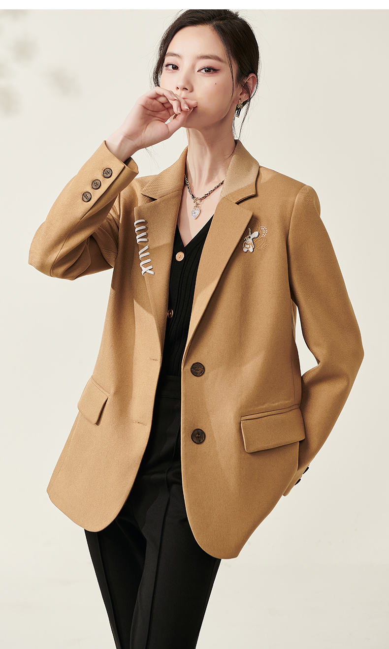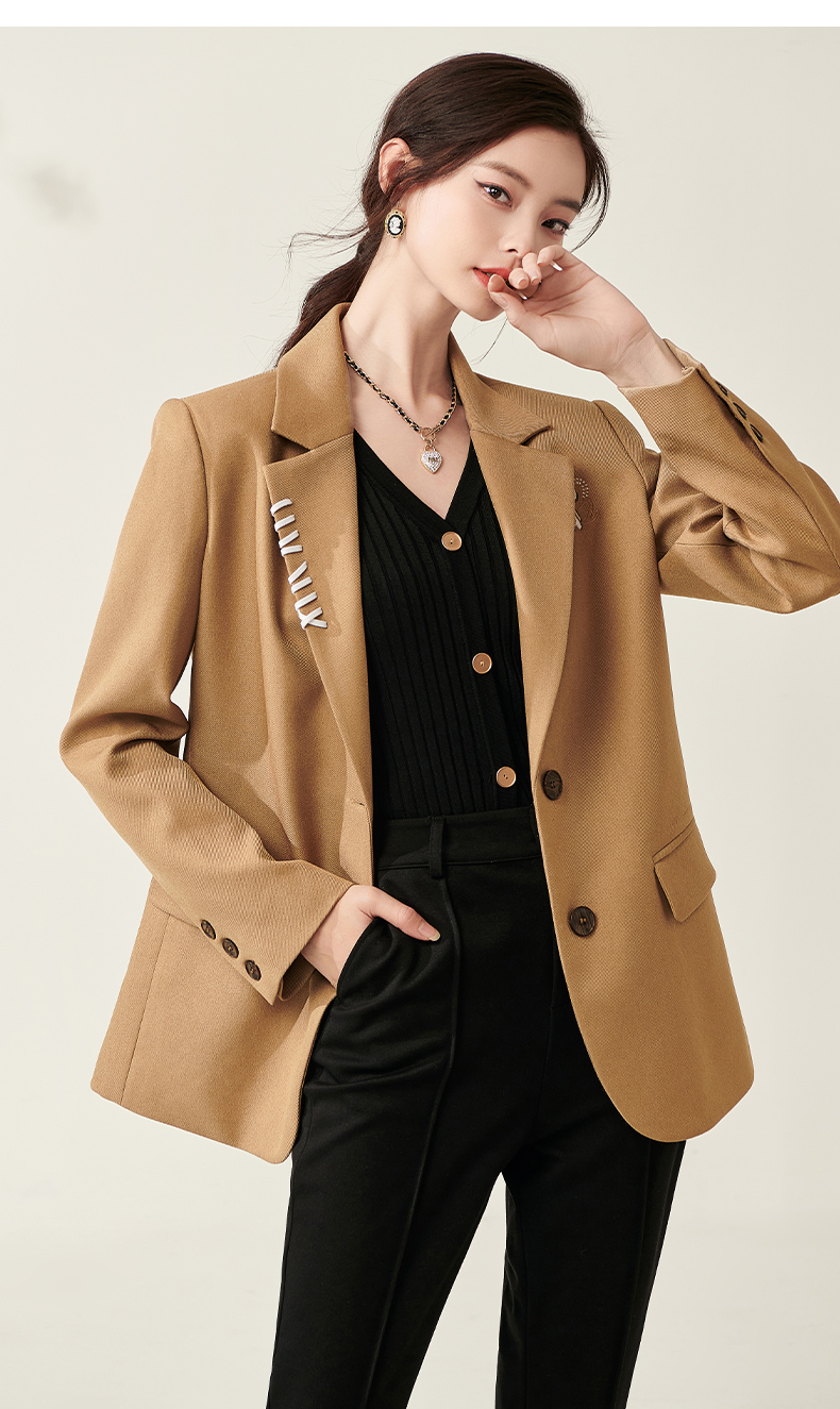 芳外春季新款设计感刺绣点缀宽松西服女休闲直筒西装外套0014
