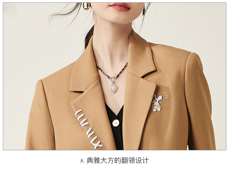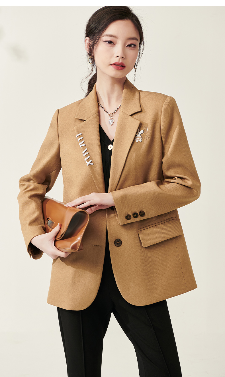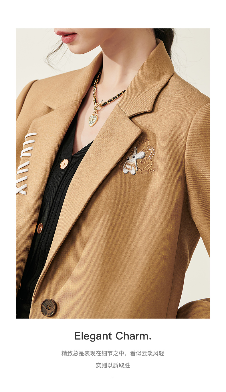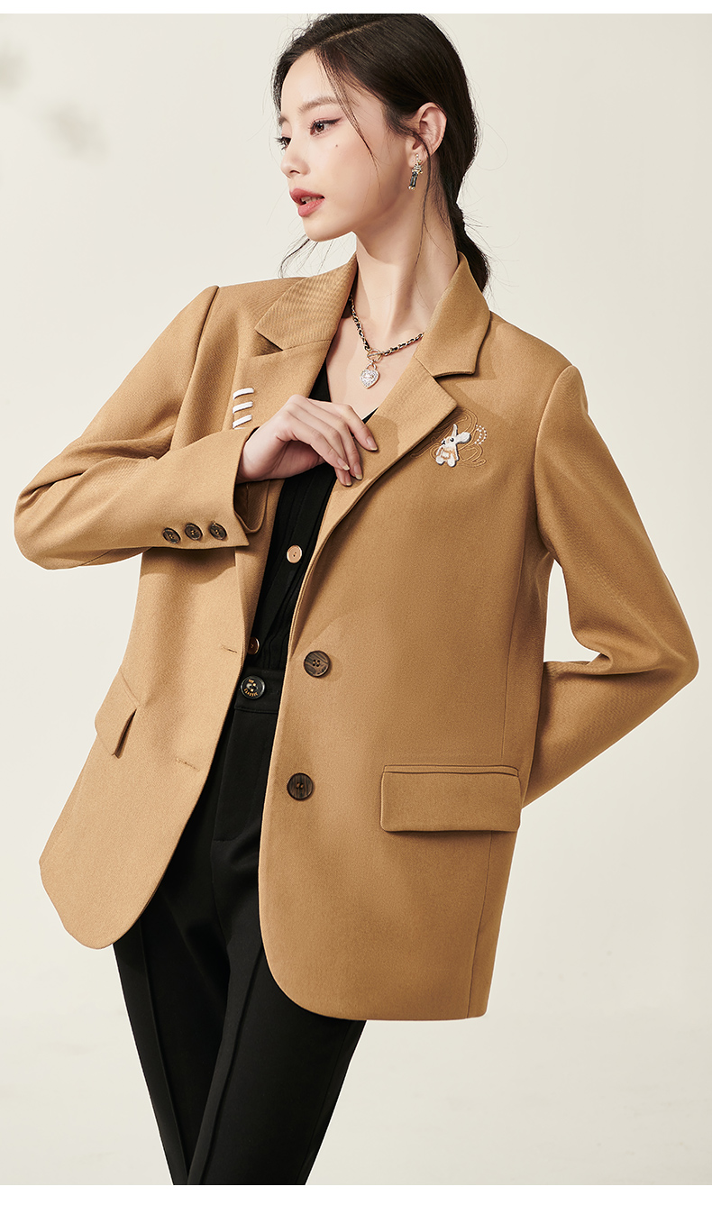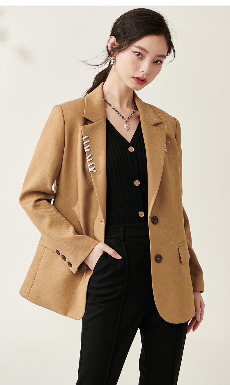 芳外春季新款设计感刺绣点缀宽松西服女休闲直筒西装外套0014