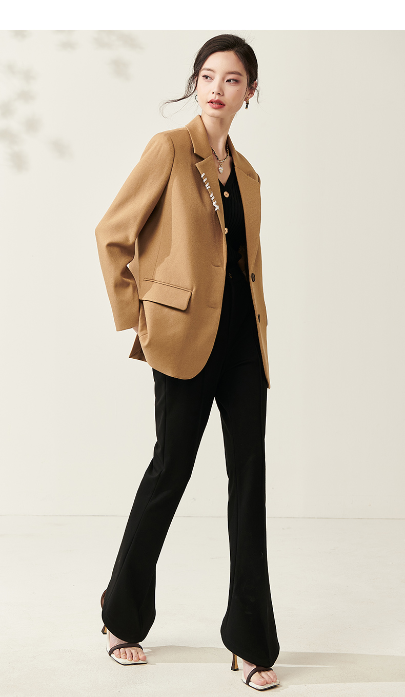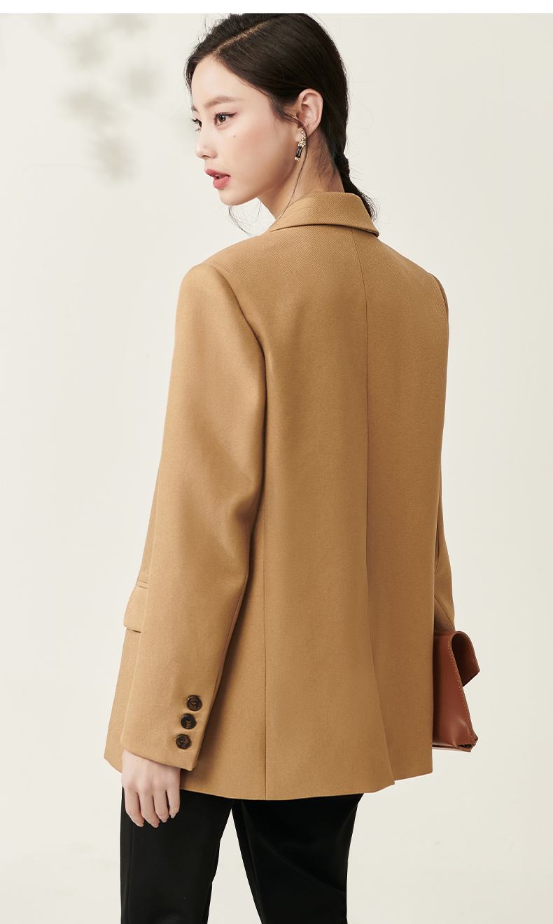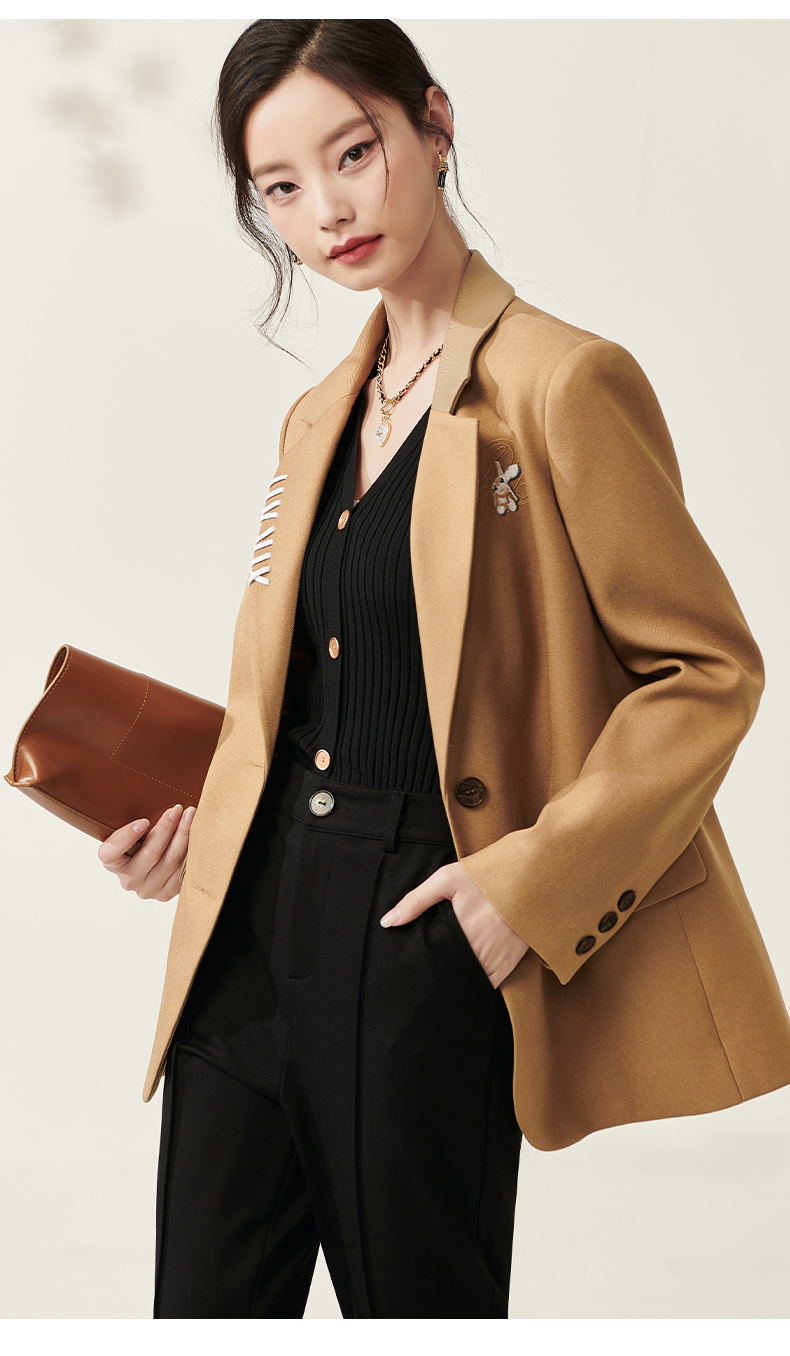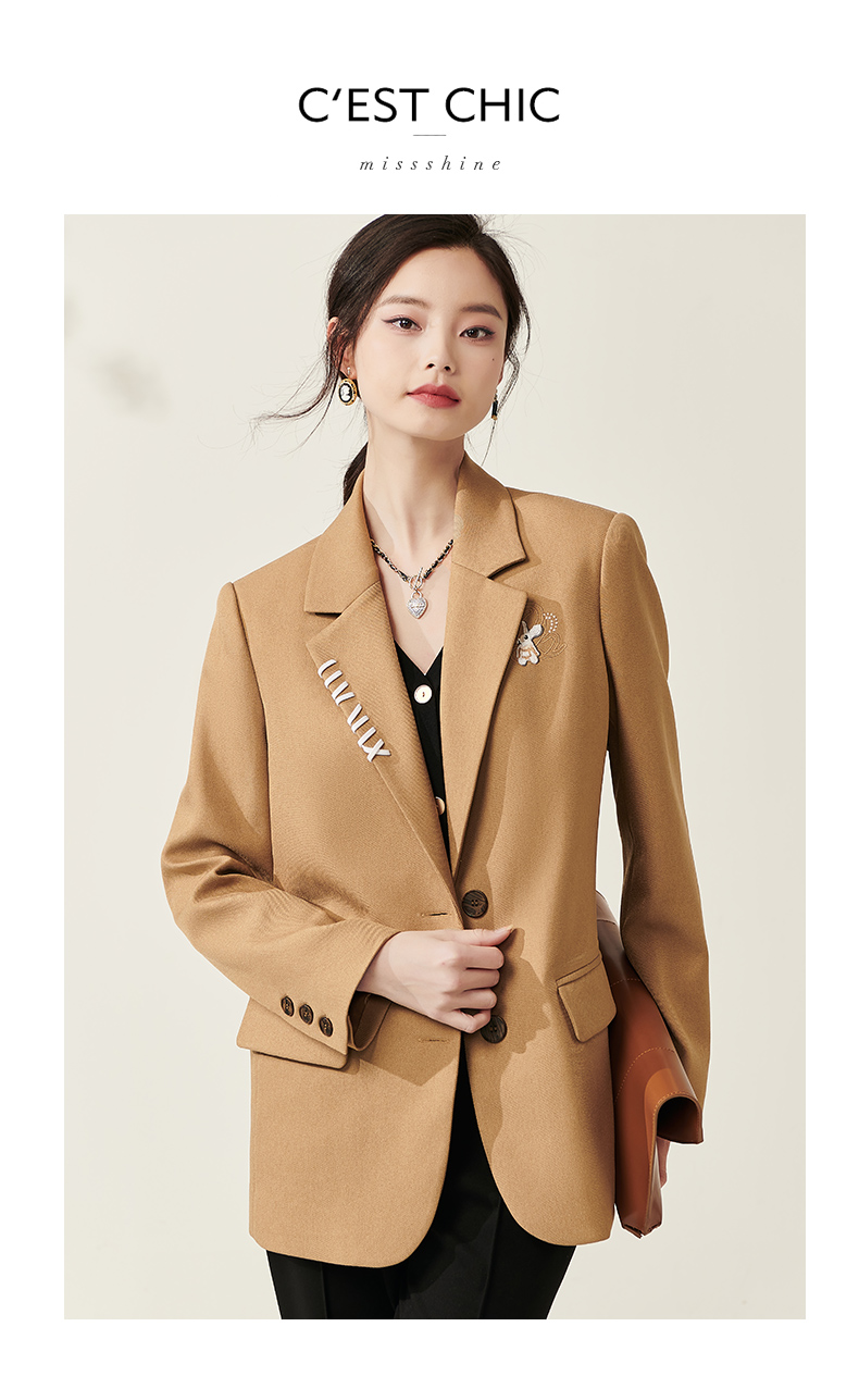 芳外春季新款设计感刺绣点缀宽松西服女休闲直筒西装外套0014