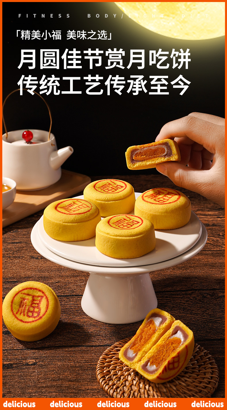【五层夹心!满足不同口感需求】网红黄金小福饼,传统手工糕点心,团圆常备!芋泥麻薯口感绵软,香甜可口,闽南特产,品质保证!健康特价清仓