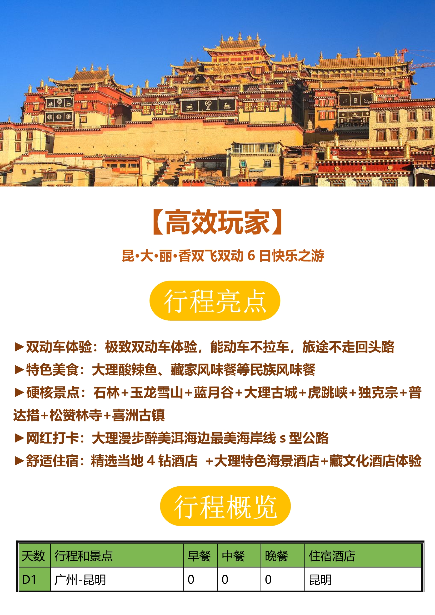 【高效玩家】 昆·大·丽·香双动6日快乐之游