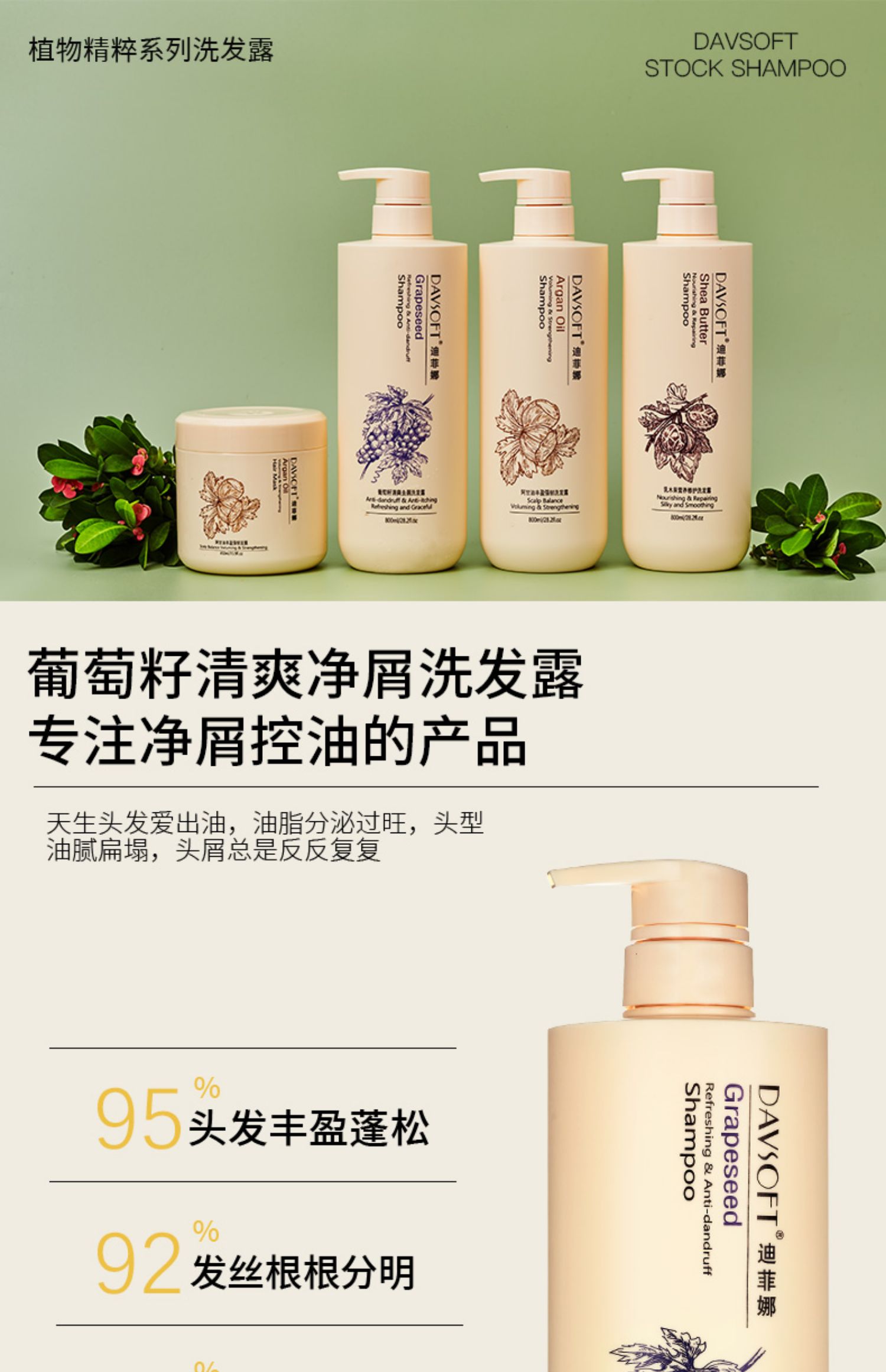 迪菲娜葡萄籽清爽祛屑/乳木果营养修护洗发露800ml