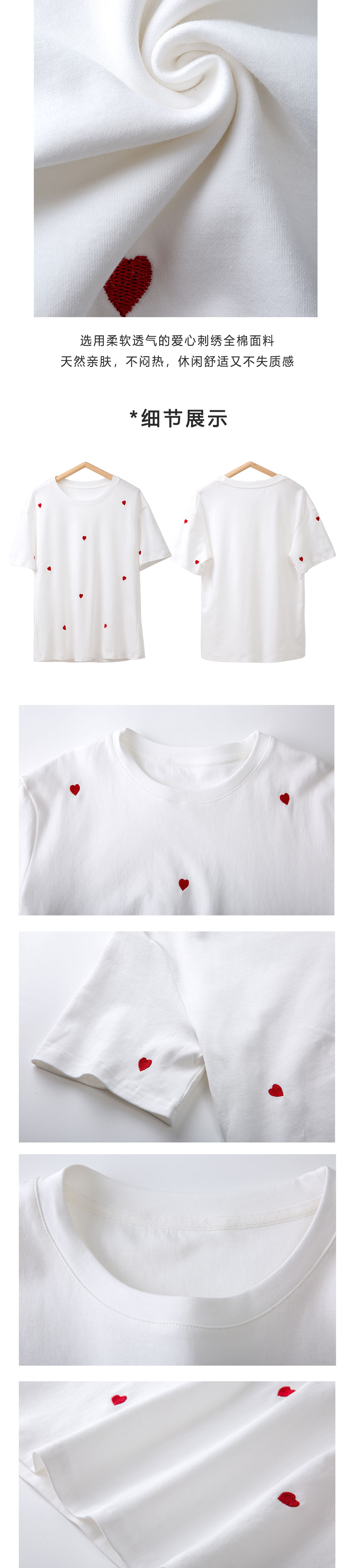 刺绣爱心白T