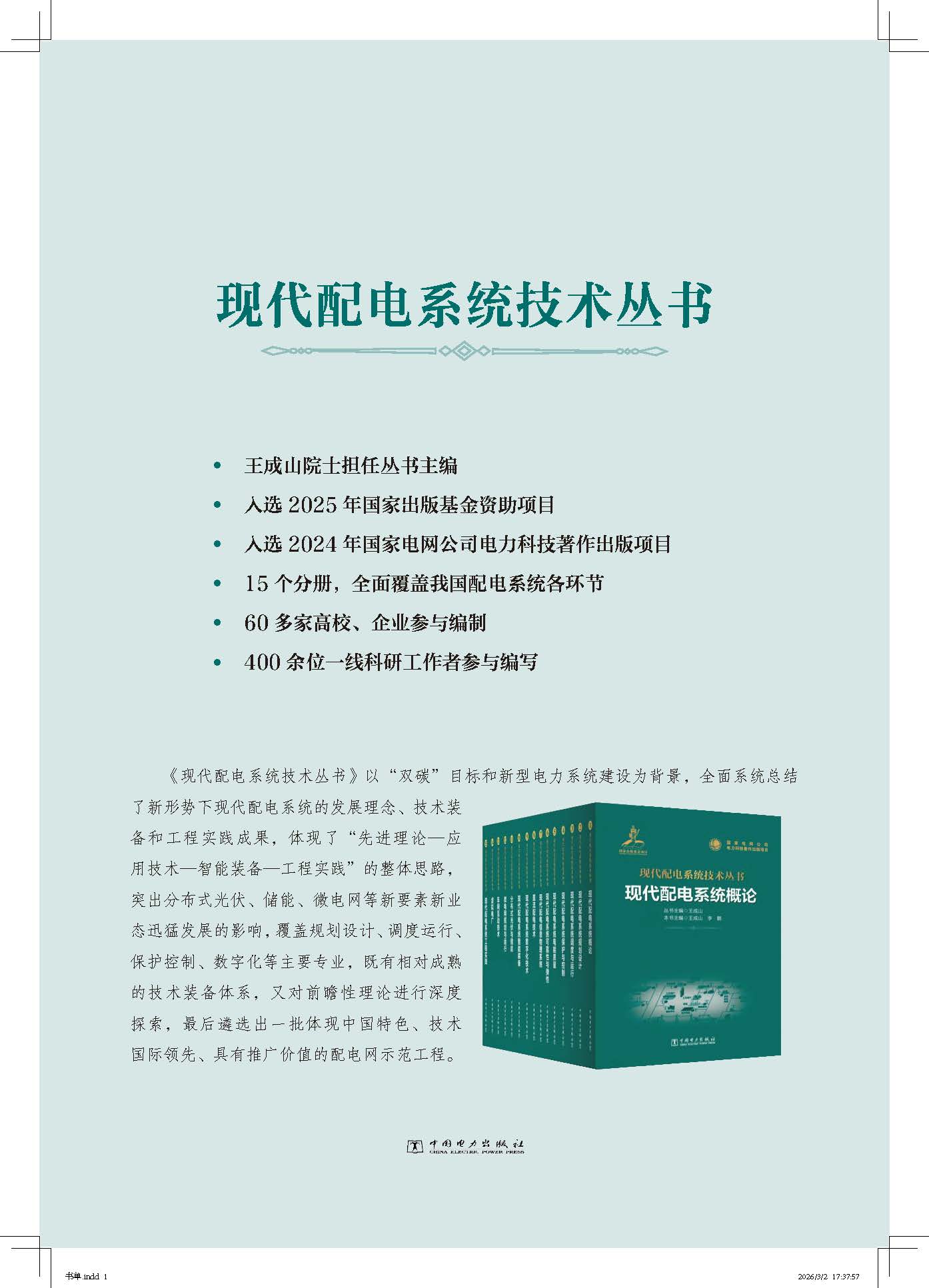 中国电力出版社成立于 1951 年,作为中国成立最早的中央科技出版社之一,曾隶属于水利电力部、能源部、电力工业部、国家电力公司,现为国家电网公司所属的科技出版社,在电气技术专业出版领域享有极高的声誉。该社作为以图书出版为主体,音像、电子出版物、期刊、网络出版共同发展的大型出版企业,以强大的出版资源和高素质的专业队伍,致力于向读者提供包括电力工程、电气工程、建筑工程、电子技术、信息技术、外语、大中专教材、家教等学科门类齐全的权威出版物,也竭力为广大师生提供精品教材,是教育部和北京市教委规划教材的出版基地之一。