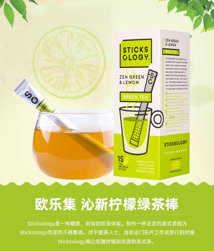 【中欧班列精选2盒】比利时绿茶茶棒 原装进口欧乐集柠檬味绿茶茶棒 37.5g/盒
