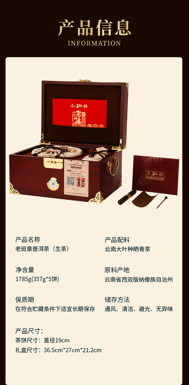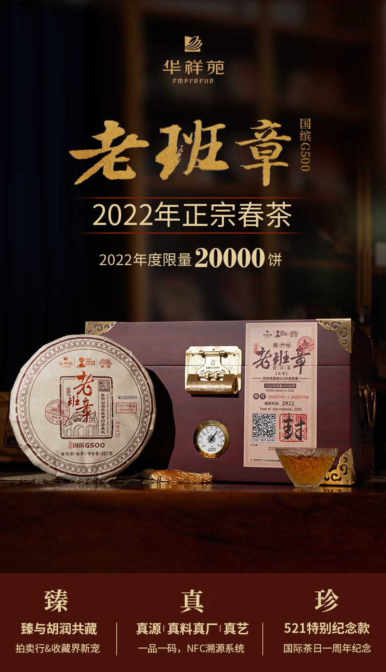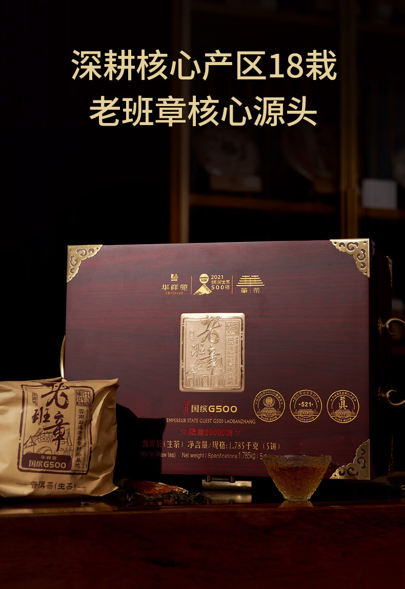 华祥苑普洱茶老班章生茶茶饼 整箱G500华茶国缤茶1785g