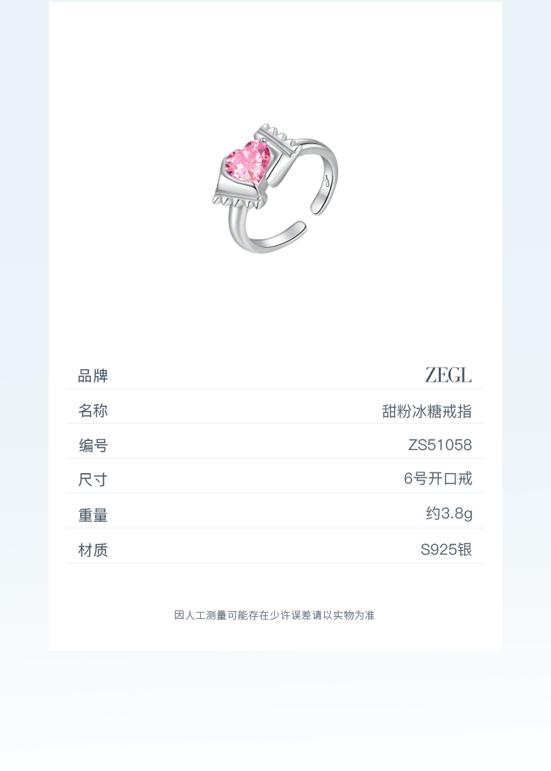 ZEGL设计师冰糖系列925银戒指女小众设计指环开口食指戒甜美尾戒