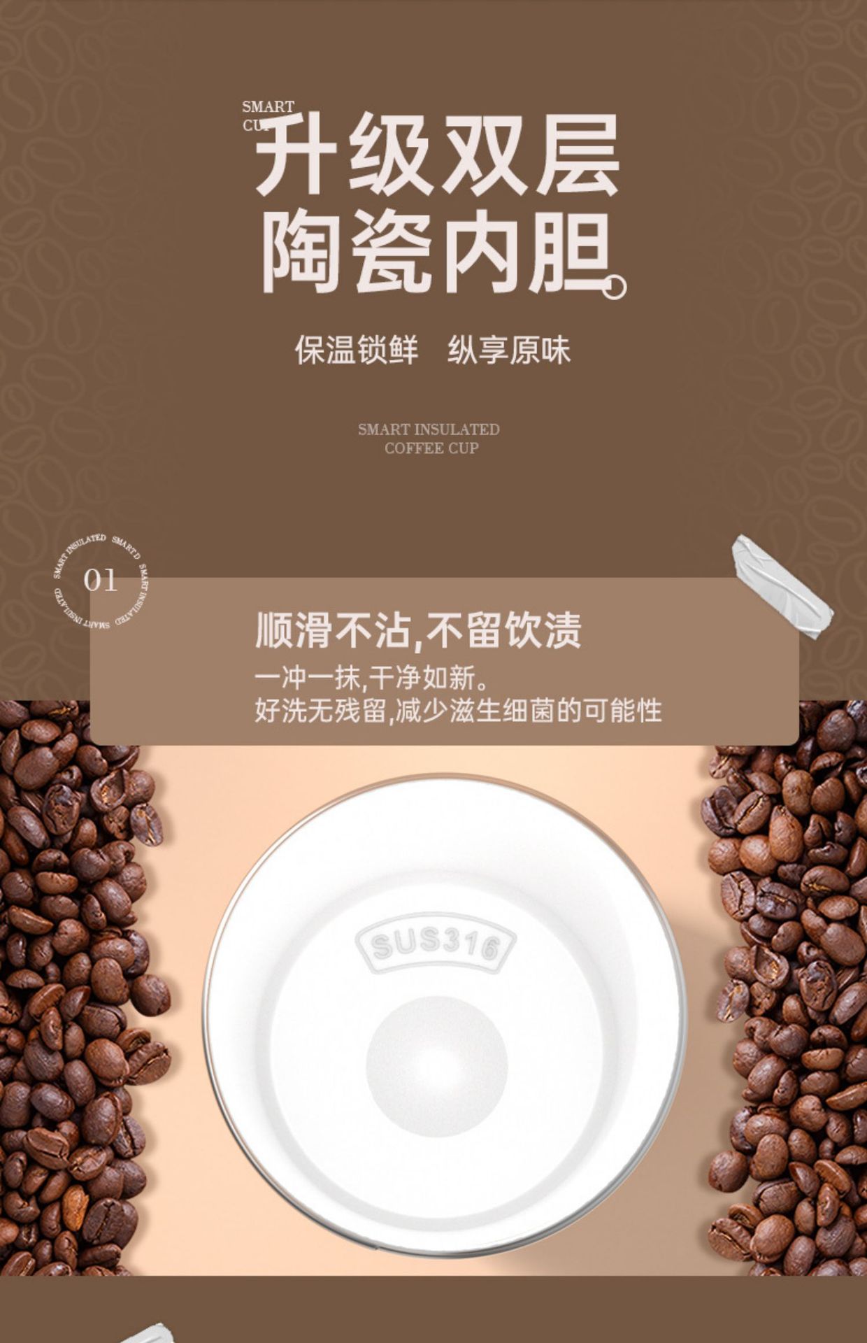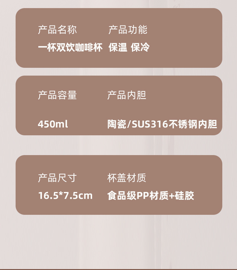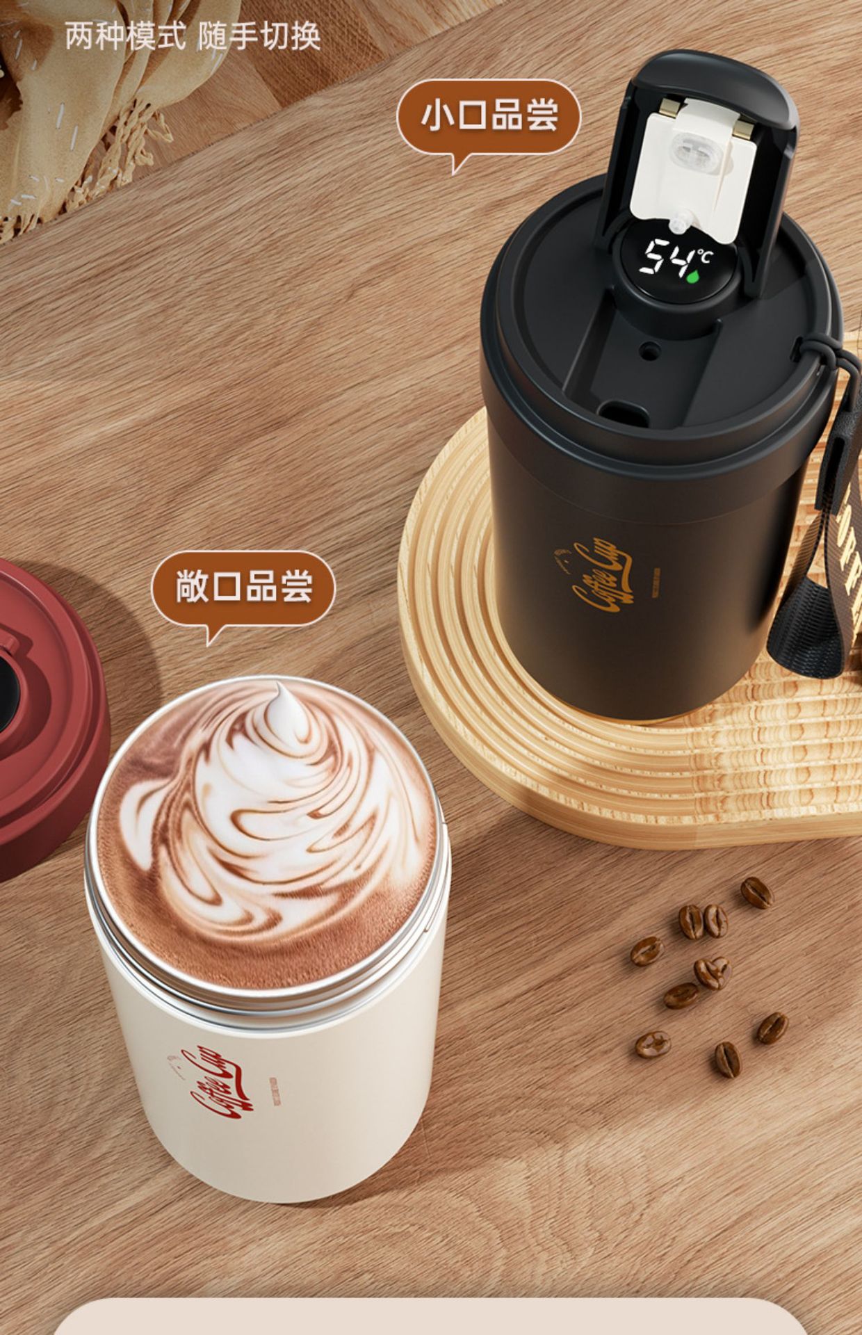 「四色可选!智能测温款」陶瓷内胆保温杯智能测温户外便携随行咖啡杯保温保冷餐饮用具