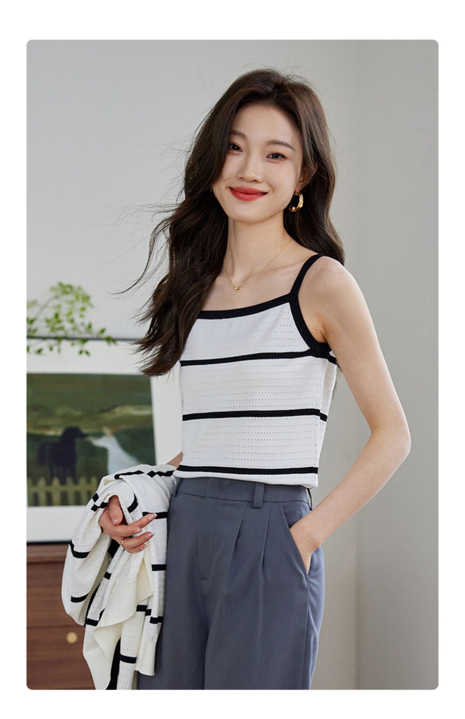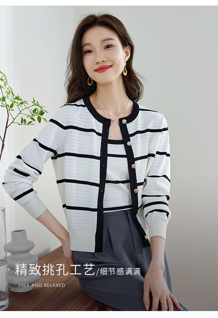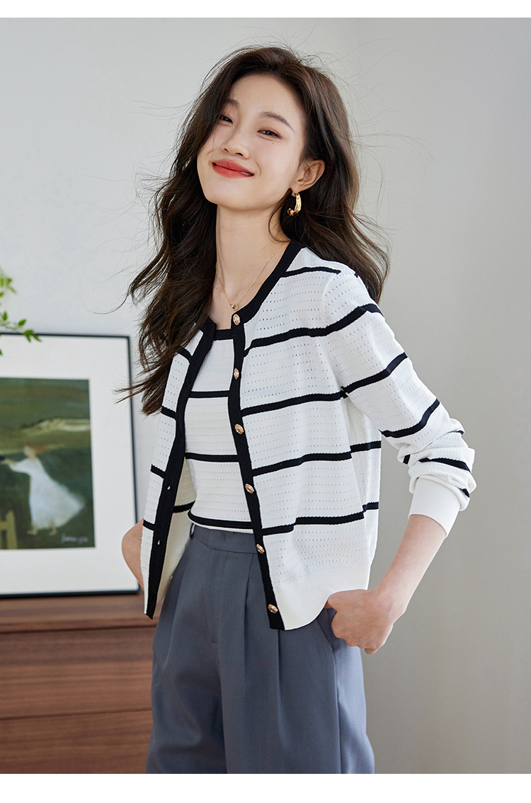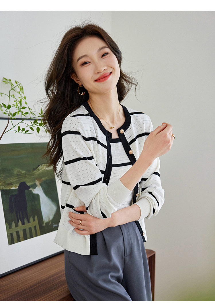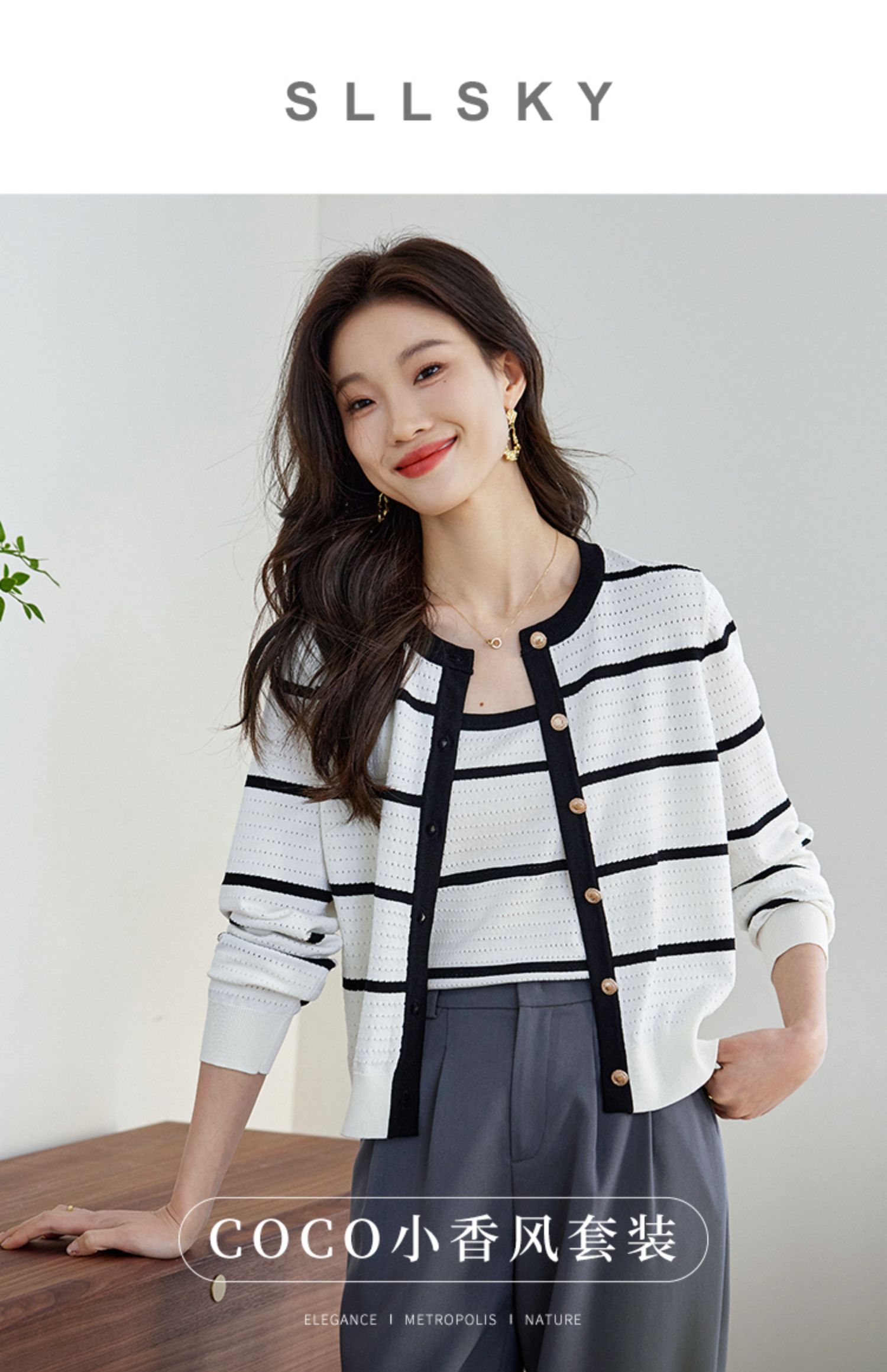 【年终特卖】熙世界小香风时尚套装2025秋新款条纹开衫短外套吊带背心两件套
