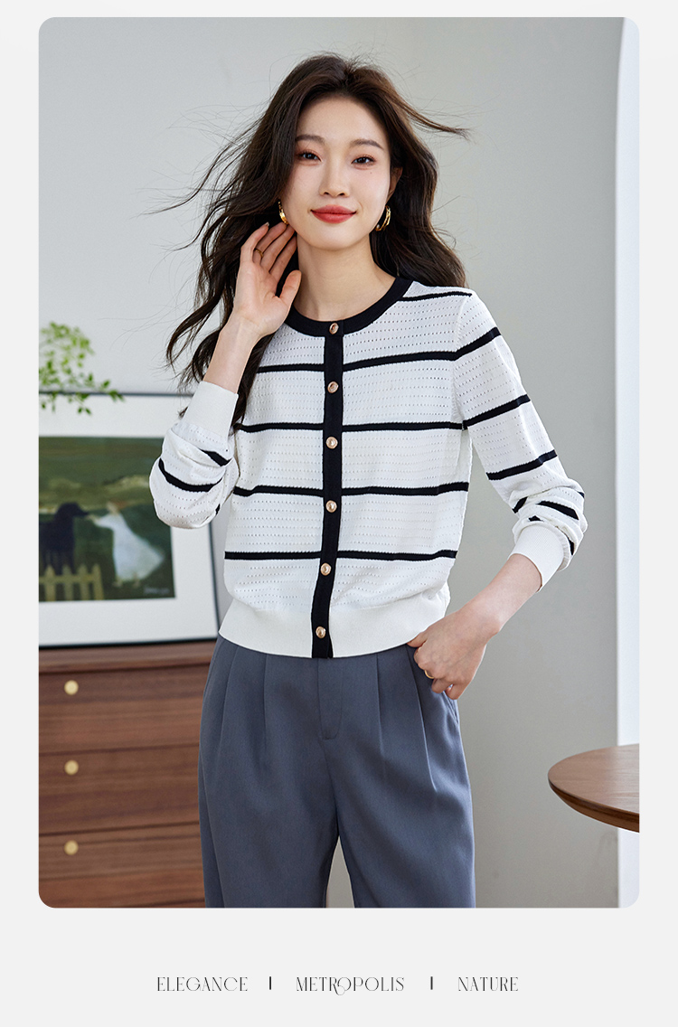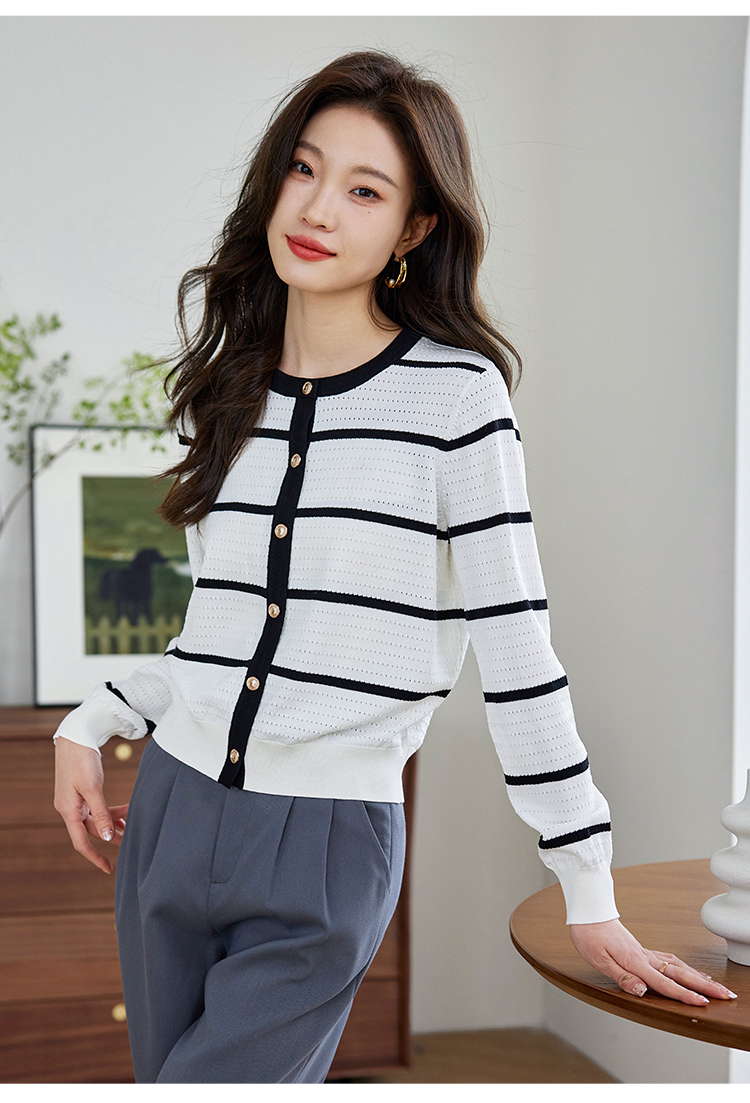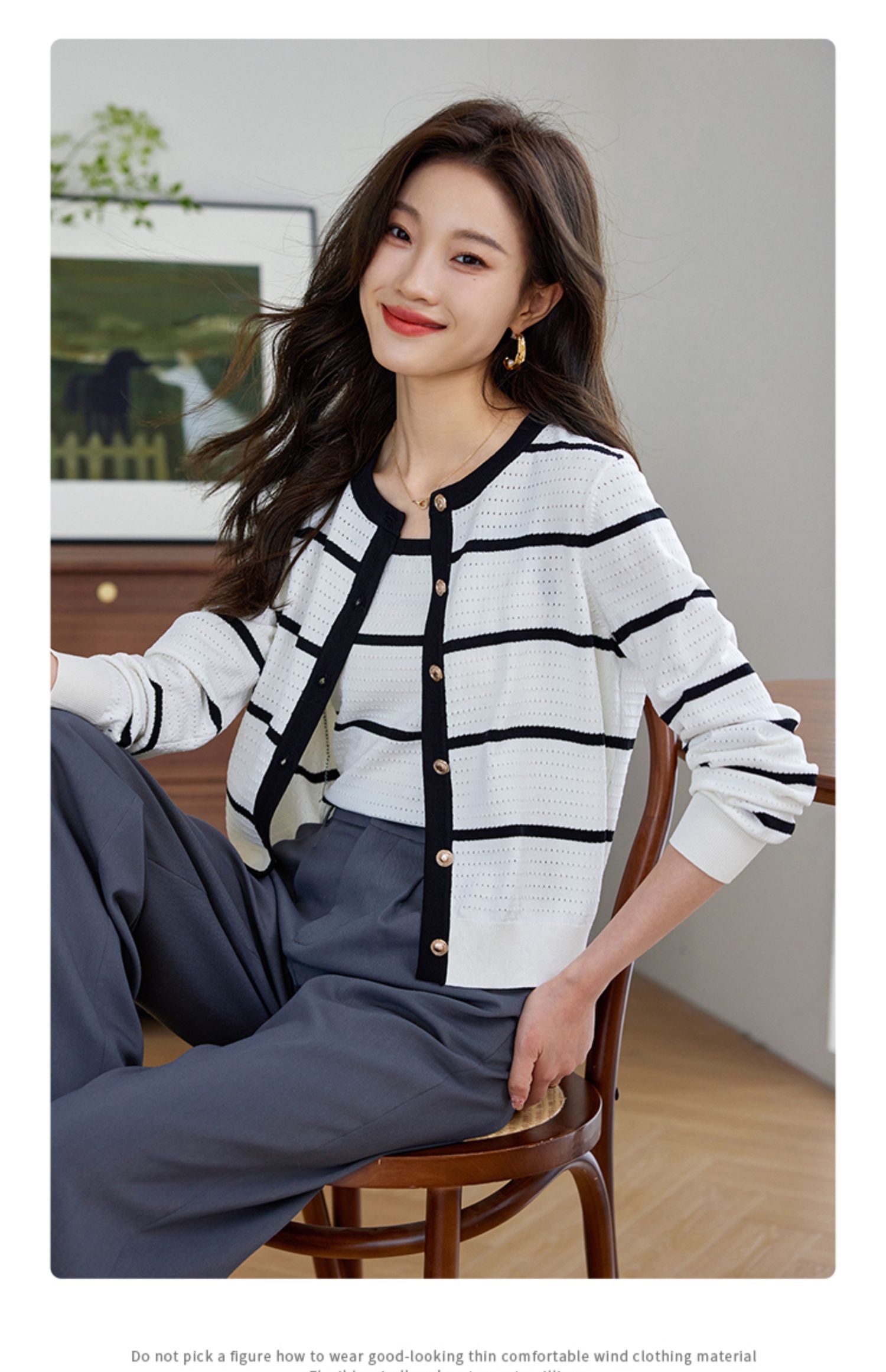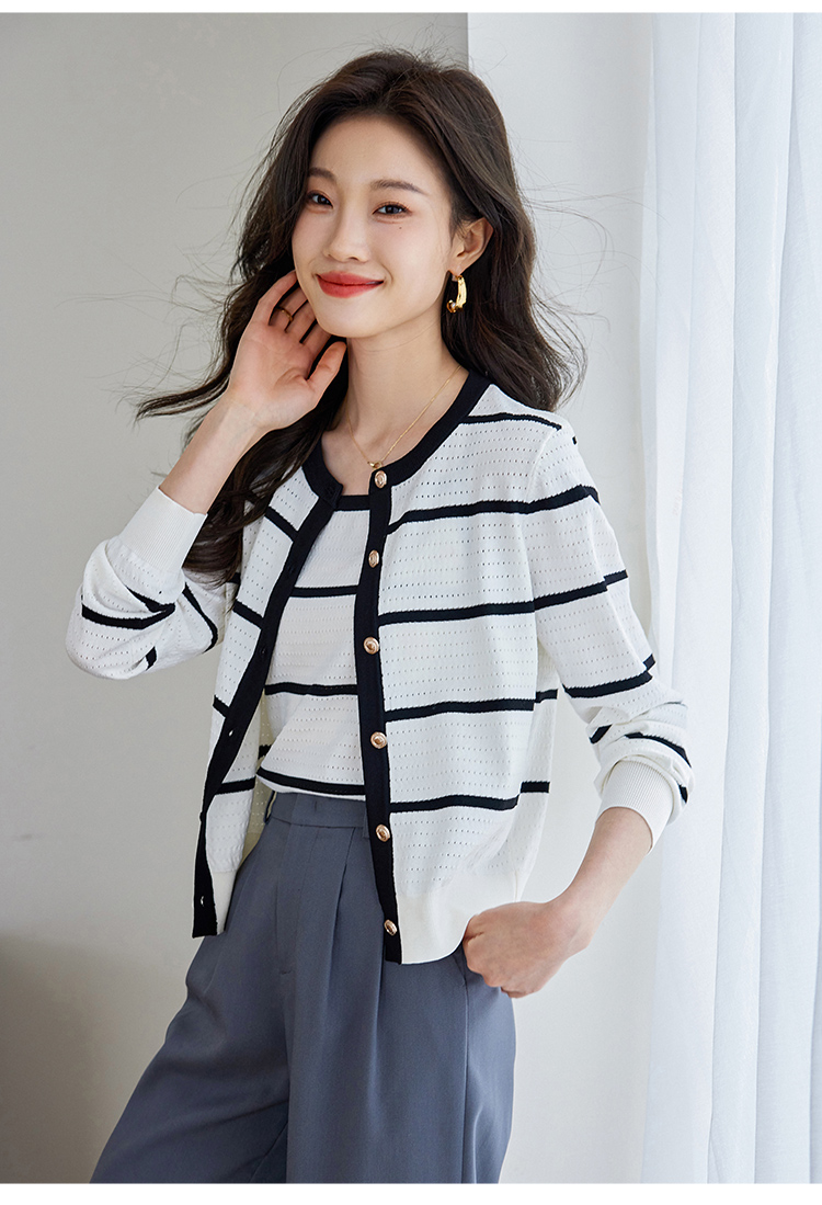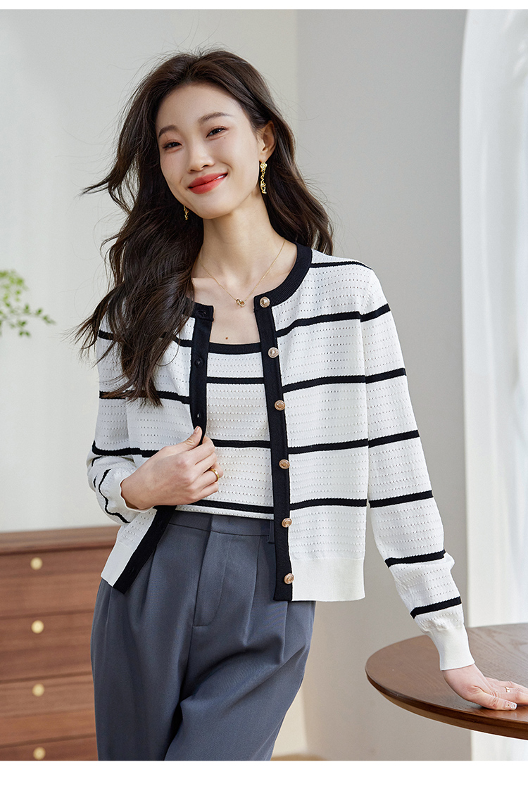【年终特卖】熙世界小香风时尚套装2025秋新款条纹开衫短外套吊带背心两件套