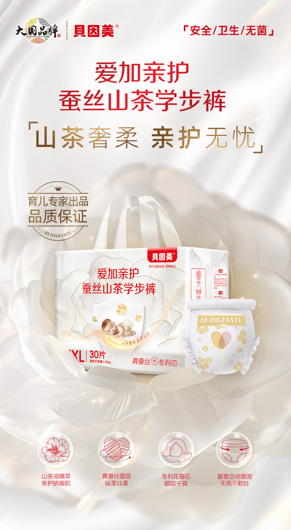 【官网联合】贝因美爱加亲护蚕丝山茶系列纸尿裤/学步裤(柔软、透气、亲肤)