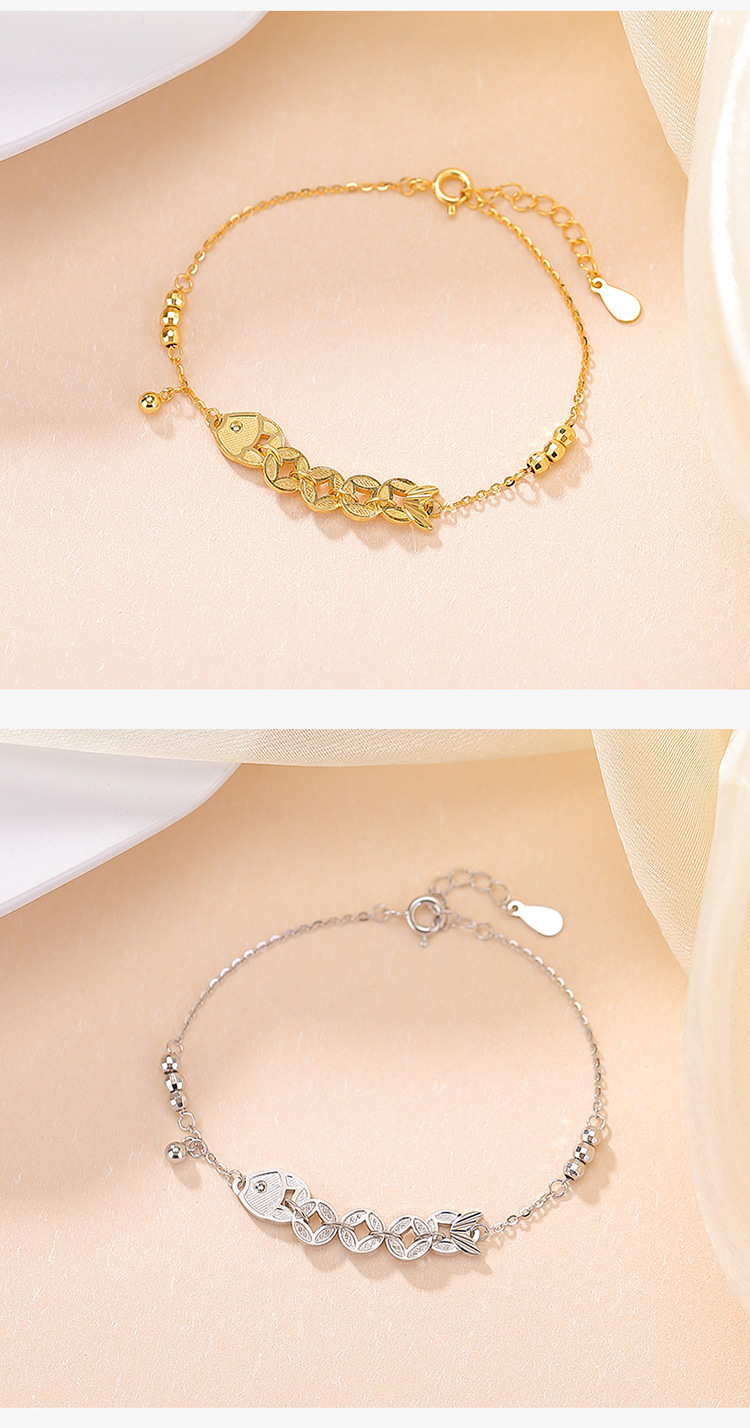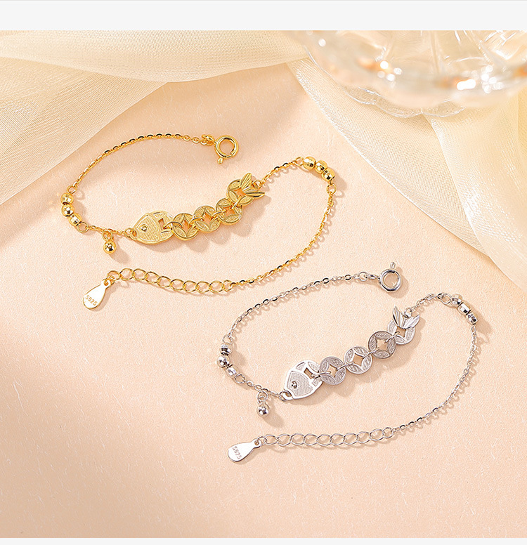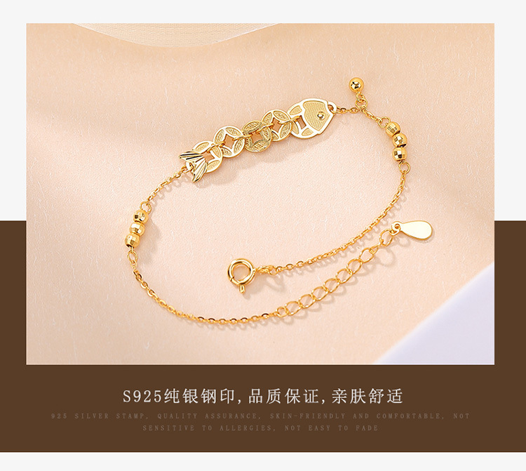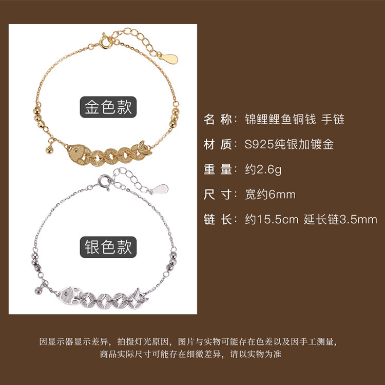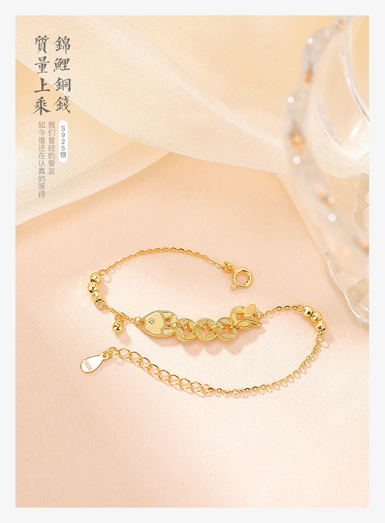 【招财锦鲤】S925纯银镀金锦鲤鲤鱼铜钱手链【CW-SL11967】