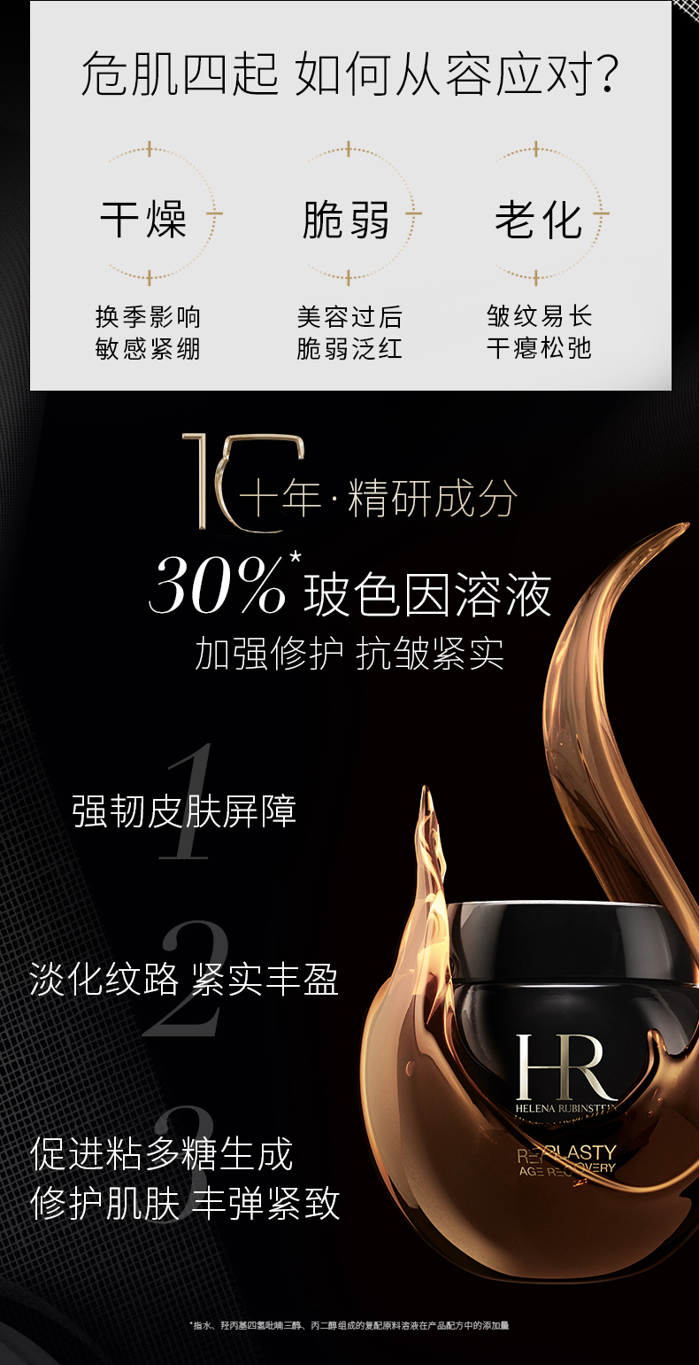 【口碑推荐直邮】HR/修护晚霜50ml+黑绷带眼霜15ml+小露珠200ml+洁面125ml(按摩头确认收货后发出)