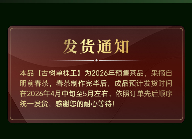 4.3日中午12点开抢;【香竹箐古树王单株】2026年古树茶香竹箐单株普洱生茶357g饼茶