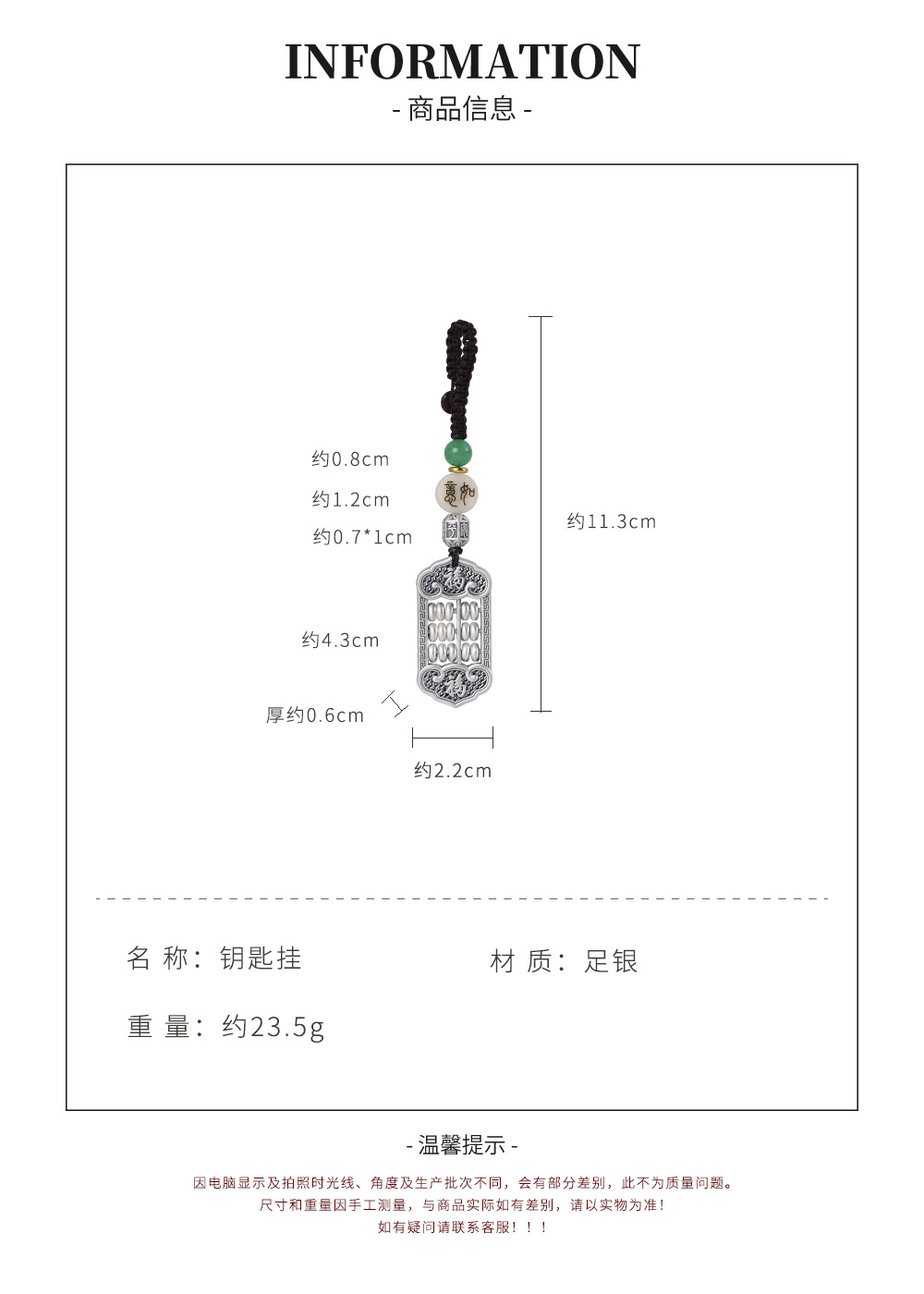 【妙算神武】999足银如意算盘喜乐平安福字钥匙扣【SCH-SY16956】