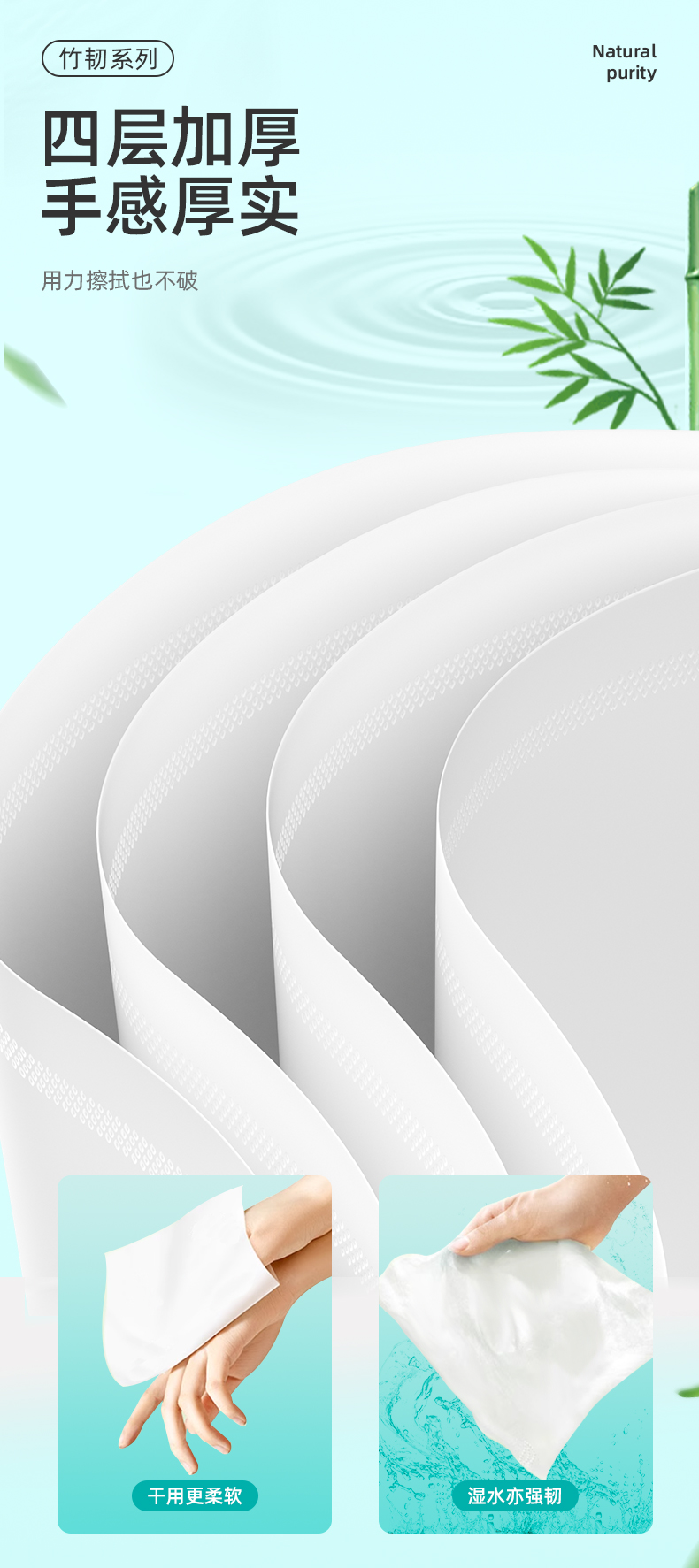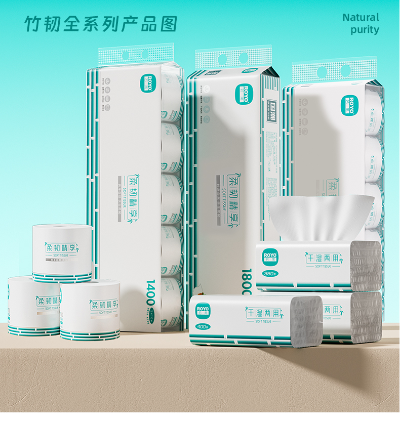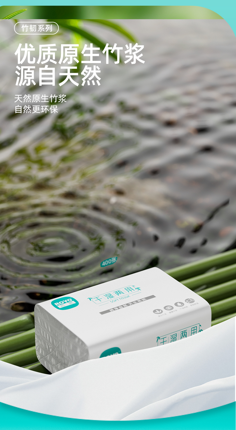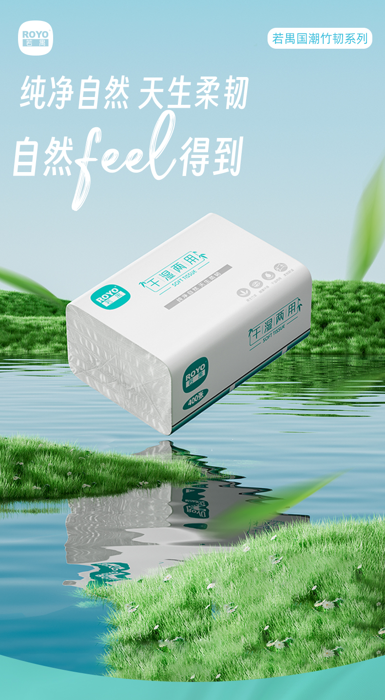 若禺软抽纸国潮竹韧系列4层加厚400张/包原生竹浆干湿两用6包/提到手12提RR1404