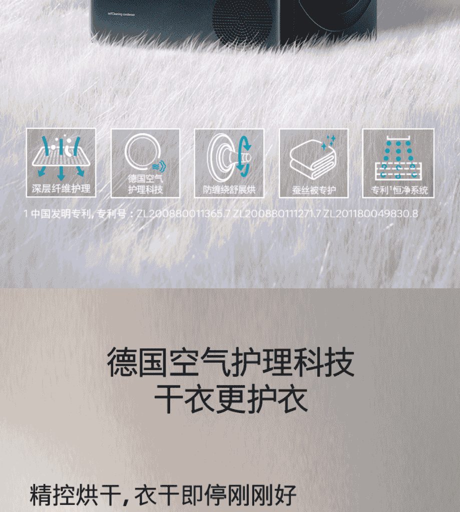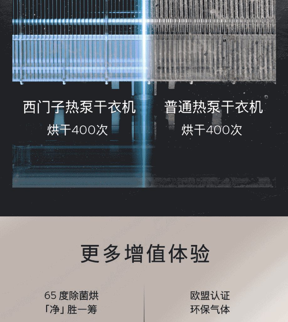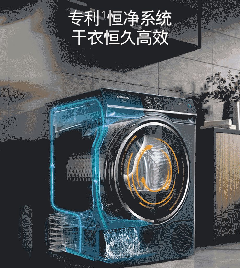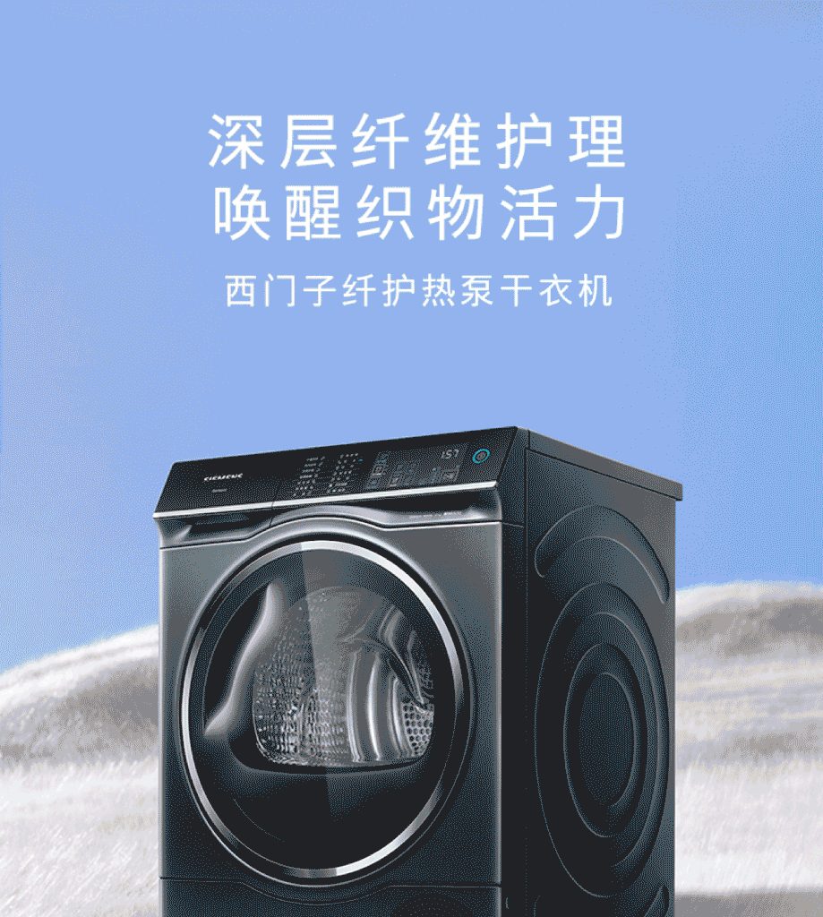 西门子(SIEMENS)10KG热泵干衣机 MT纤护 正反转防缠绕 湖蕴蓝 WQ56U4D10W