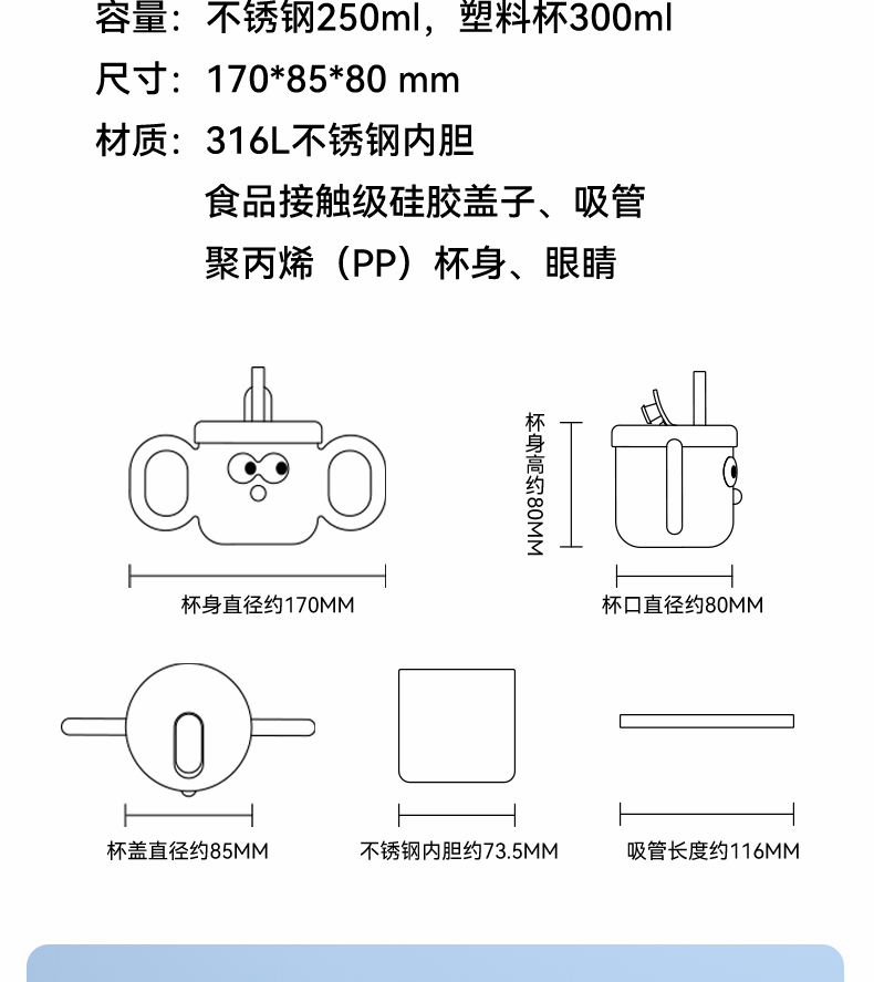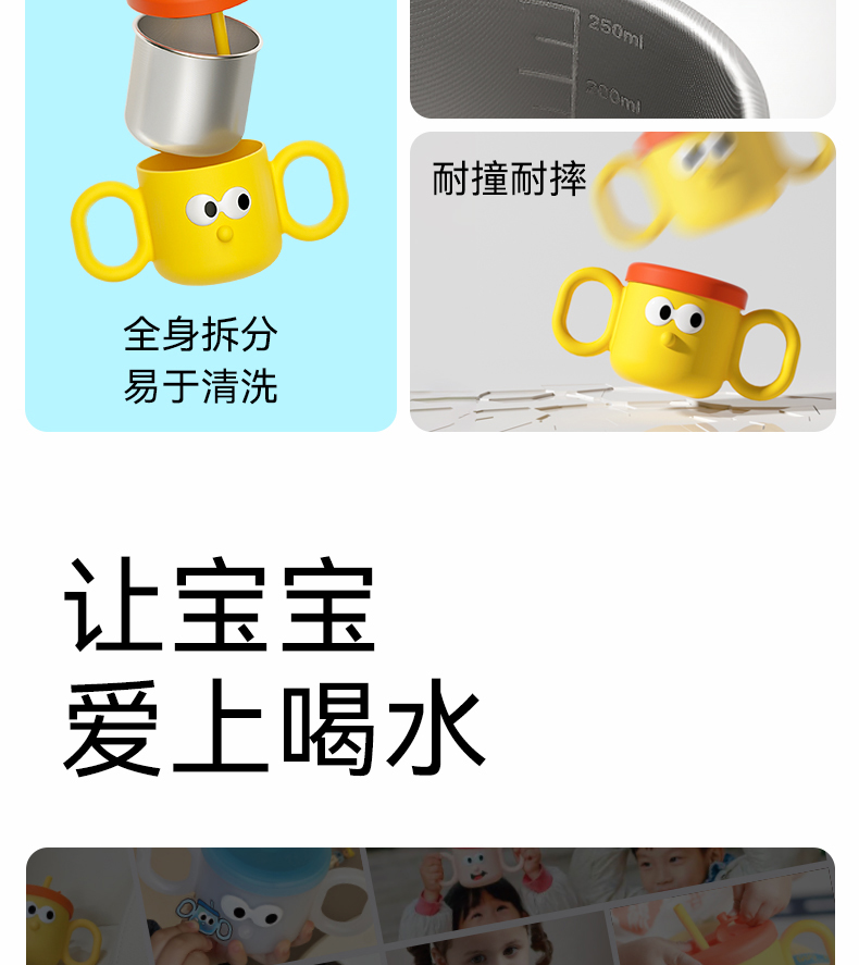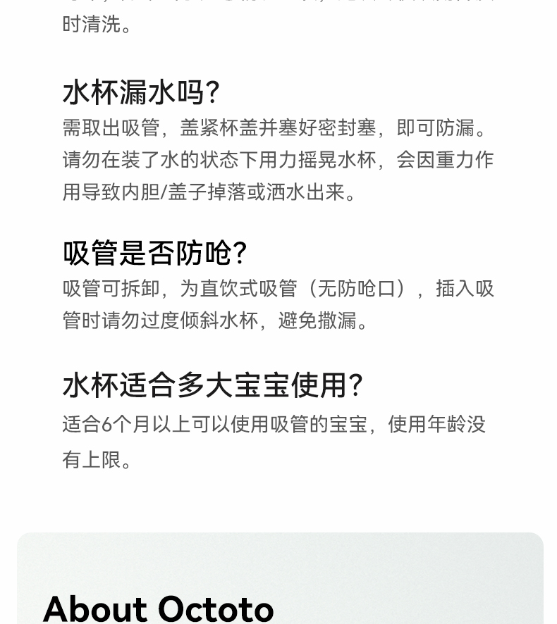 *【octoto奥克兔兔】儿童水杯宝宝吸管杯牛奶杯学饮杯杯子婴儿米糊杯