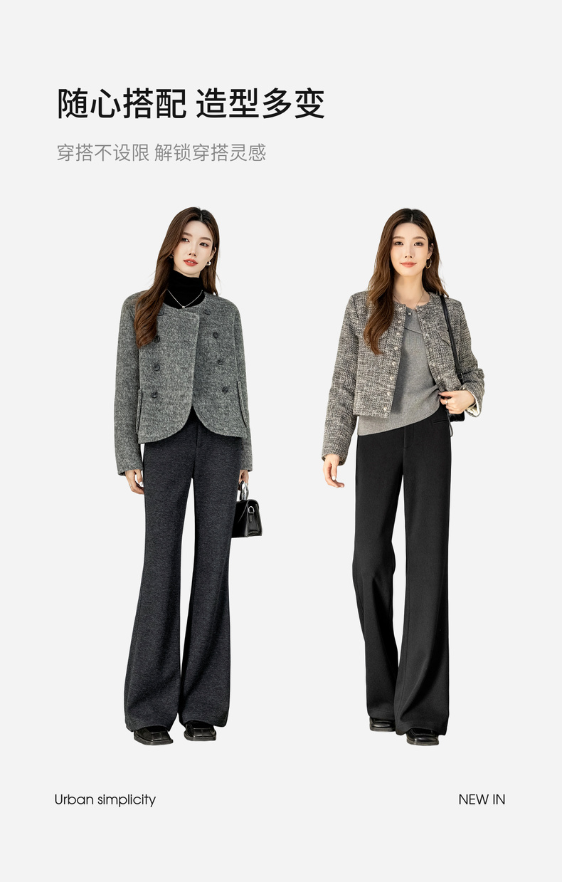 【内购】【易搭配】都市通勤松紧腰显瘦微弹喇叭长裤-153K59395