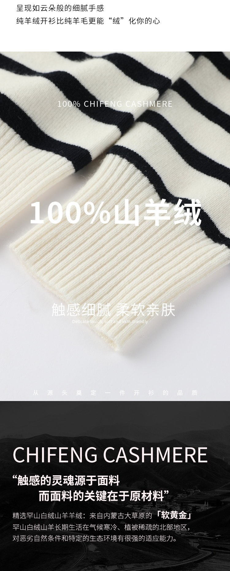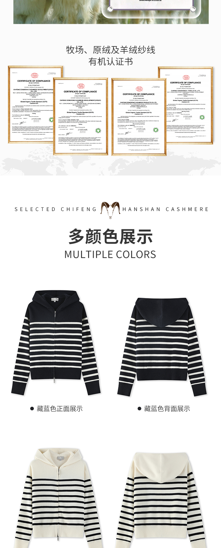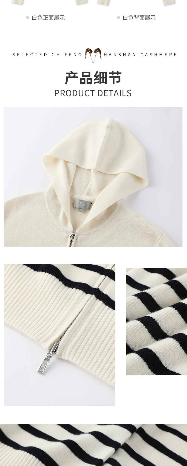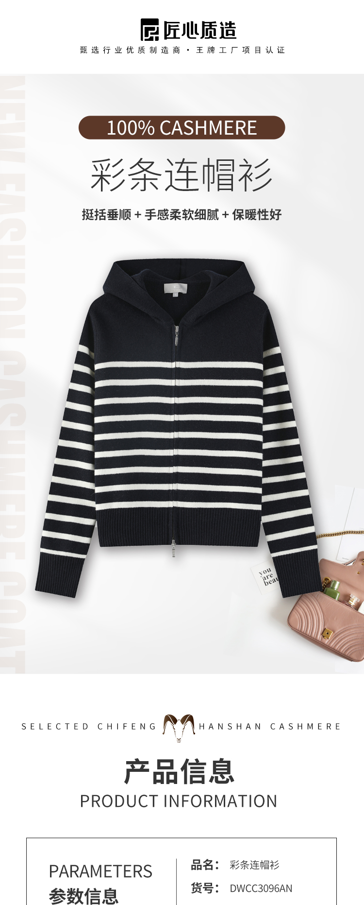 东黎 • 山羊绒女士春秋条纹连帽开衫 3096