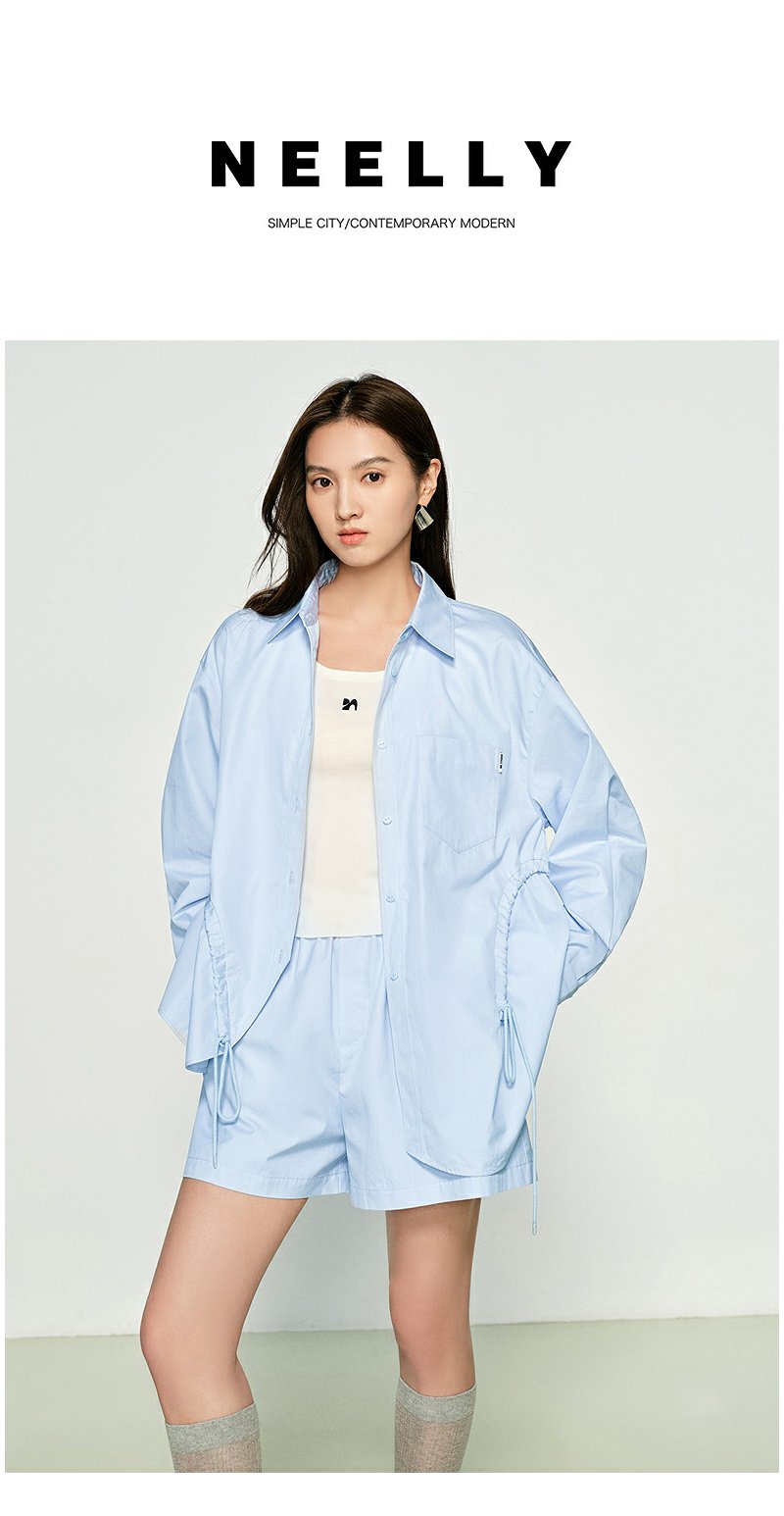 NEELLY纳俪商场同款春季新款时尚显白衬衫两件套女宽松出街套装N25074Z04560