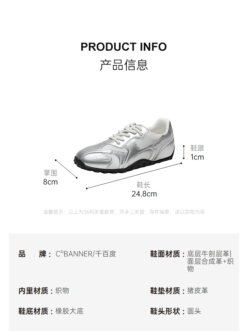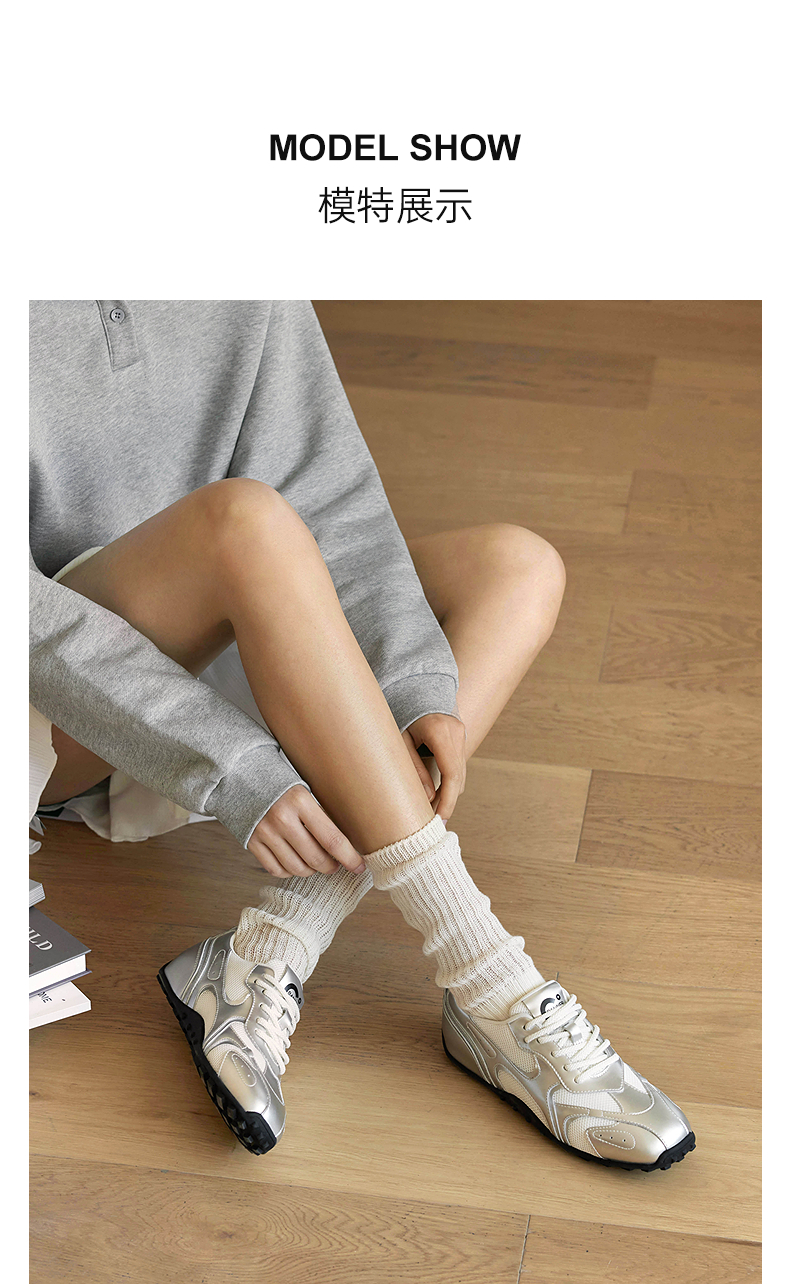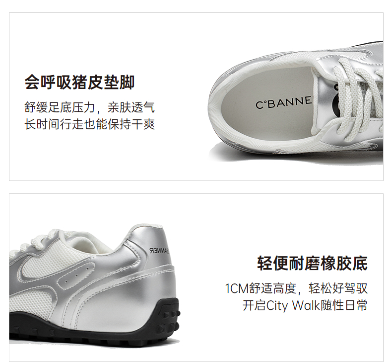 【李兰迪同款】千百度银色时尚休闲鞋女款款德训鞋小白鞋A25168602