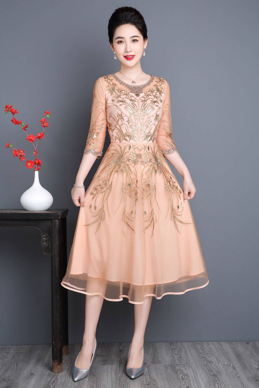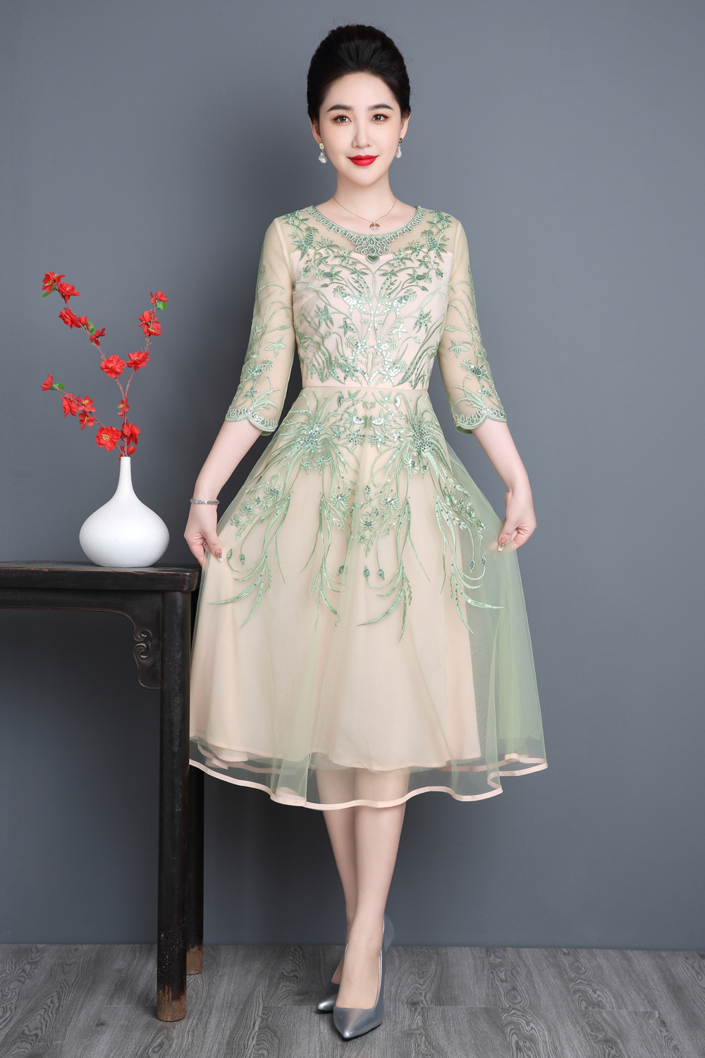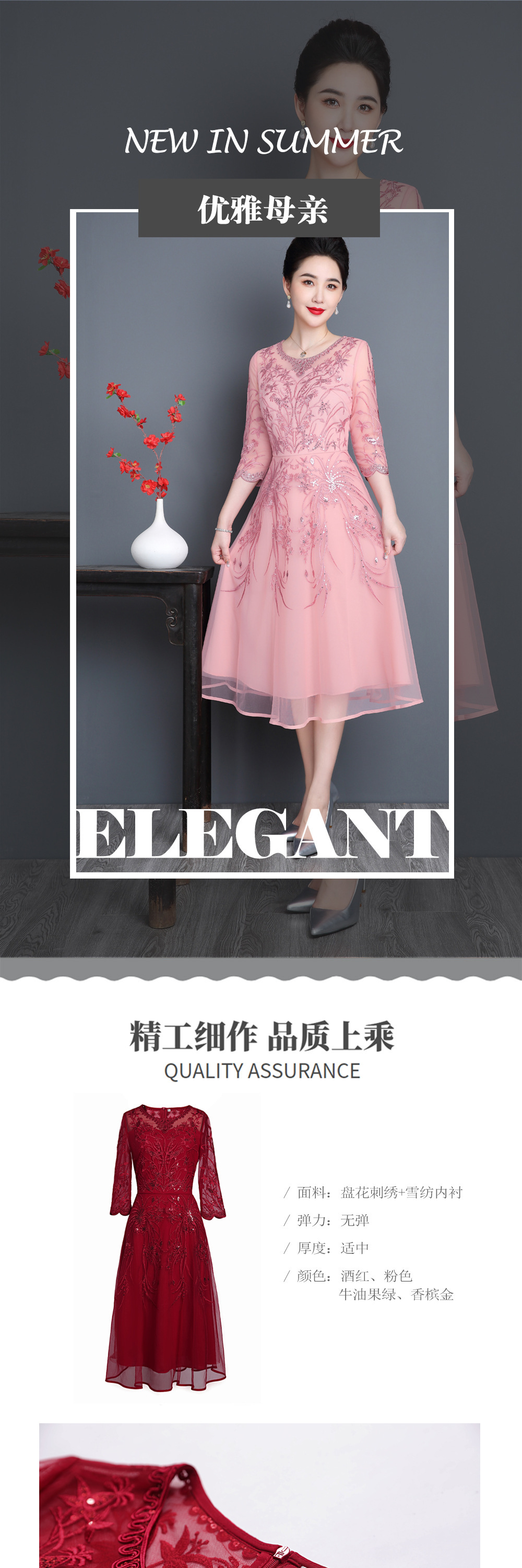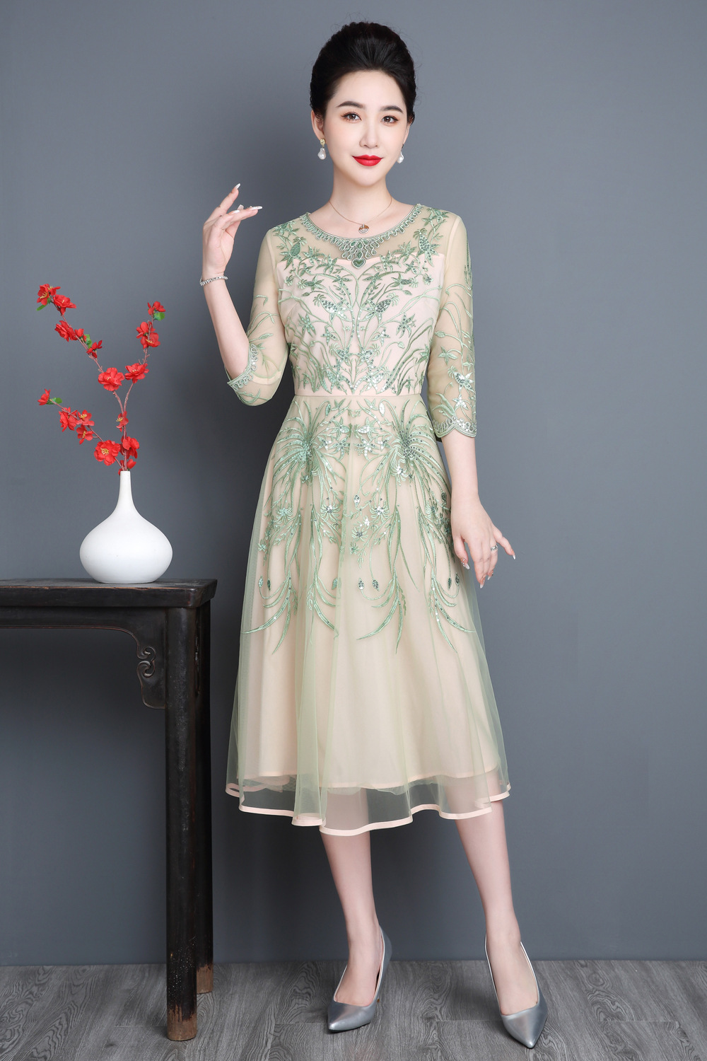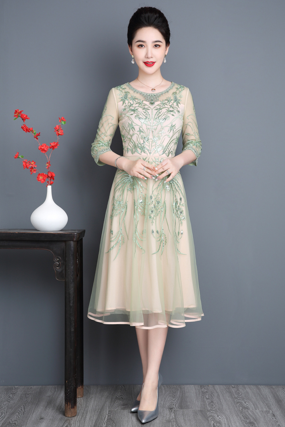 春季新款妈妈装,气质优雅刺绣喜婆婆礼服婚宴连衣裙TQ-9217CC