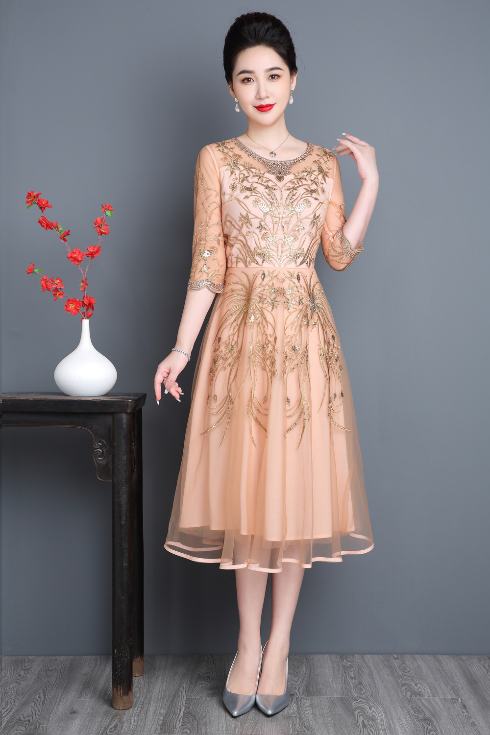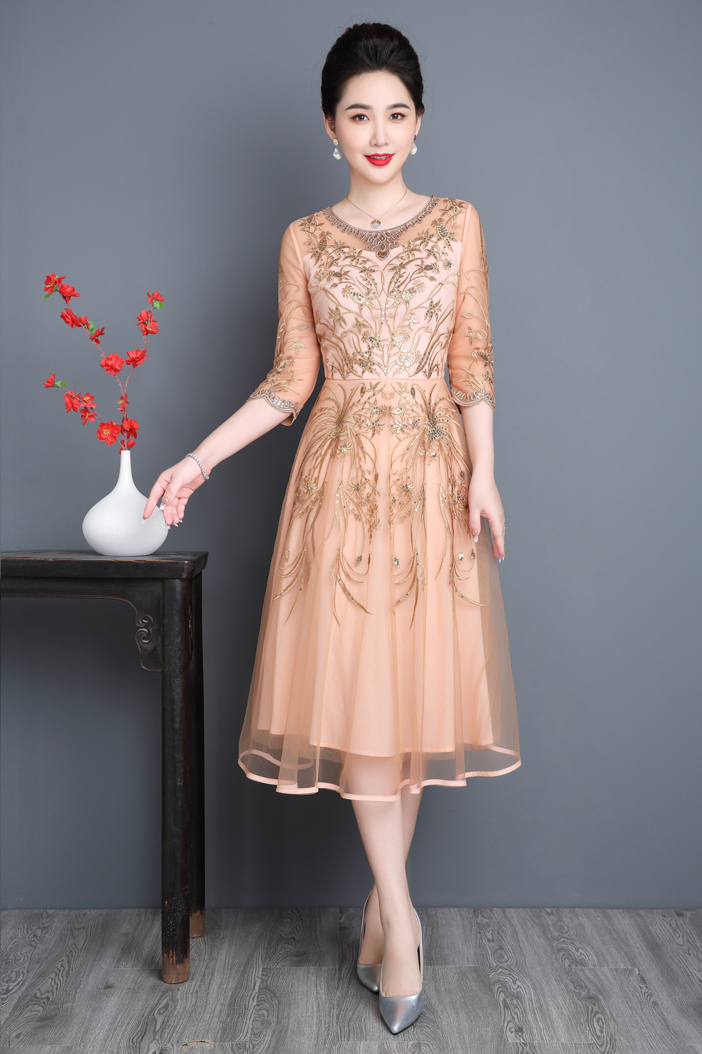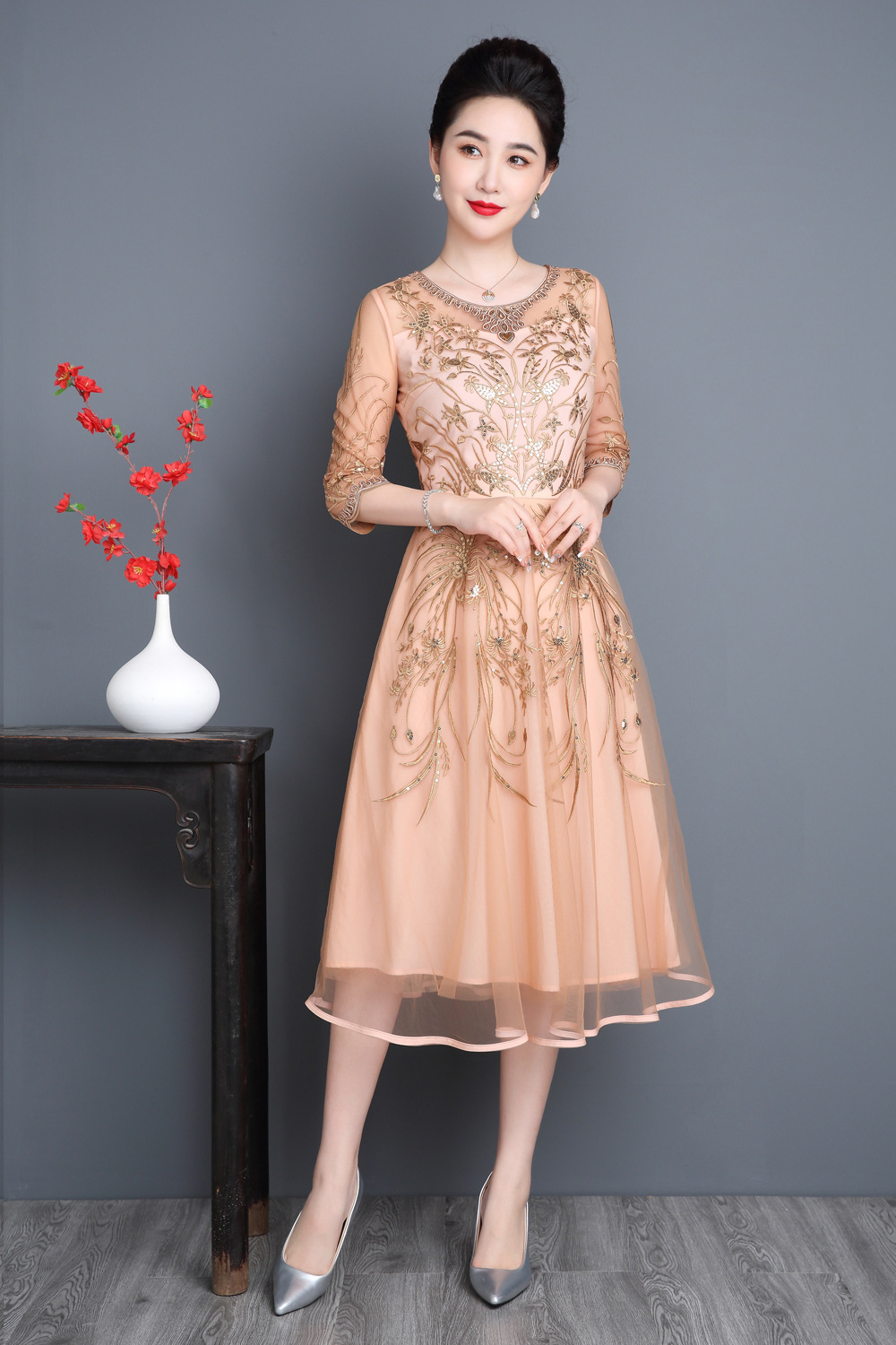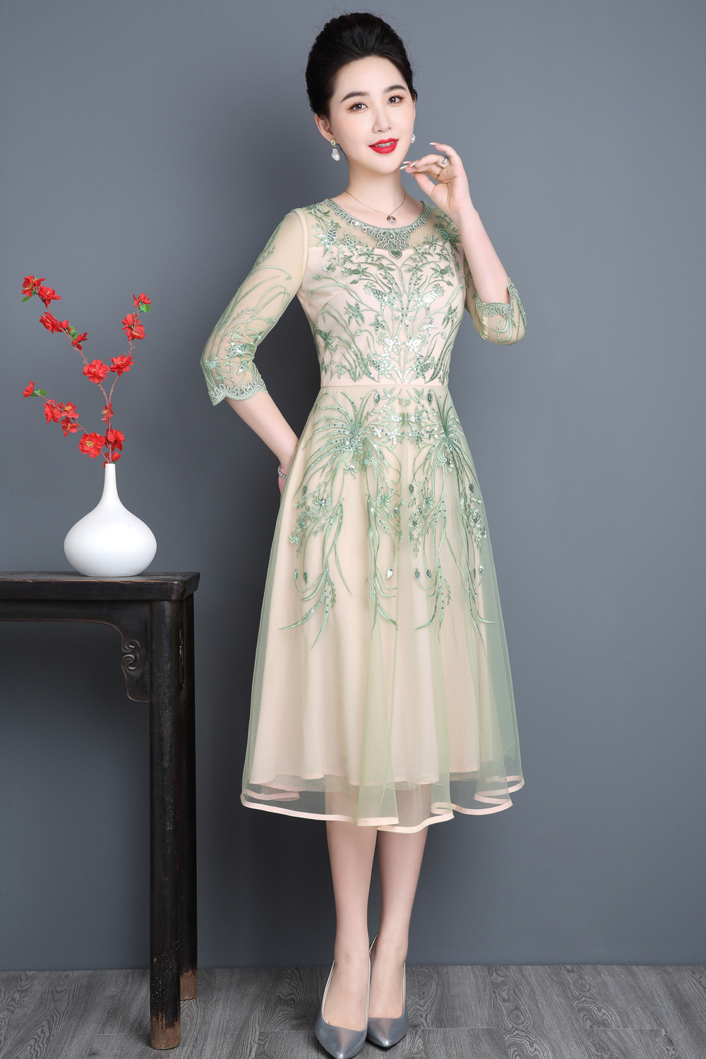 春季新款妈妈装,气质优雅刺绣喜婆婆礼服婚宴连衣裙TQ-9217CC