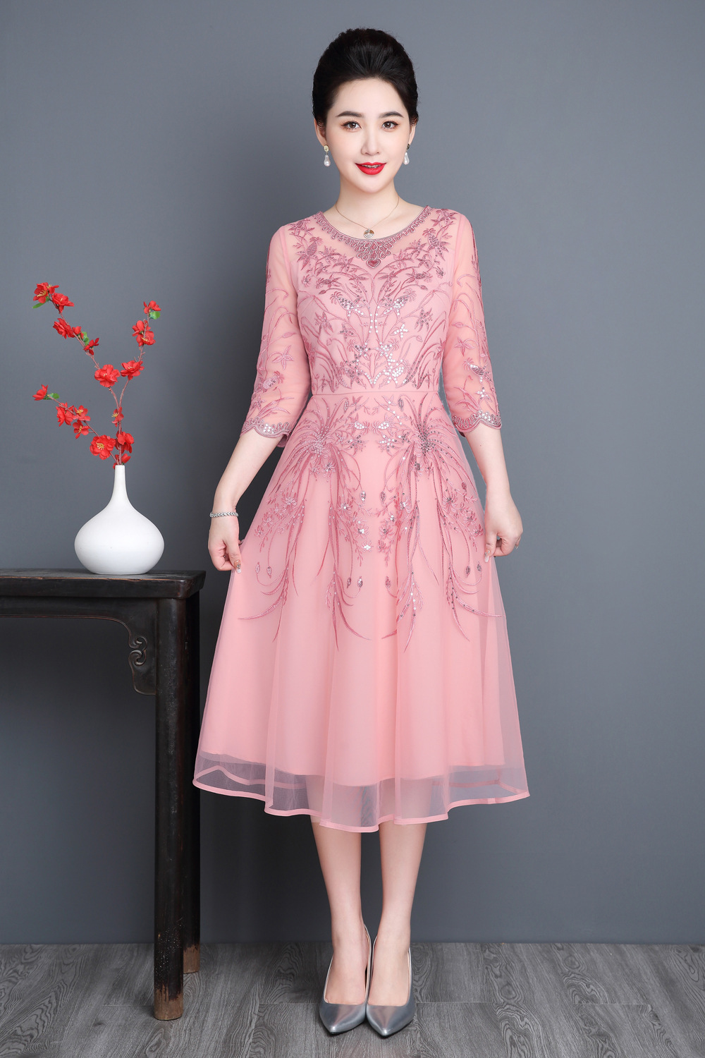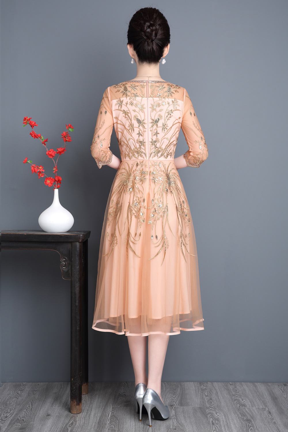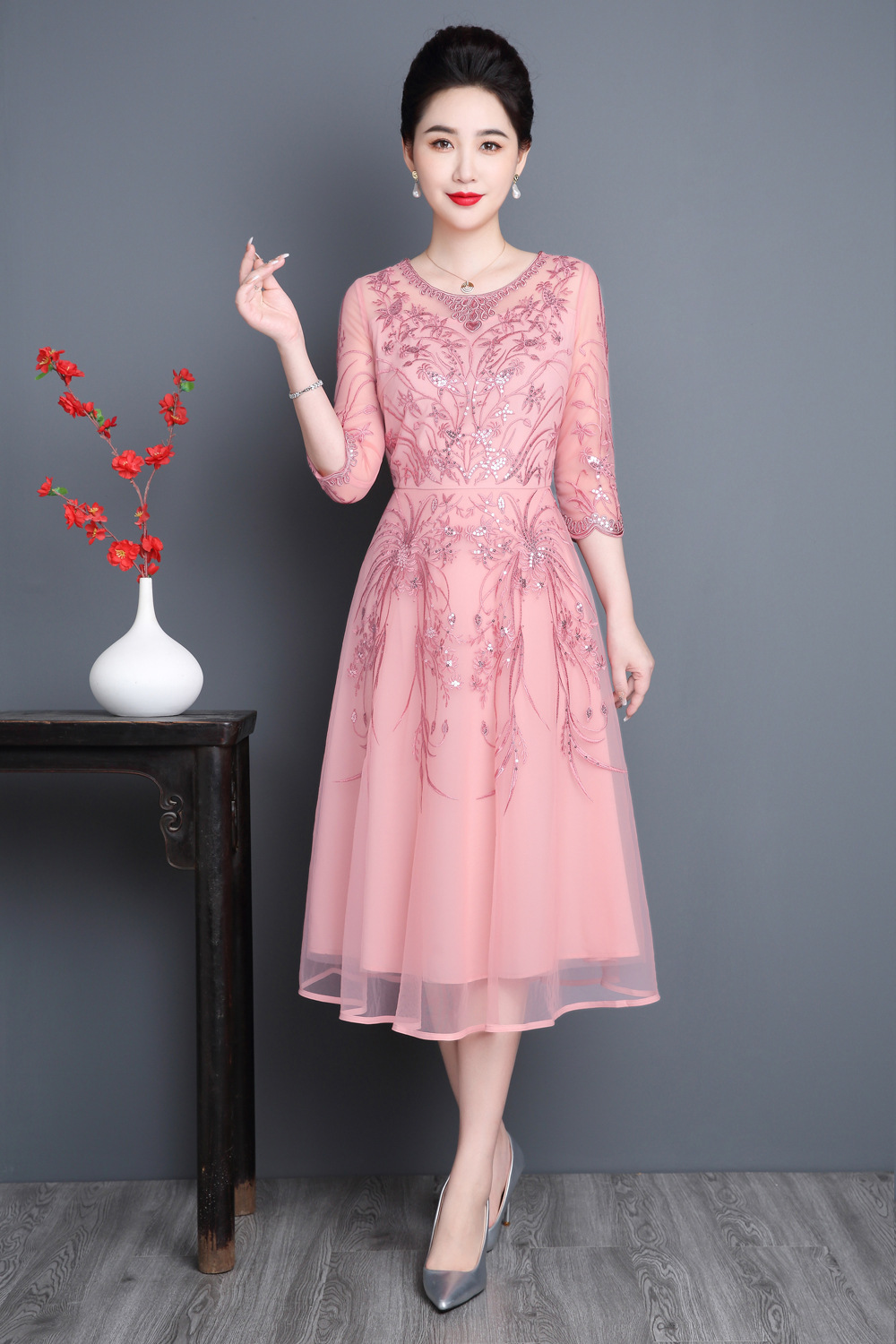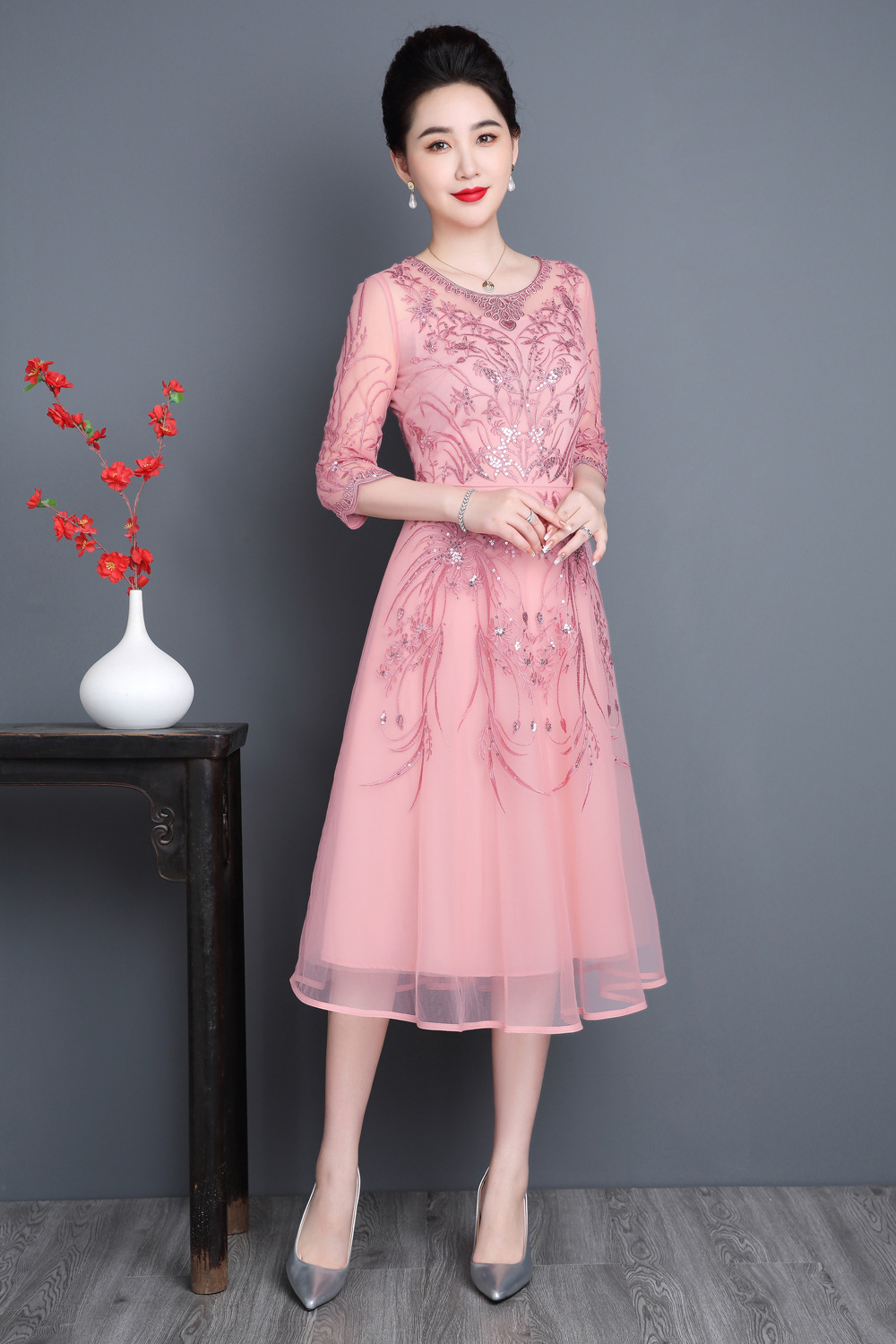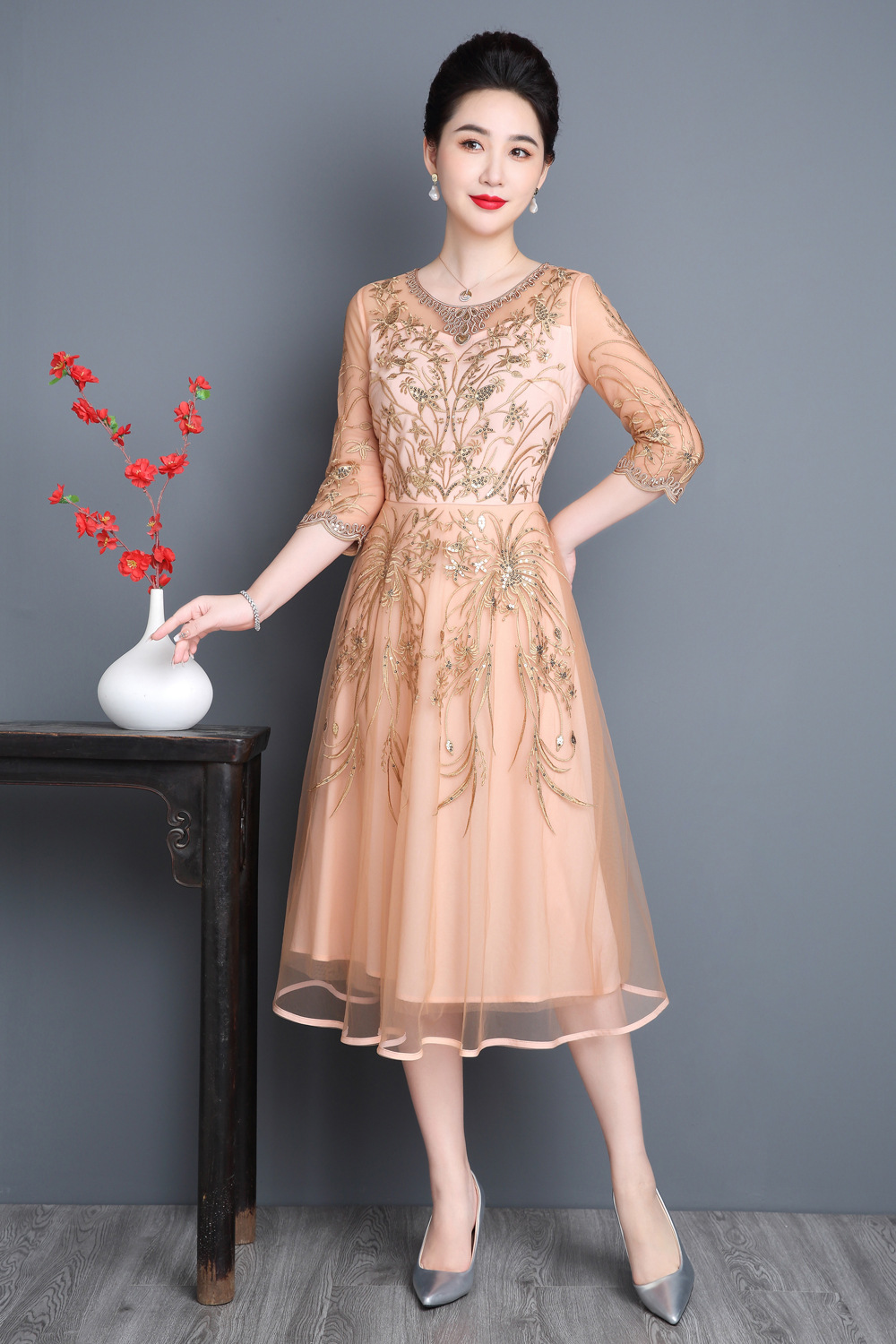 春季新款妈妈装,气质优雅刺绣喜婆婆礼服婚宴连衣裙TQ-9217CC