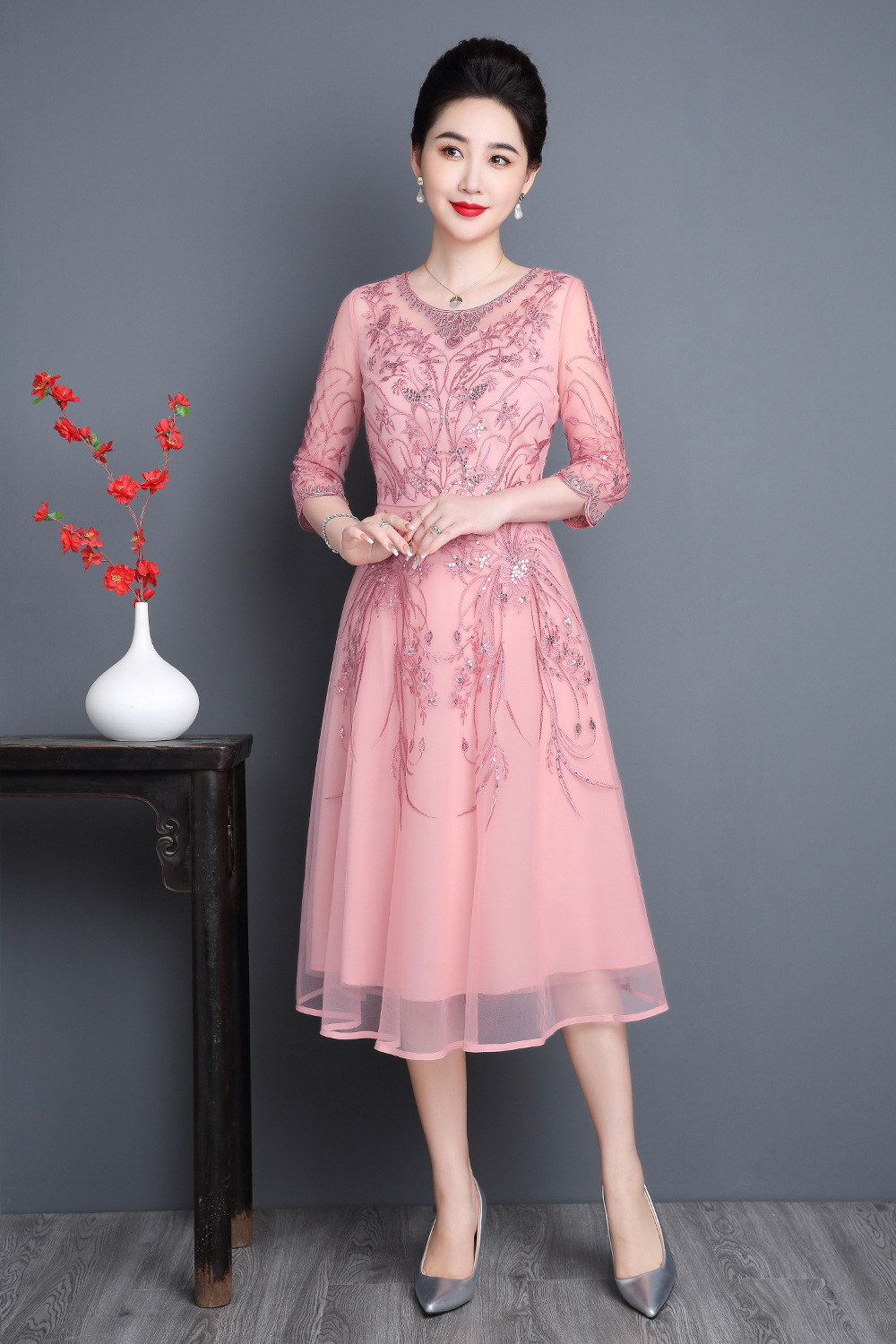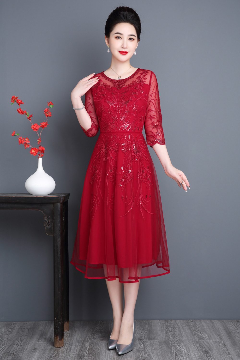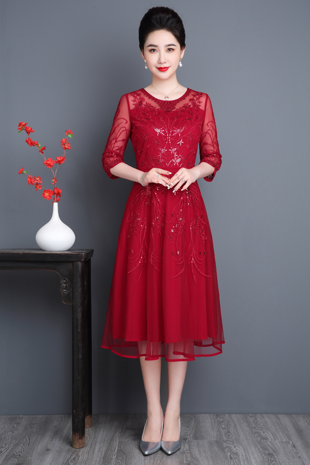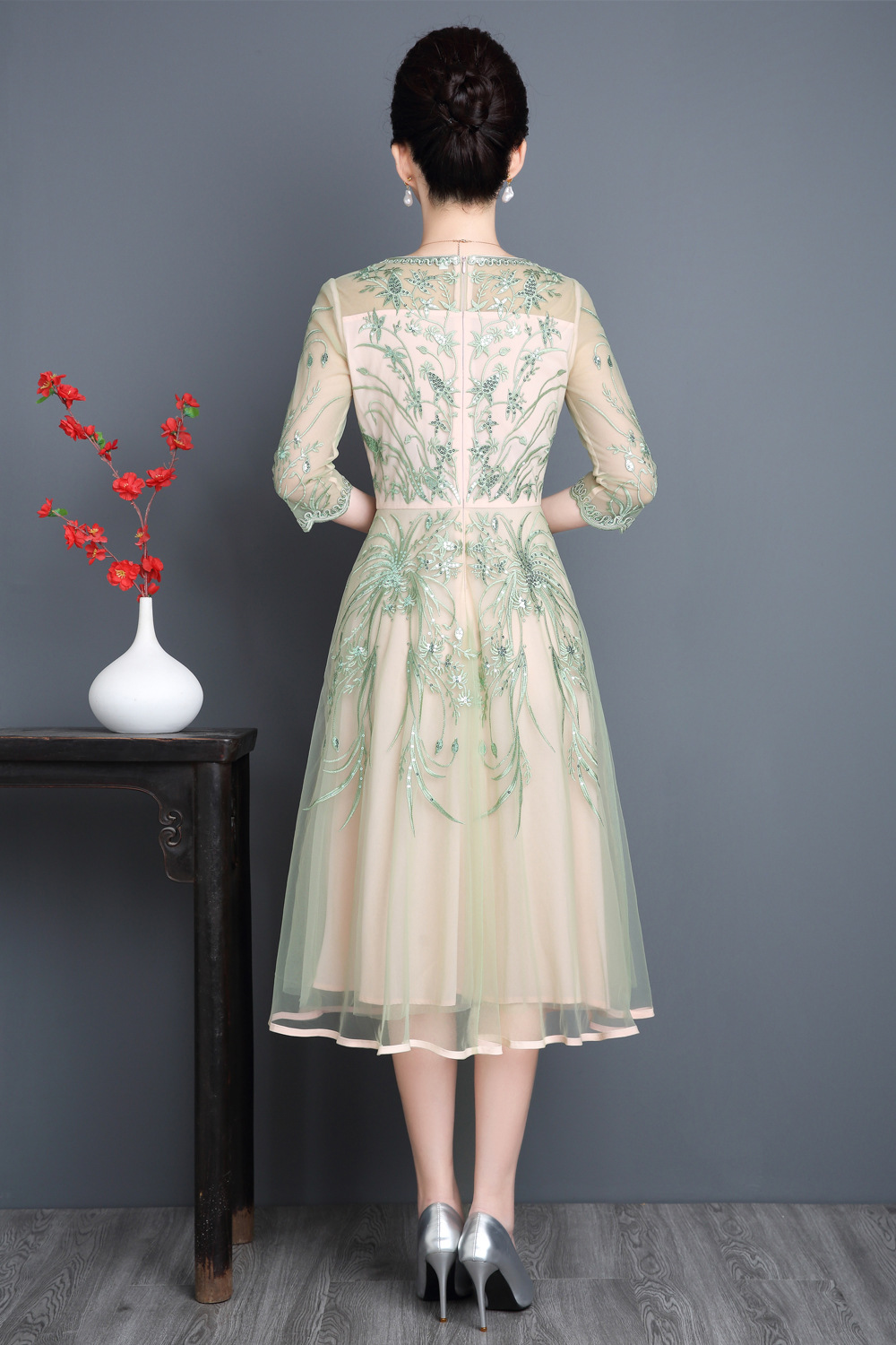 春季新款妈妈装,气质优雅刺绣喜婆婆礼服婚宴连衣裙TQ-9217CC