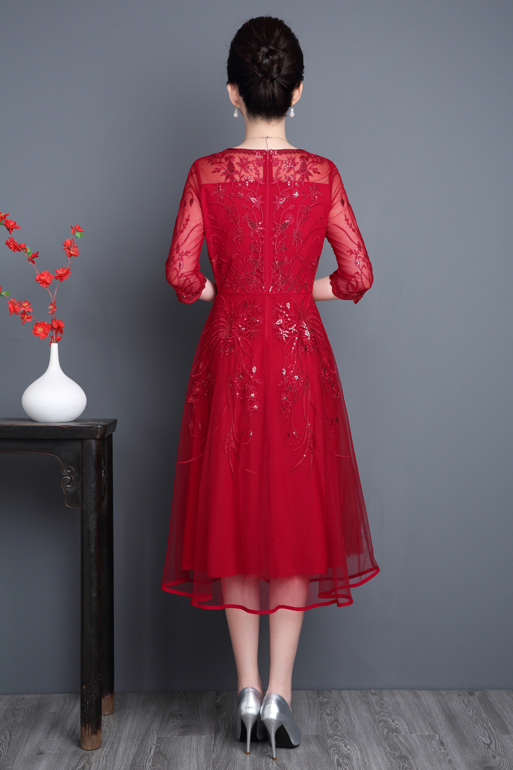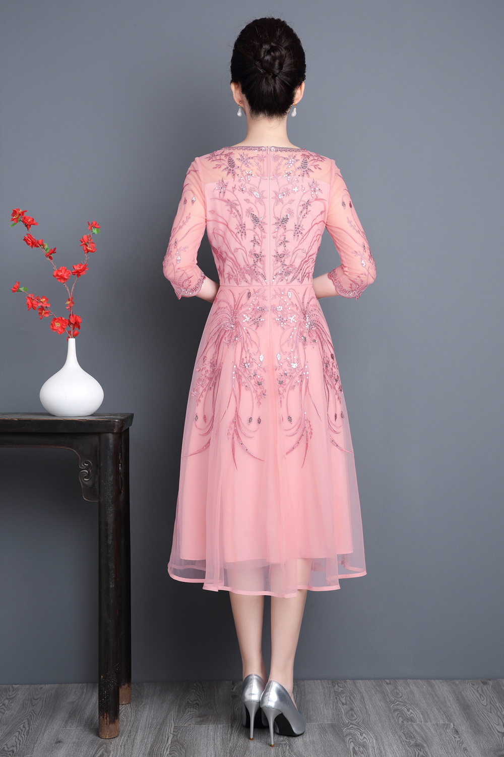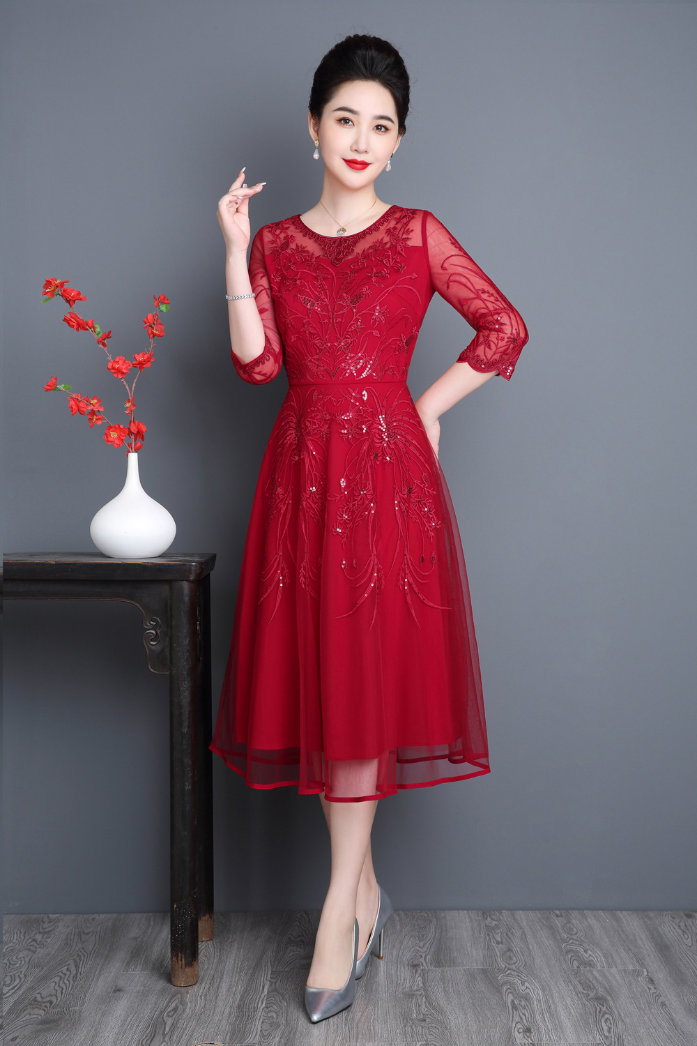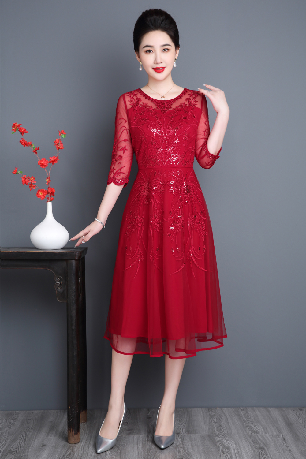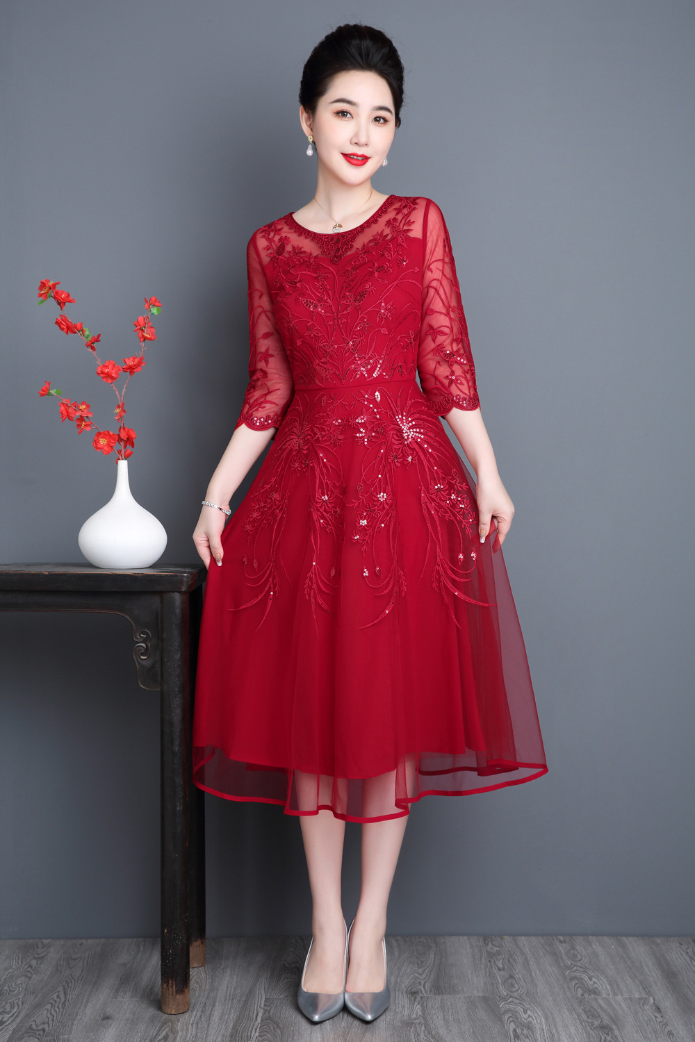 春季新款妈妈装,气质优雅刺绣喜婆婆礼服婚宴连衣裙TQ-9217CC