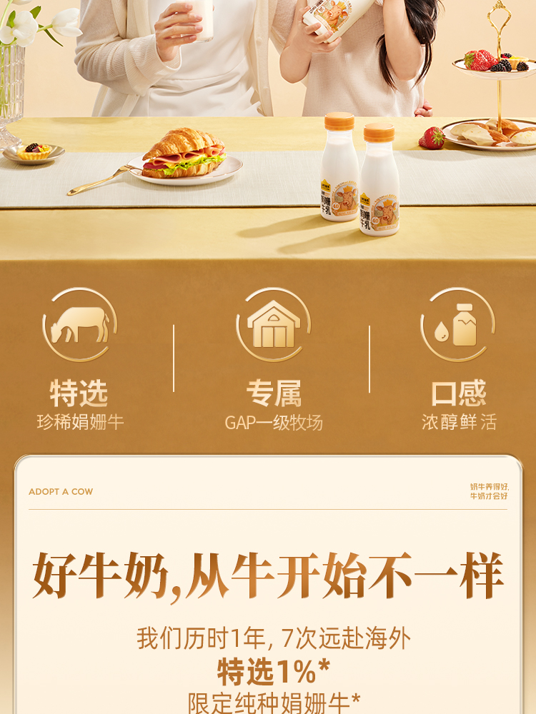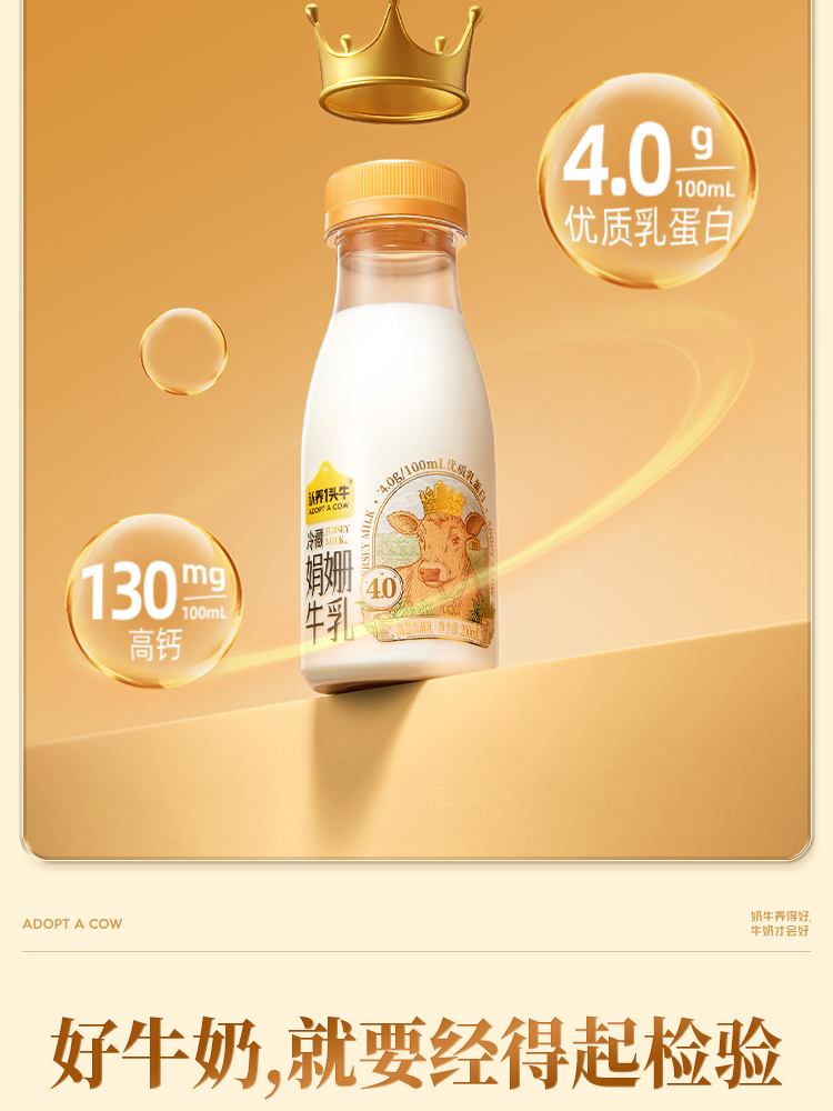 【72小时发货】认养一头牛 冷藏娟姗牛乳200ml*12