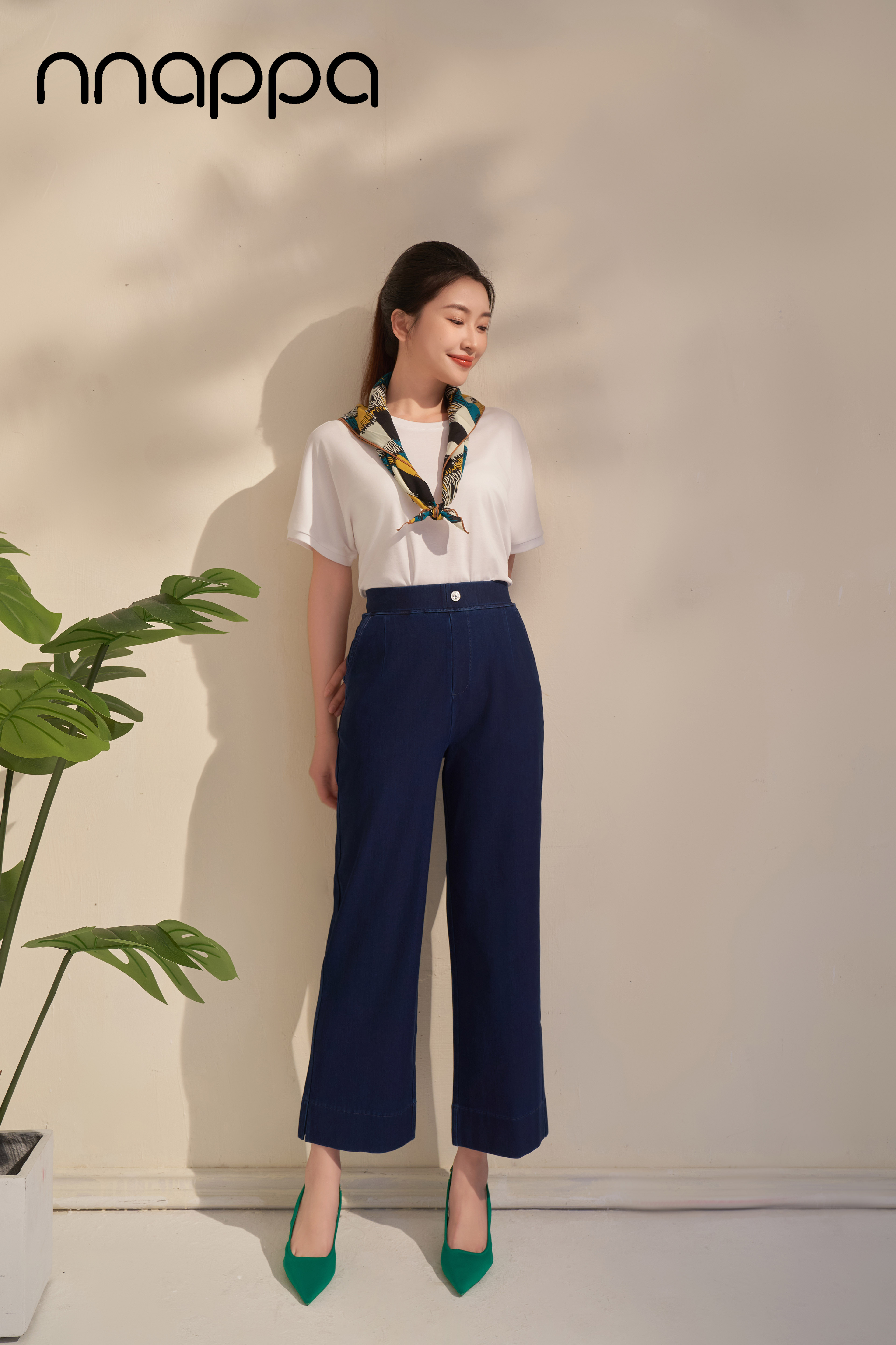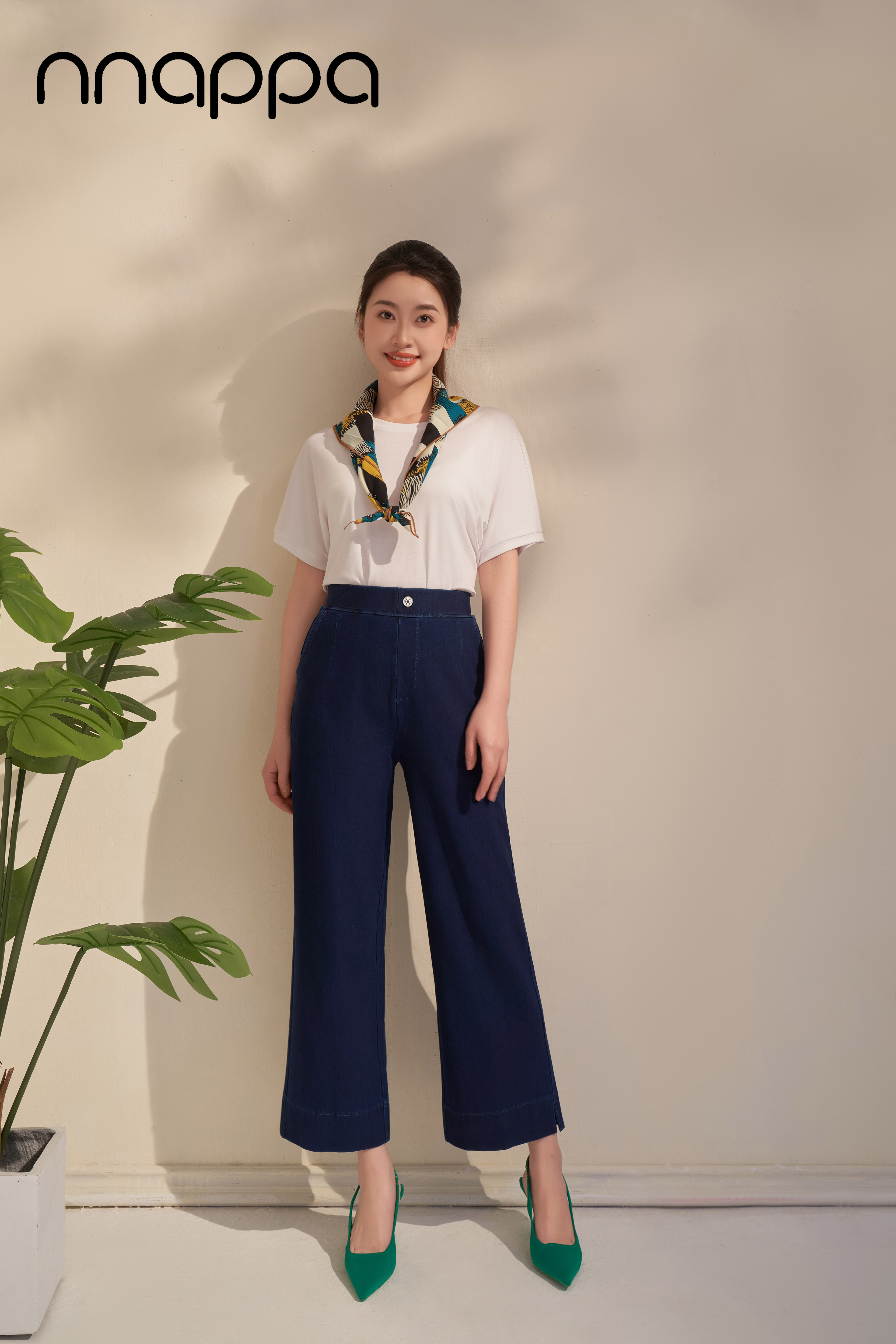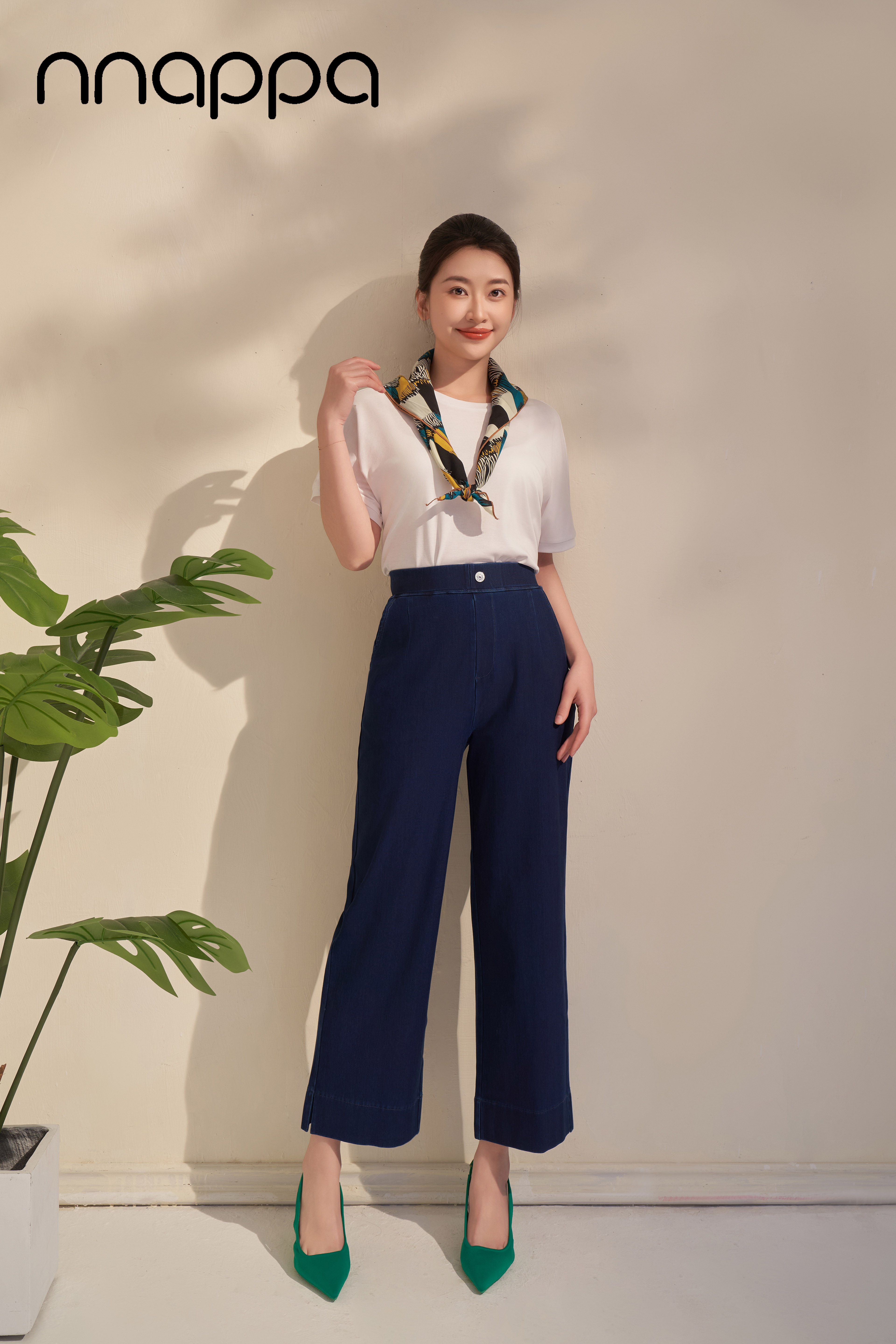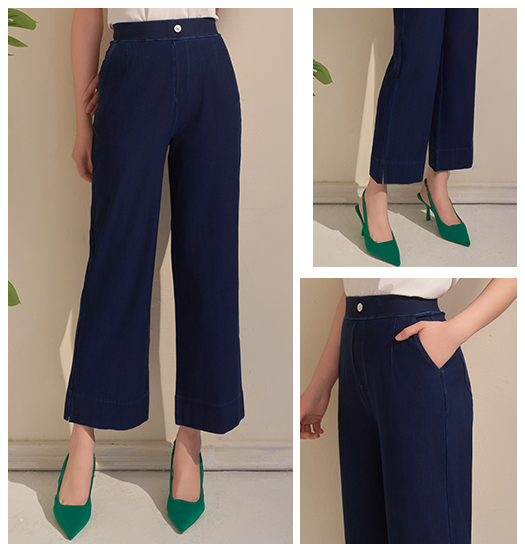 超细滑九分开叉小阔腿牛仔裤PA29284