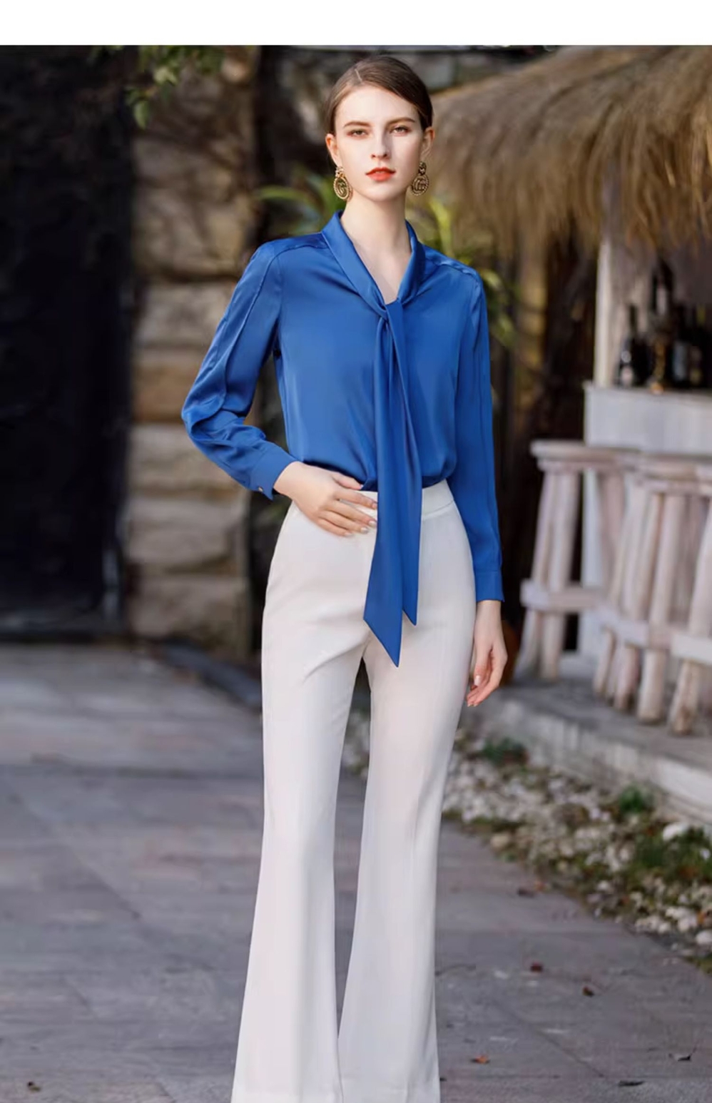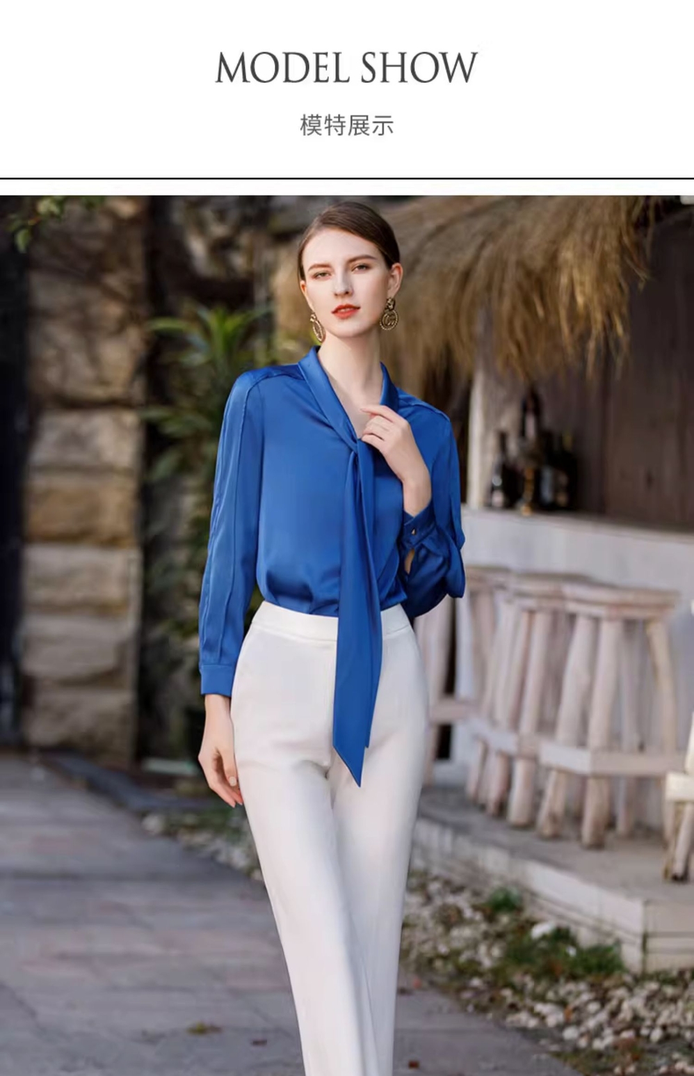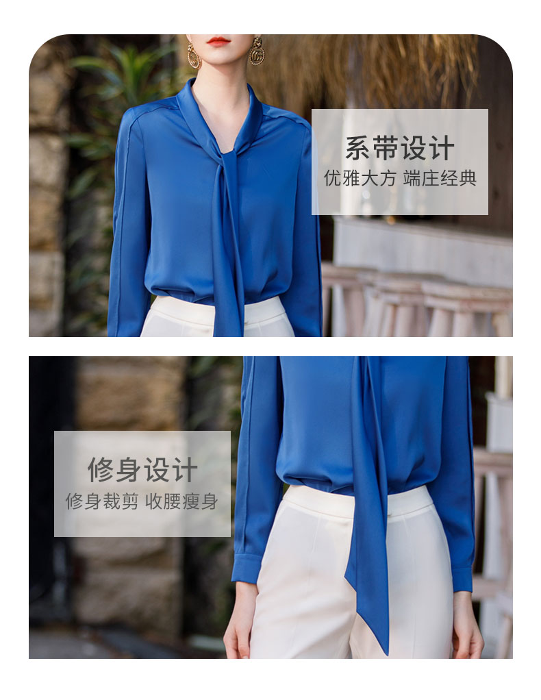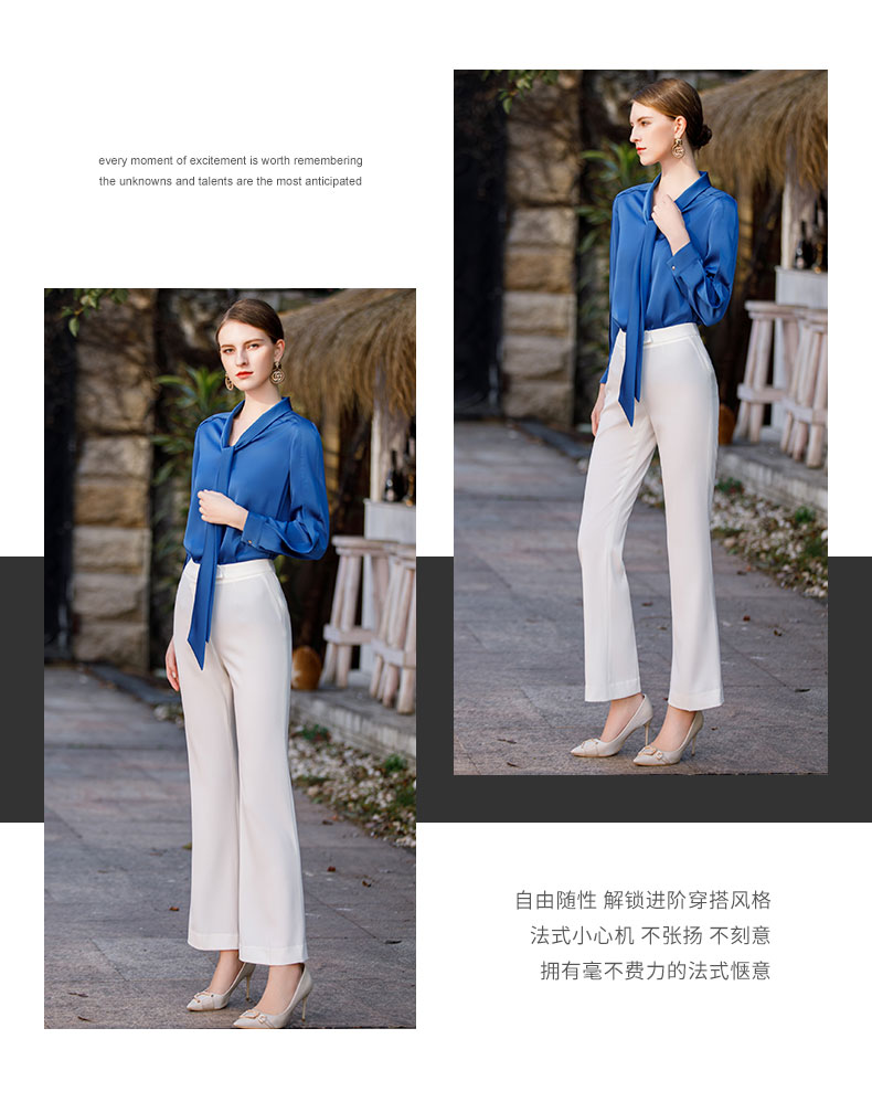 IWY/高级感蓝色缎面衬衫套裤女时尚设计感绑带衬衣职业装工作服B485
