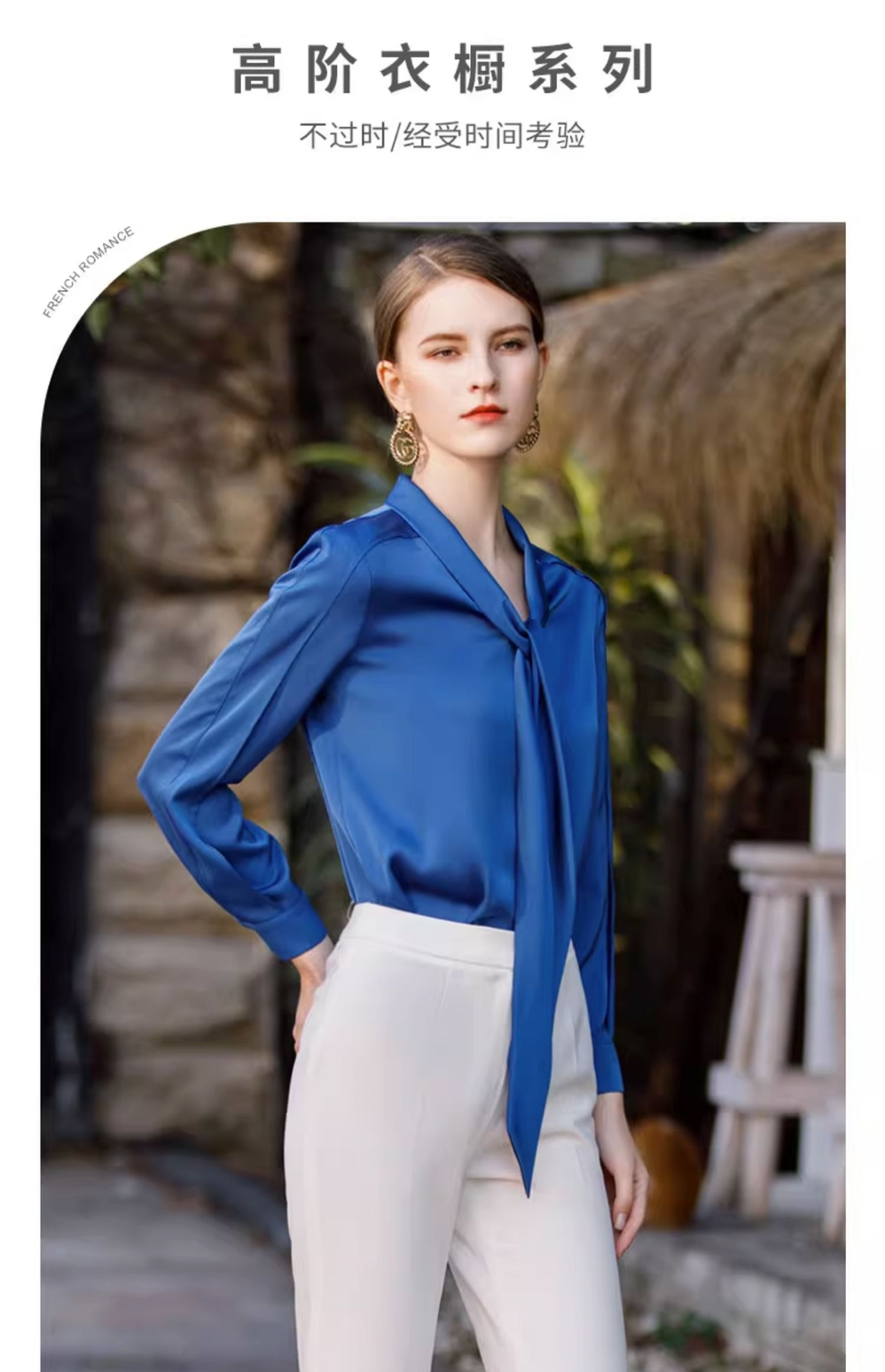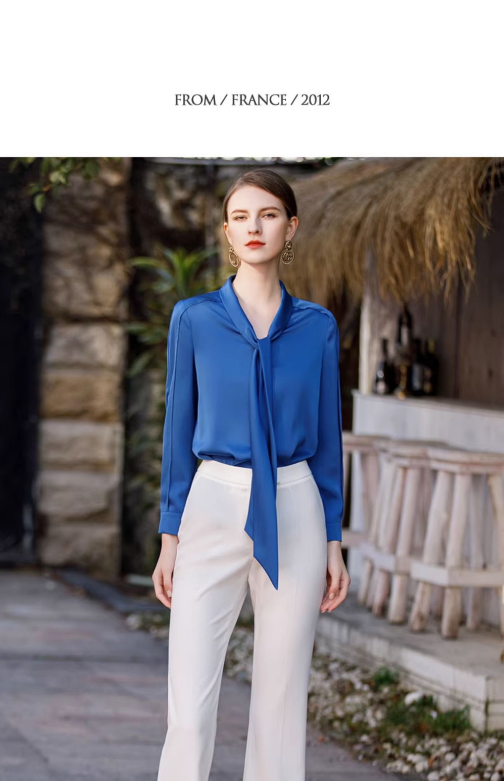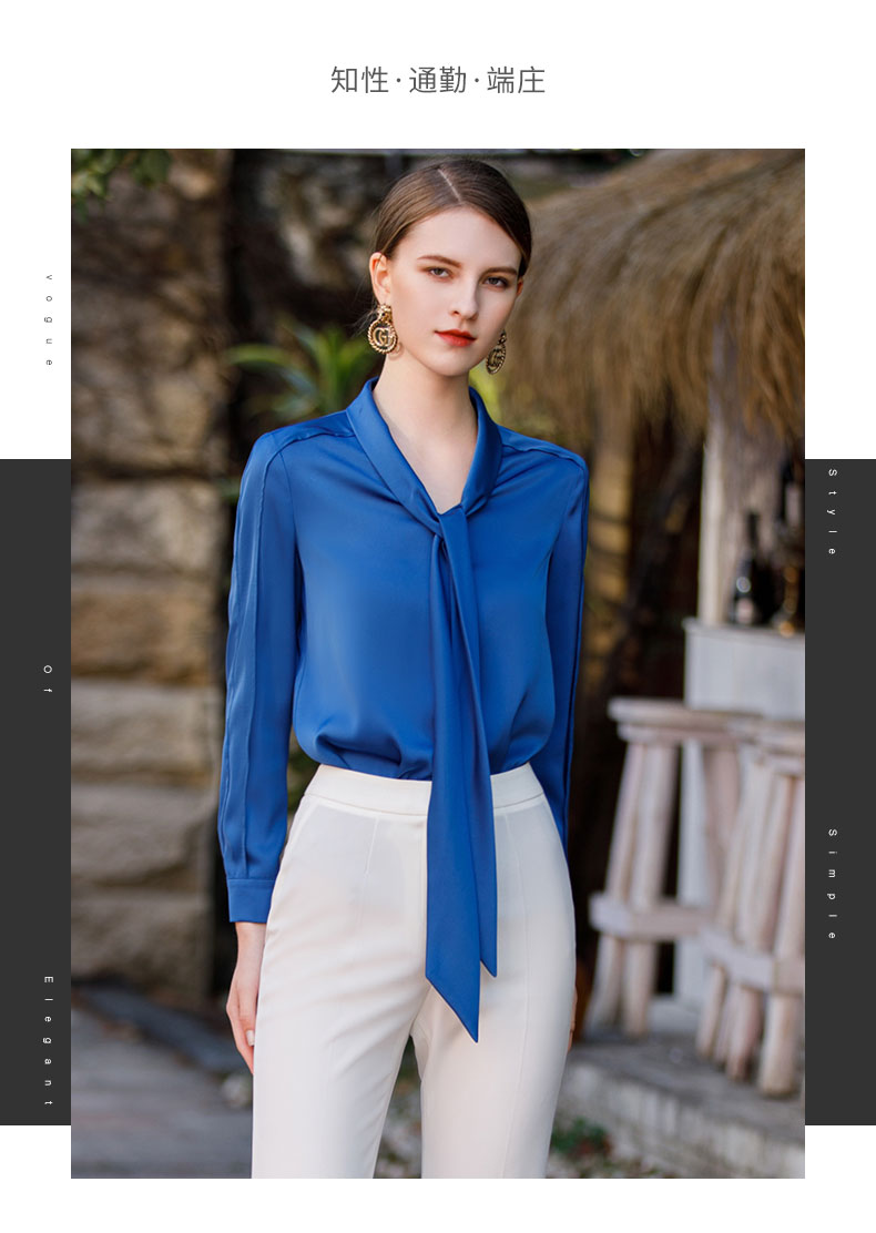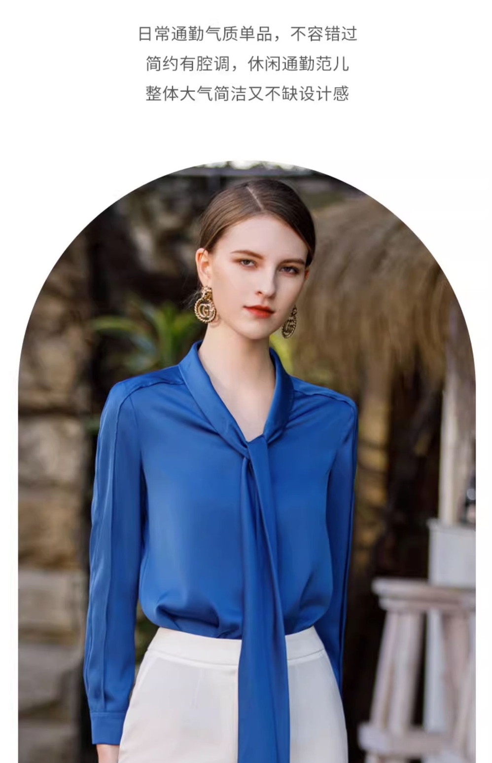 IWY/高级感蓝色缎面衬衫套裤女时尚设计感绑带衬衣职业装工作服B485